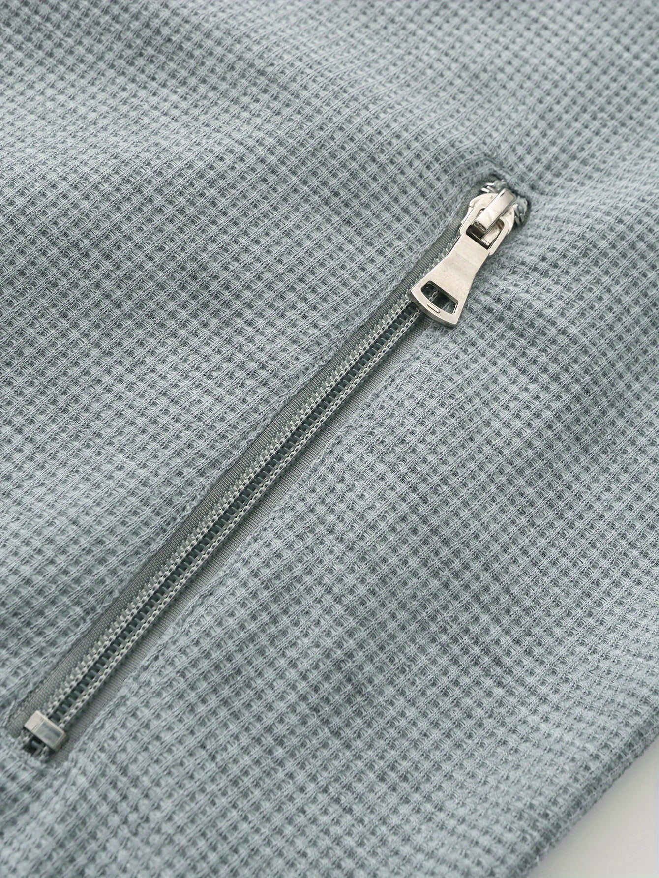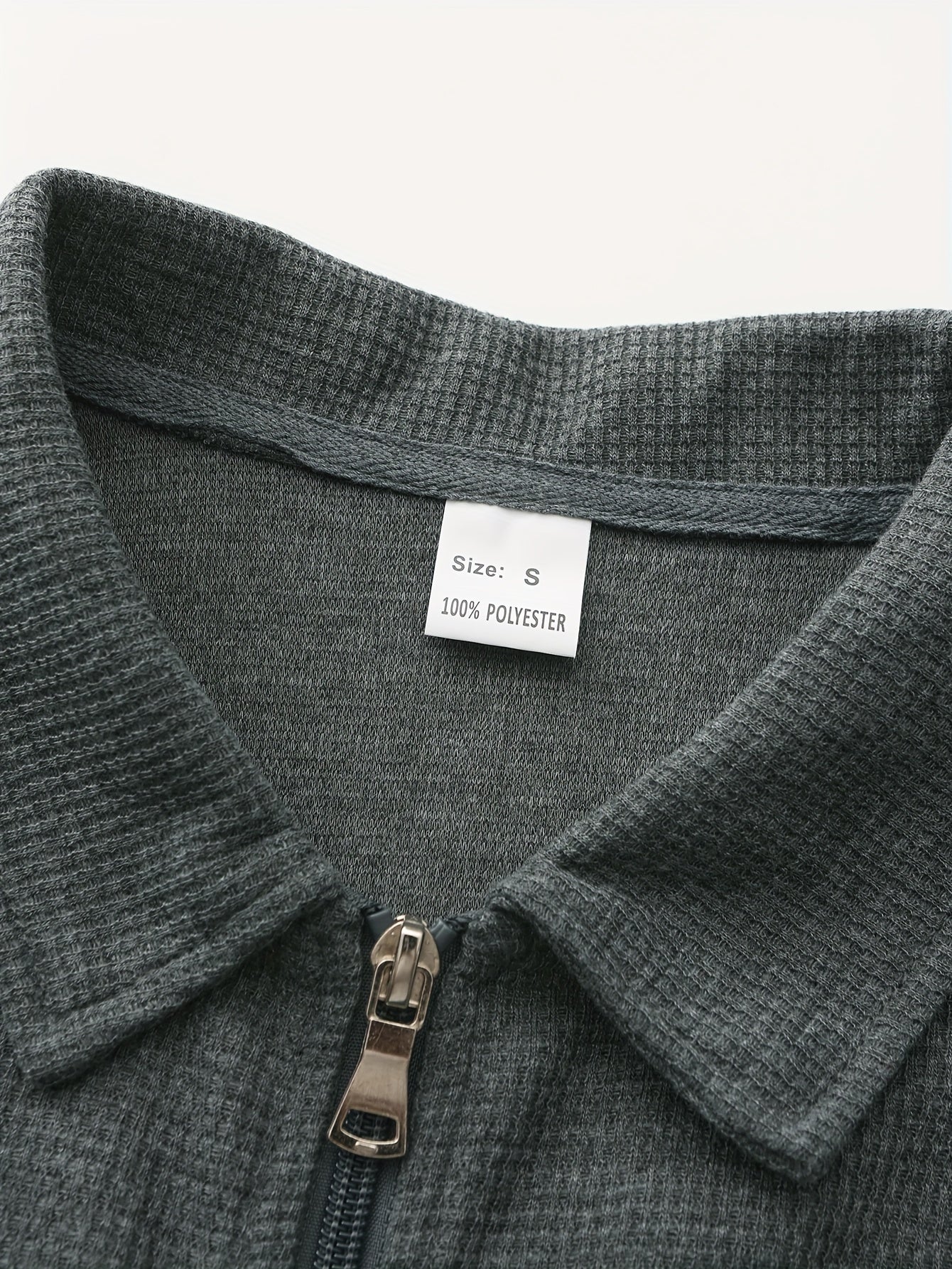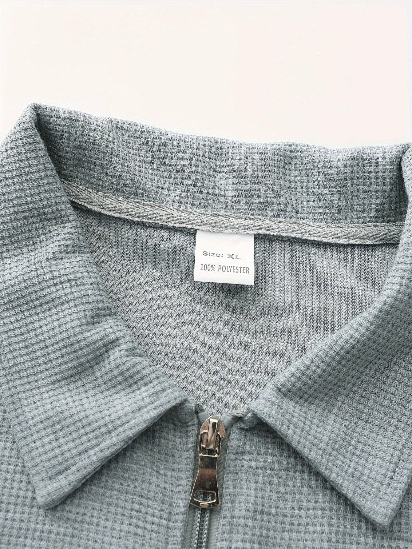 1pc Men'S Casual Polyester Zip-Up Jacket with Lapel Collar, Solid Color, Slight Stretch, Woven Fabric, Regular Fit, No Lining - Spring/Fall Outerwear