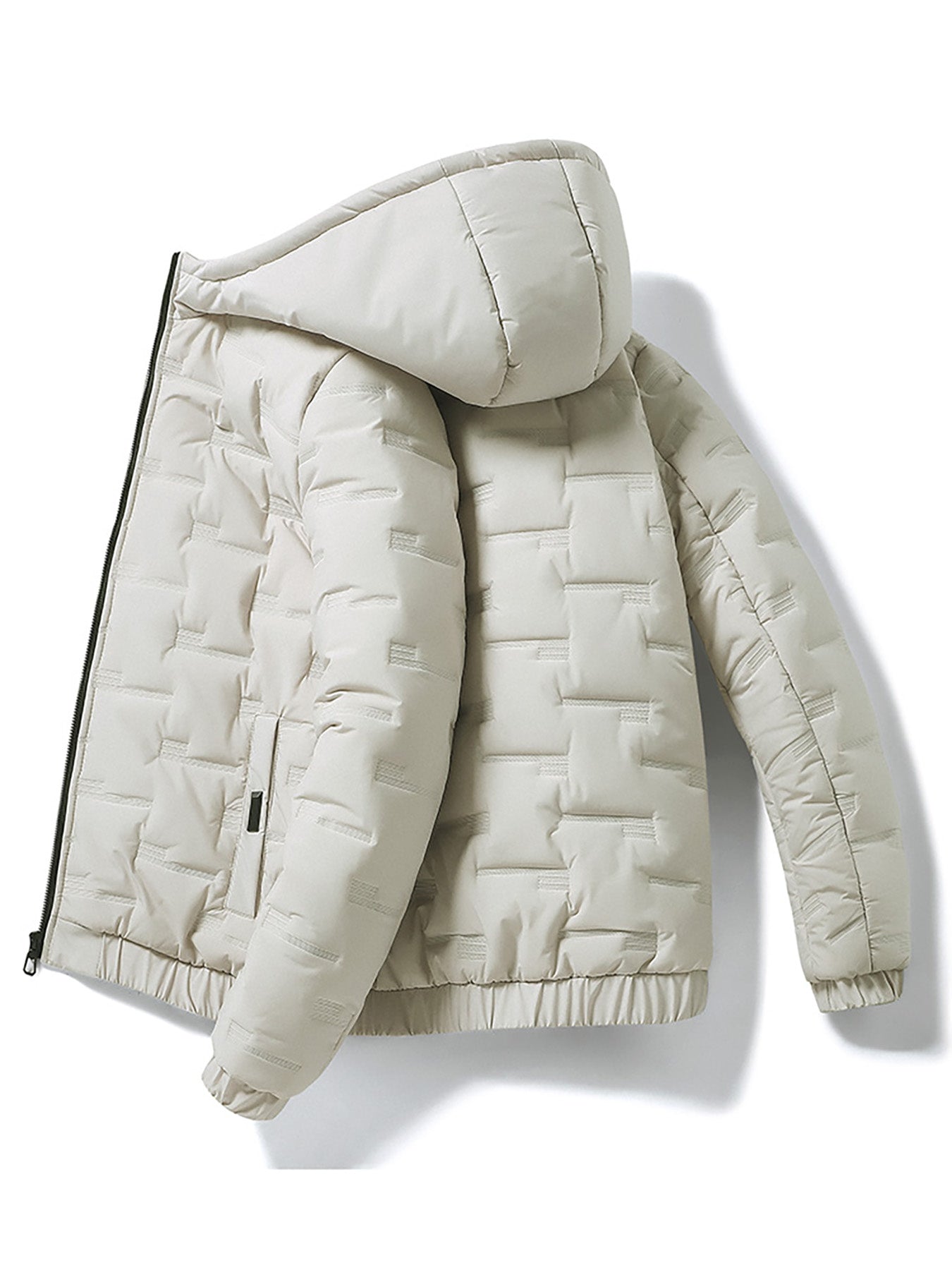 1pc Men's Heavy-Duty Winter Jacket with Hood - Stand Collar & Zippered Pockets, Grey/Black & White, Machine Washable Cold Weather Coat for Skiing, Snowboarding, Outdoor Activities (-Filled)