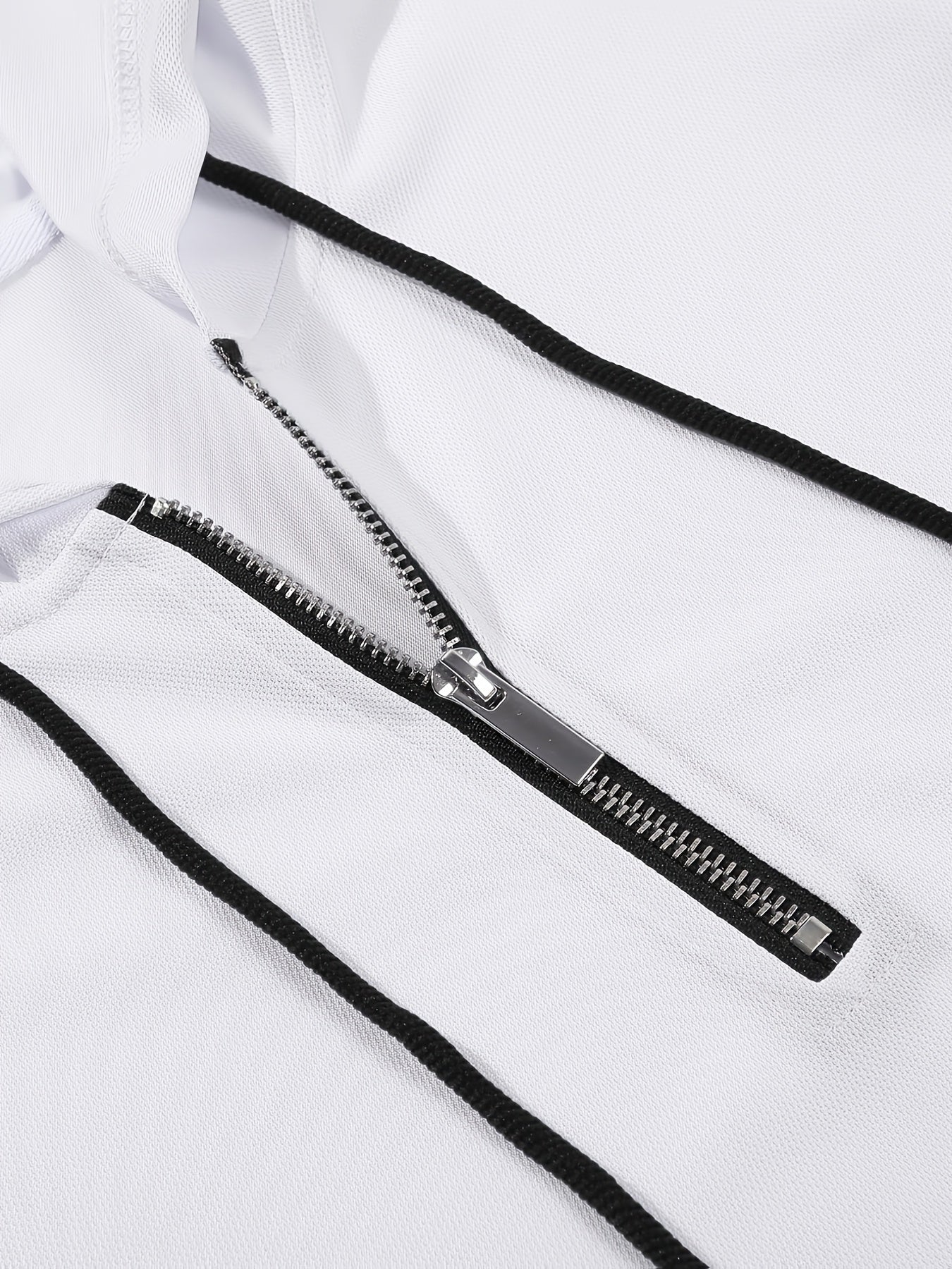 1pc Men's Light Blue Casual Hooded Short Sleeve T-Shirt with 1/4 Zipper, Breathable Stretch Fabric for Gym, Outdoor Summer Wear, Gym Apparel, Stylish Contrast Detailing, Comfortable Fit