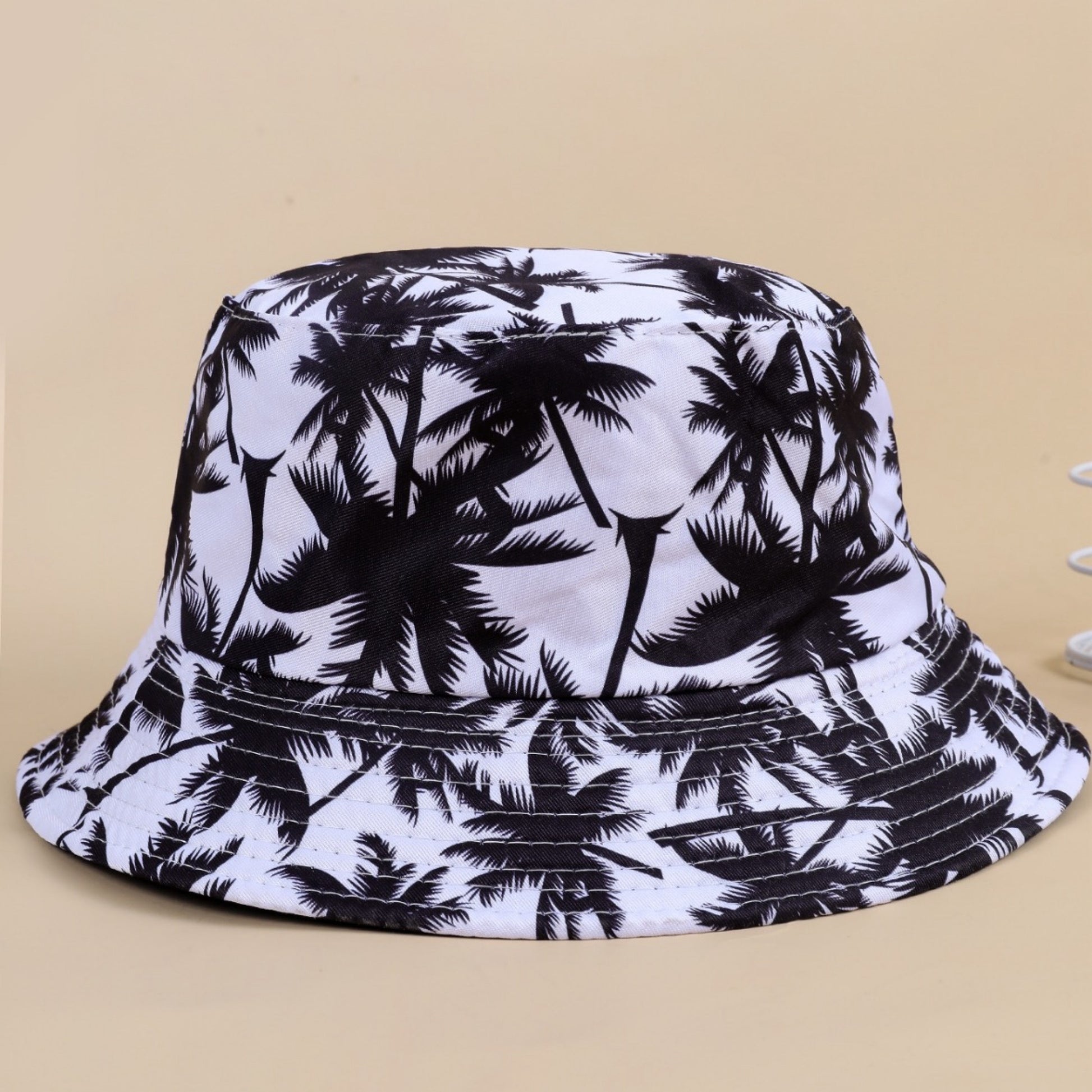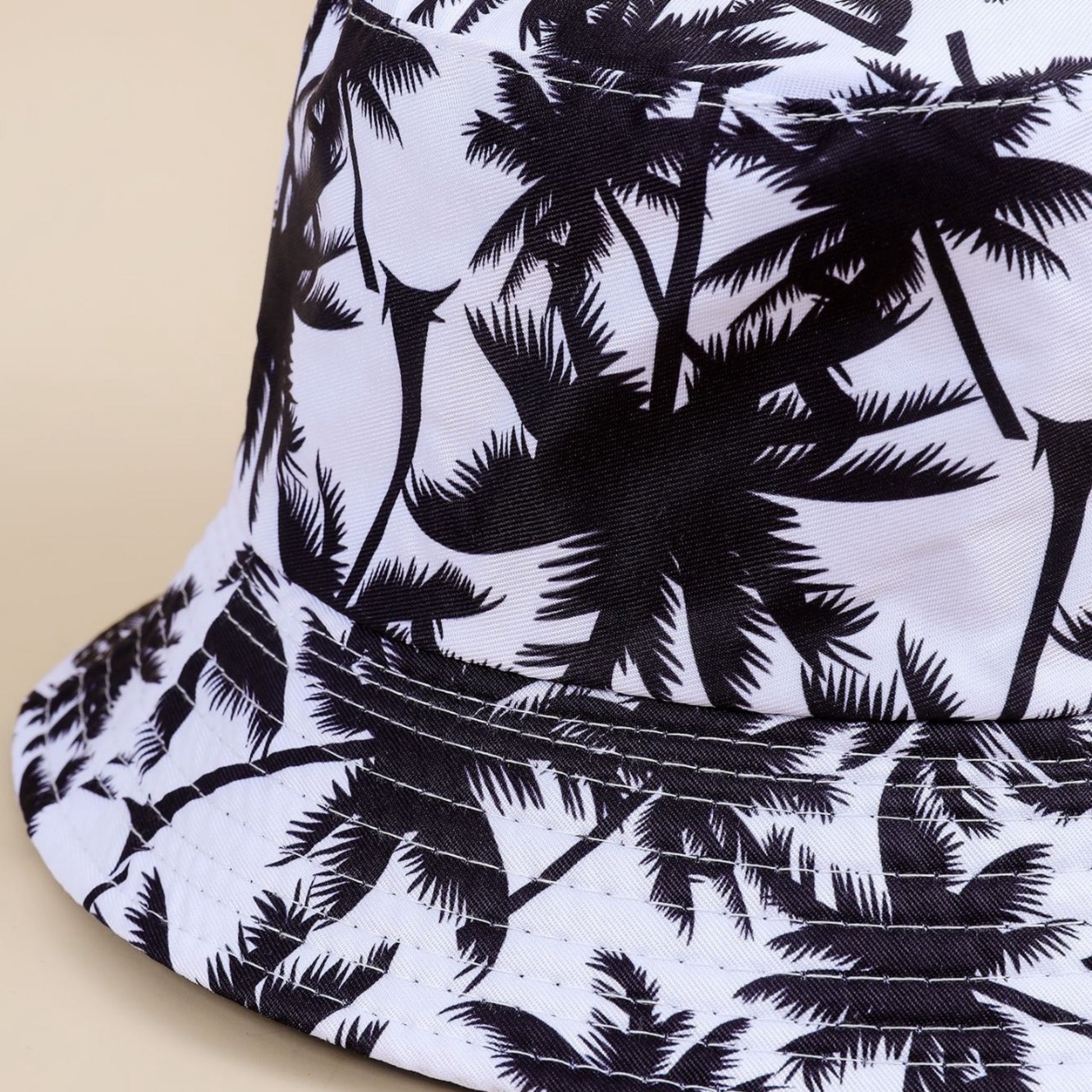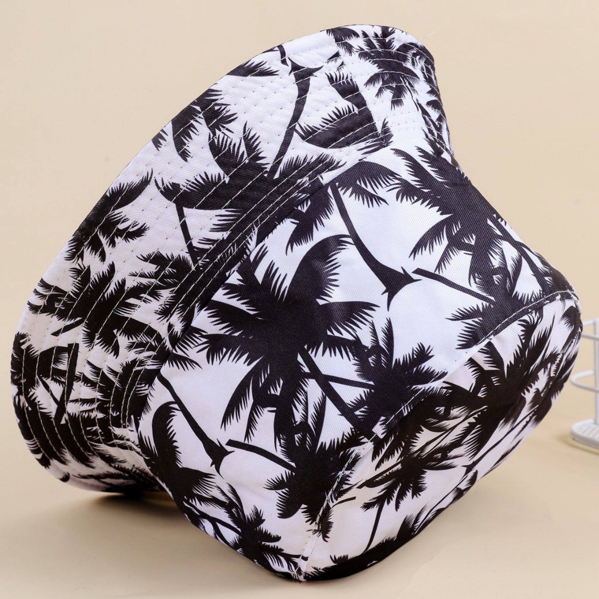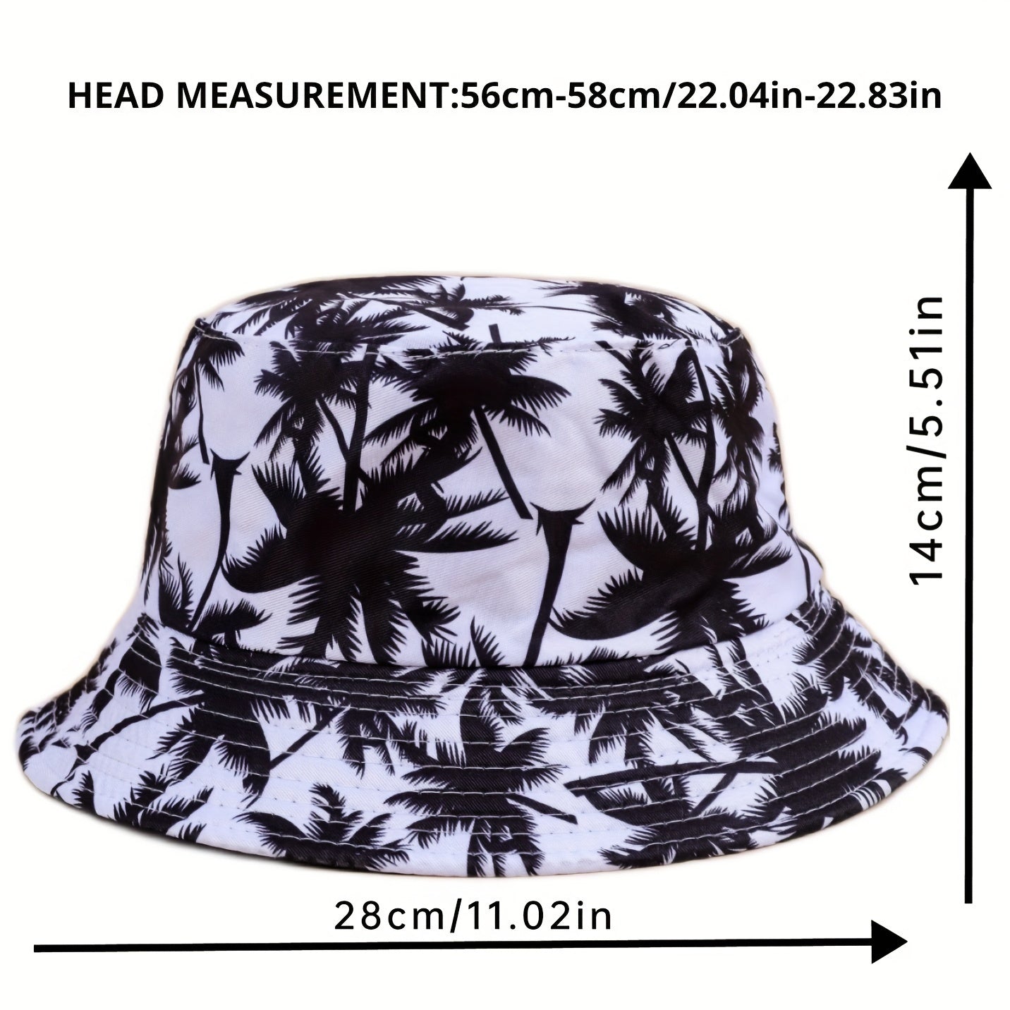 1pc Men's Reversible Bucket Hat with Black & White Palm Tree Print - Vacation Style Sun Protection for Beach Parties, Outdoor Activities & Daily Leisure, Beach Hat, Casual Headwear, Summer Accessory