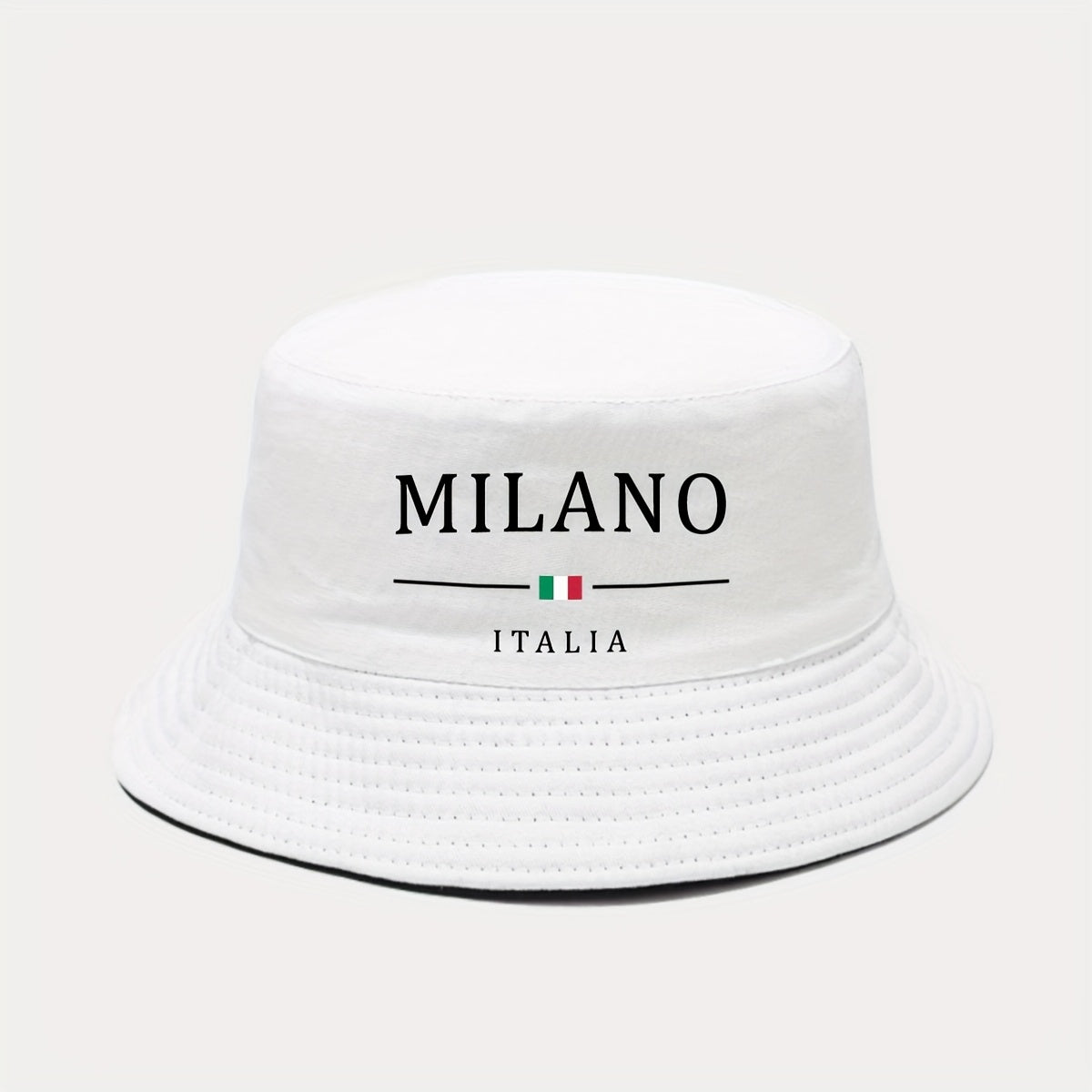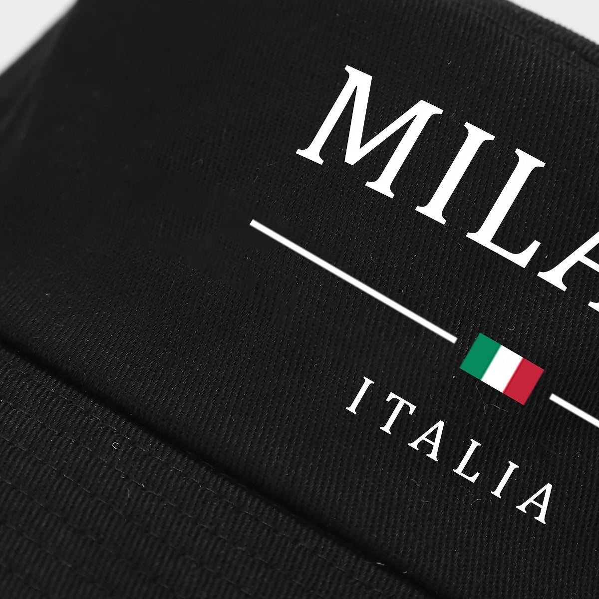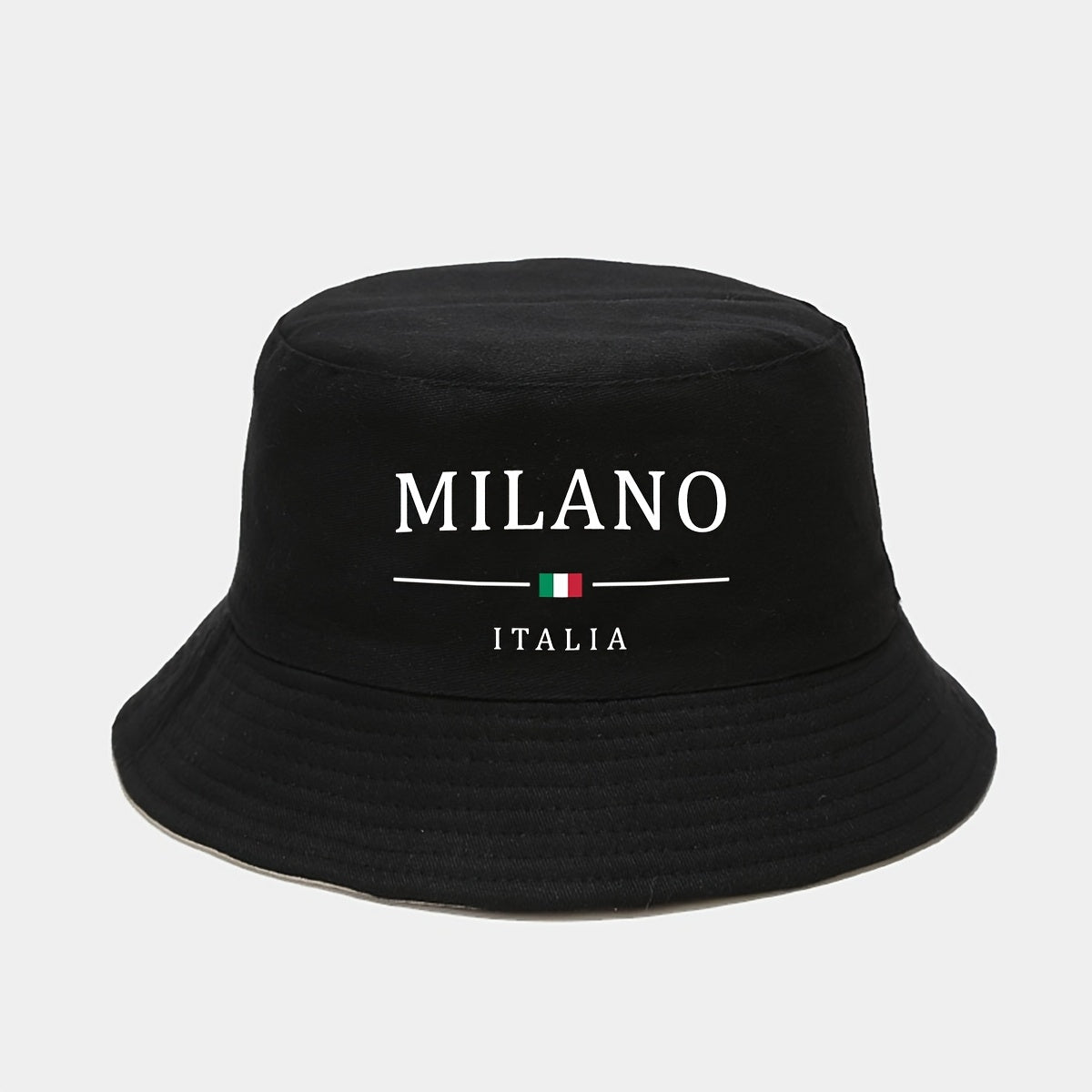 1pc MILANO ITALY Printed Bucket Hat - Lightweight Breathable Sun Hat with Italian Flag Design, Foldable Fisherman Cap for Men & Women, Outdoor Sports Travel, Spring Summer (Black/White), Vacation Headwear