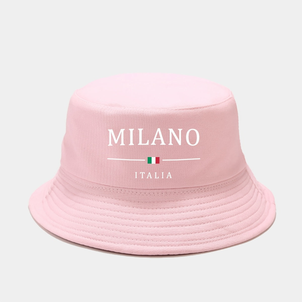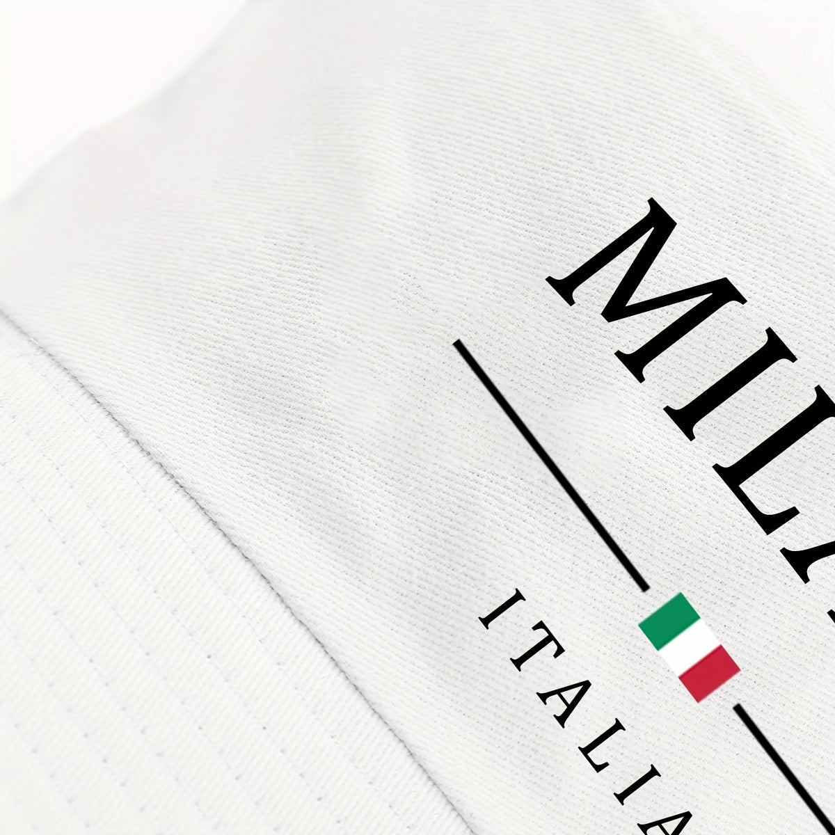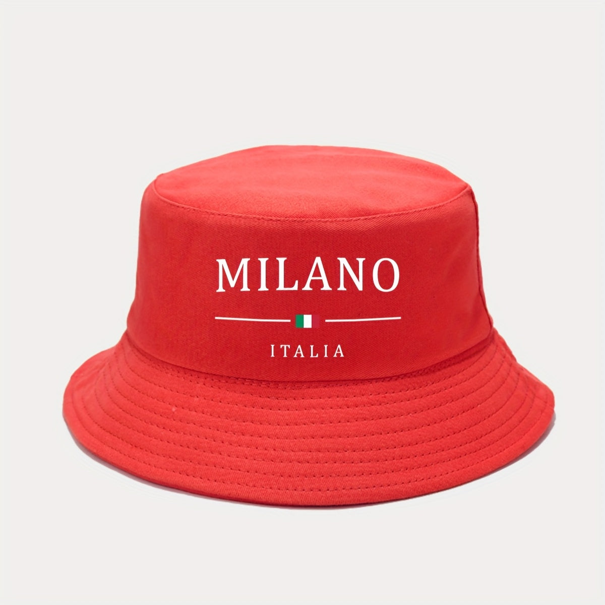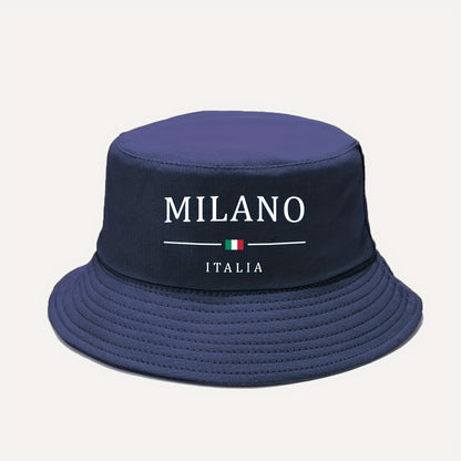 1pc MILANO ITALY Printed Bucket Hat - Lightweight Breathable Sun Hat with Italian Flag Design, Foldable Fisherman Cap for Men & Women, Outdoor Sports Travel, Spring Summer (Black/White), Vacation Headwear