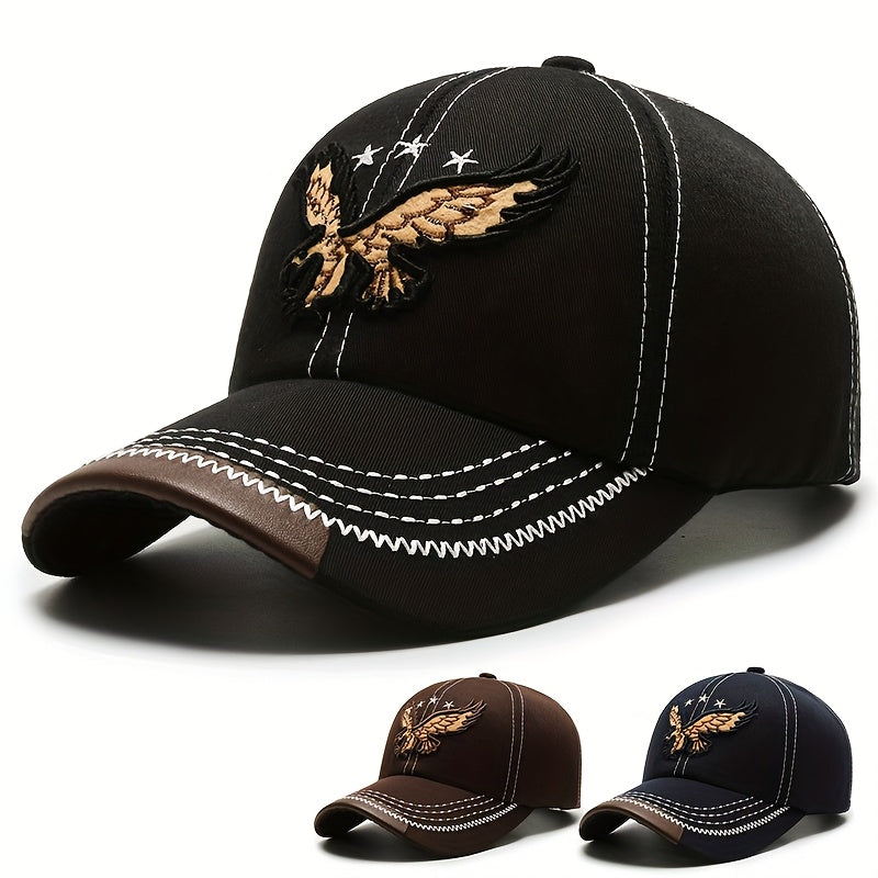 1pc Navy Blue Eagle Embroidered Baseball Cap for Men & Women - Stylish Unisex All-Season Hat with White Stitching, High-Quality Casual Sportswear Accessory, Outdoor Headwear, Trendy Headwear, Sturdy Construction, Sports Fans