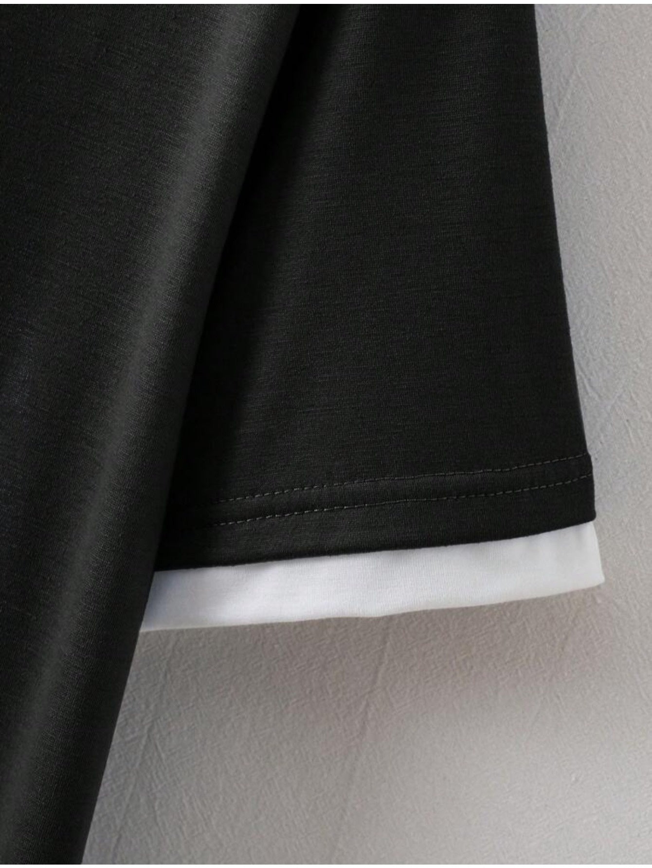 1pc of Men's black and white color-block round neck casual short-sleeve T-shirt
