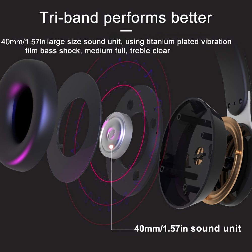 1pc Retro Style Wireless Headphones with HiFi Sound, Foldable & Portable Design, Built-in Radio, Condenser Mic, Button Control, Compatible with Cellphones, Ideal for Gaming, Exercise, Home Use - 5.3 Chip, Type-C Charging, Non