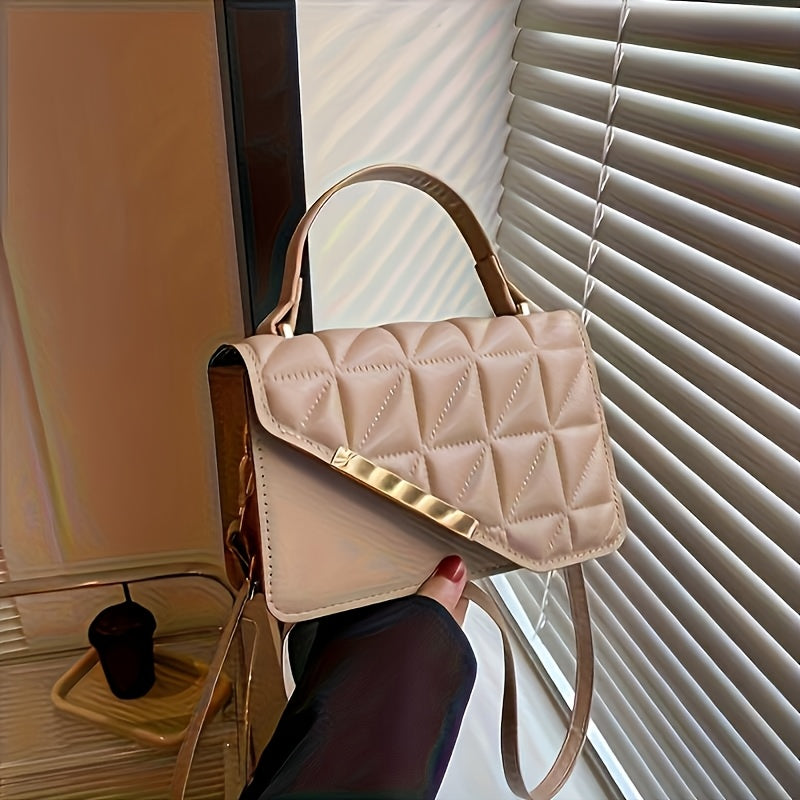1pc Stylish Black Quilted Crossbody Bag with Magnetic Clasp & Adjustable Strap – Elegant -Pattern Design for Everyday Use, Work, and Outings, Small Crossbody Bag