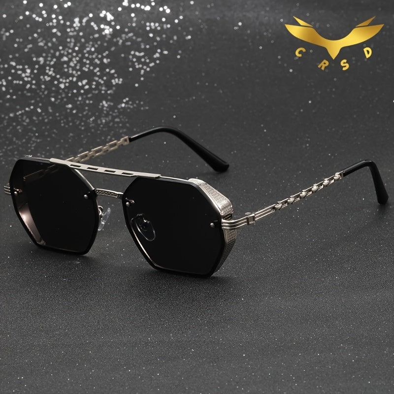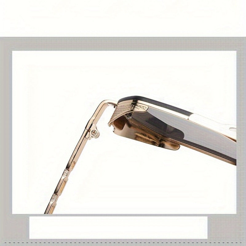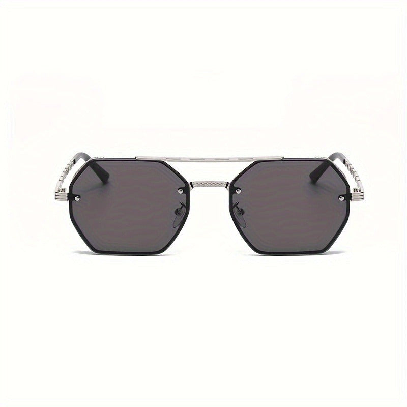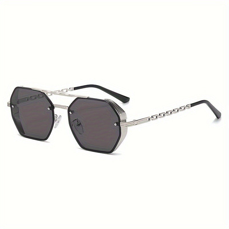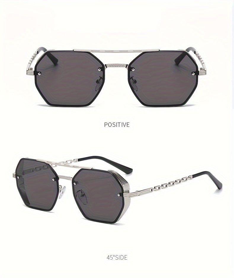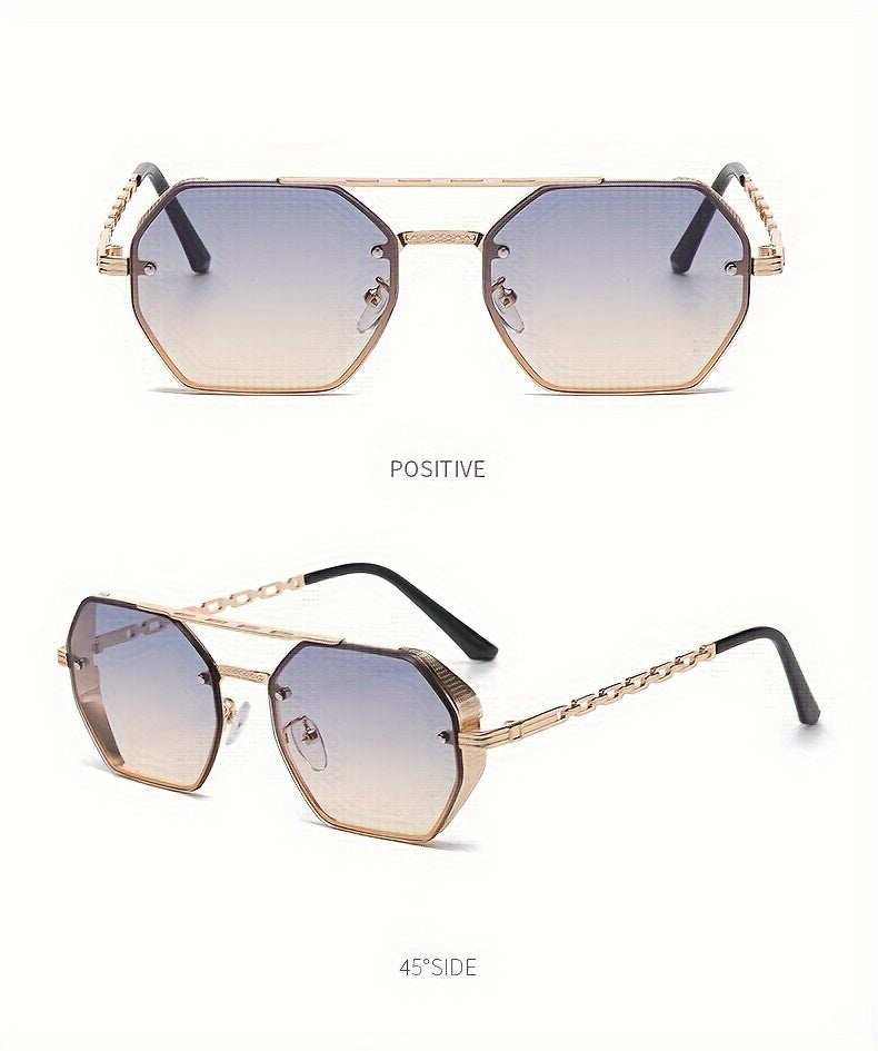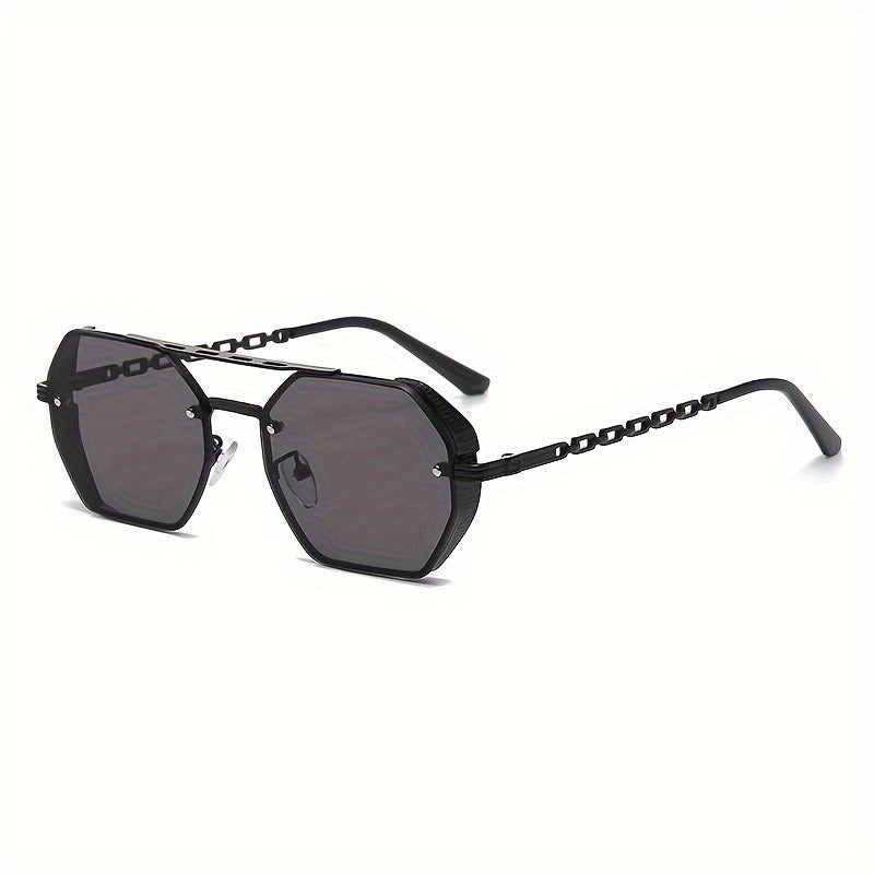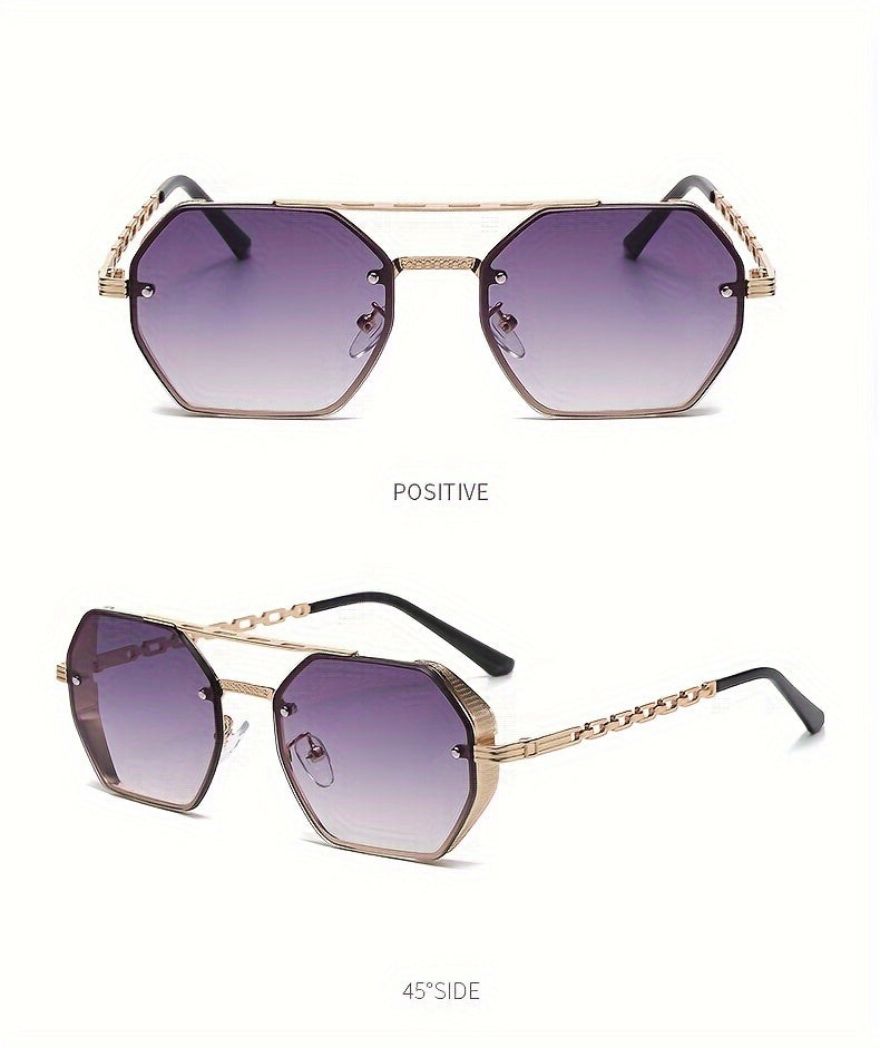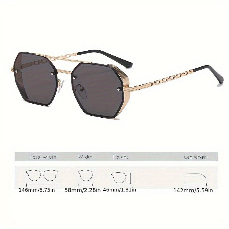 1pc Stylish Polygonal Golden Frame Fashion Glasses with Chain Link Design - Black Metal Fashion Glasses for Fashion-Forward Look