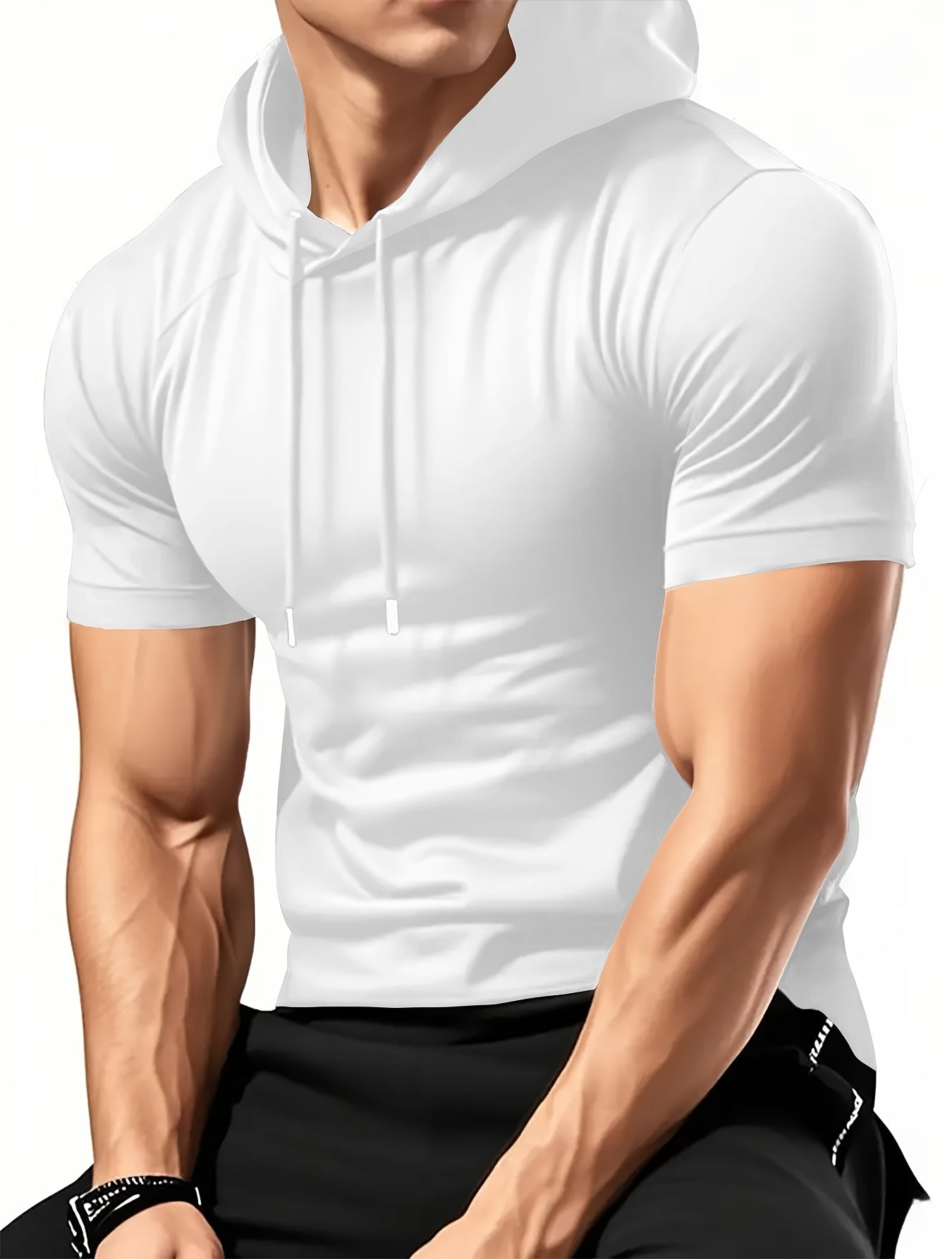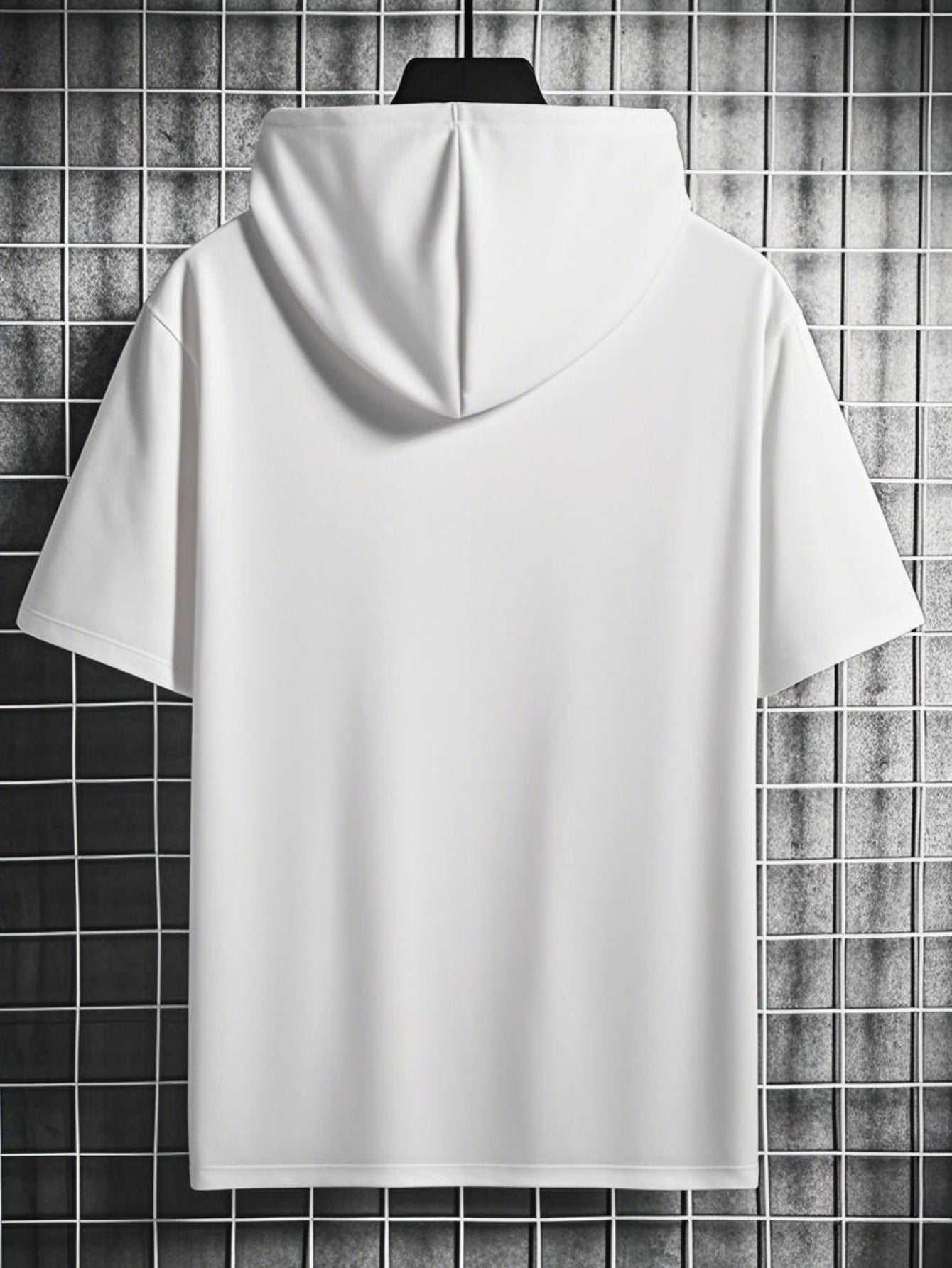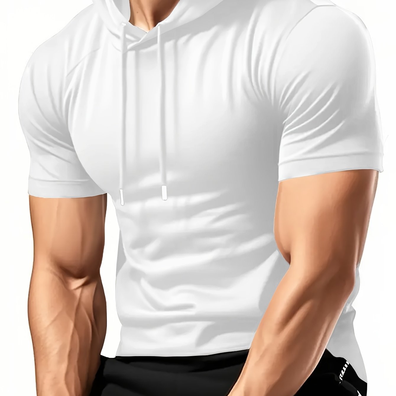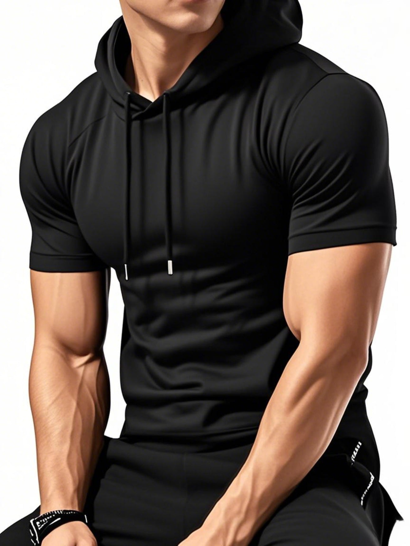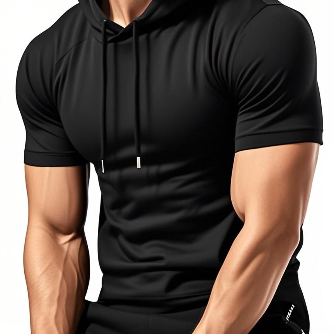 1pc Twisted Cool Men's Hooded Short Sleeve T-Shirt - Solid Black Casual Streetwear, Regular Fit, Hand Wash Only, Summer Essential for Everyday Comfort