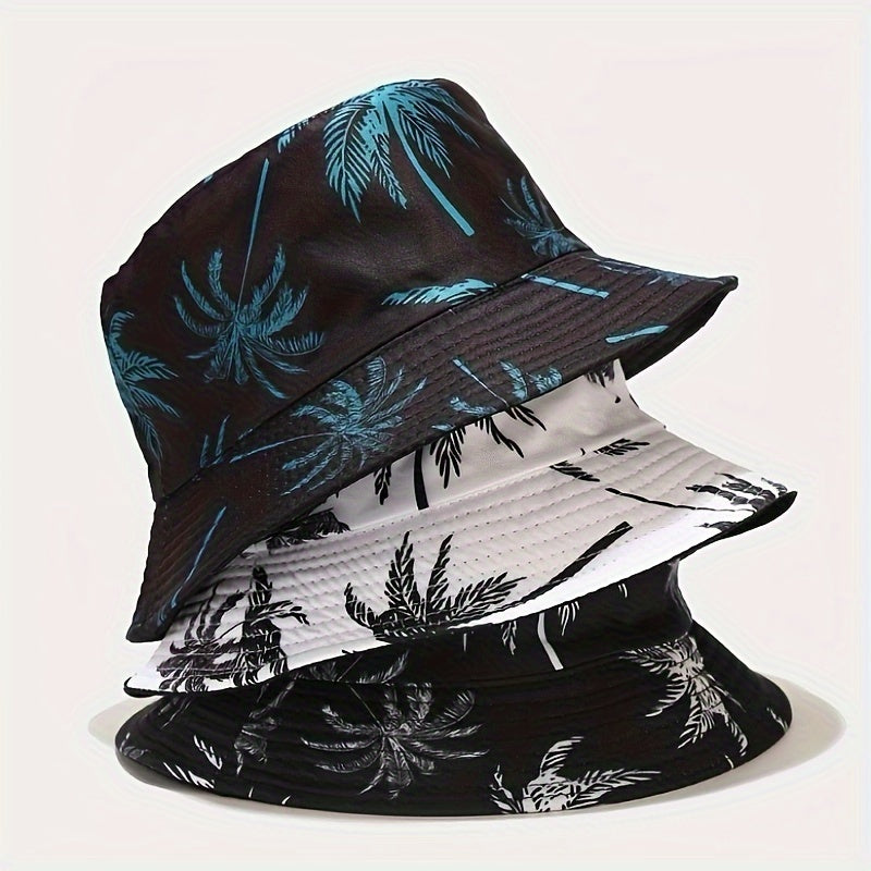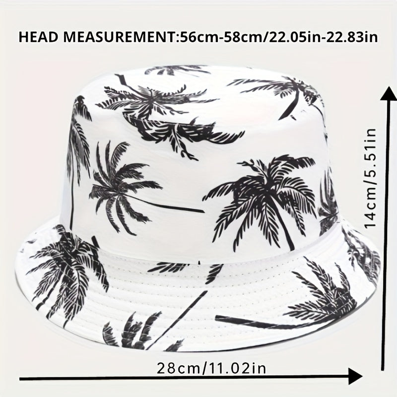 1pc Unisex Coconut Tree Print Bucket Hat - Bohemian Tropical Vacation Style, Breathable & Durable for Outdoor Beach, Casual Wear, Men & Women, Lightweight Headgear, Summer Accessory, Boho Chic, Comfortable Fit, Boho Fashion
