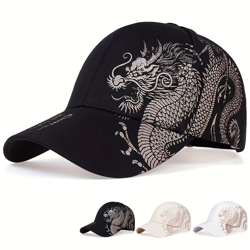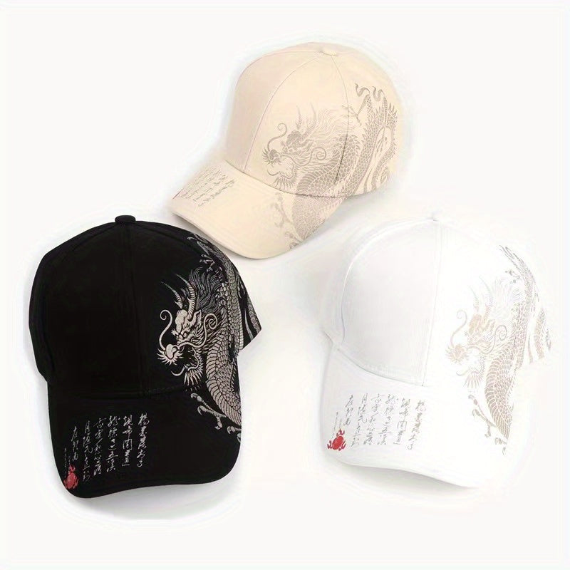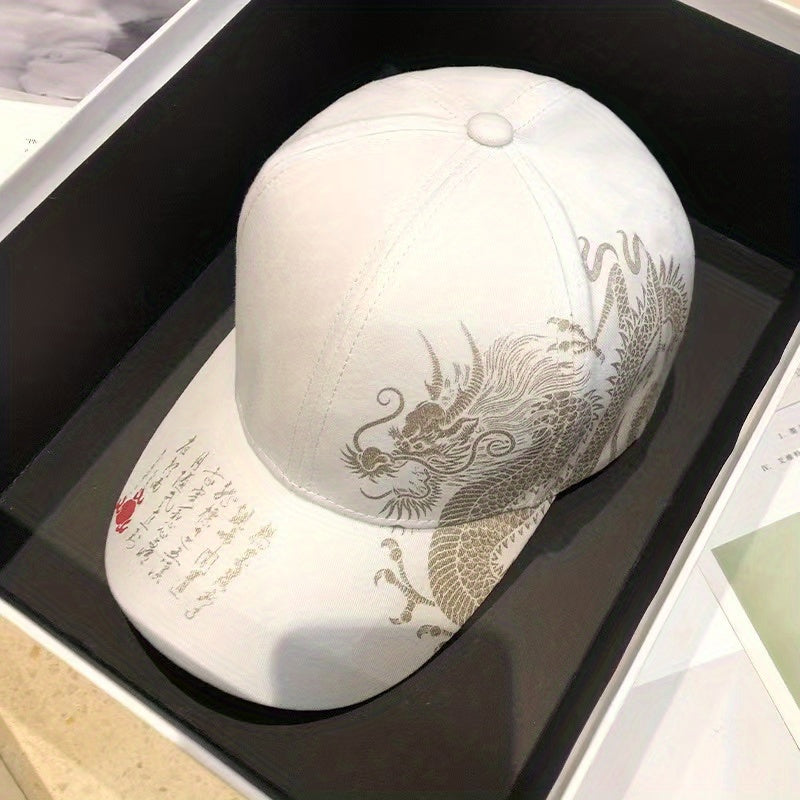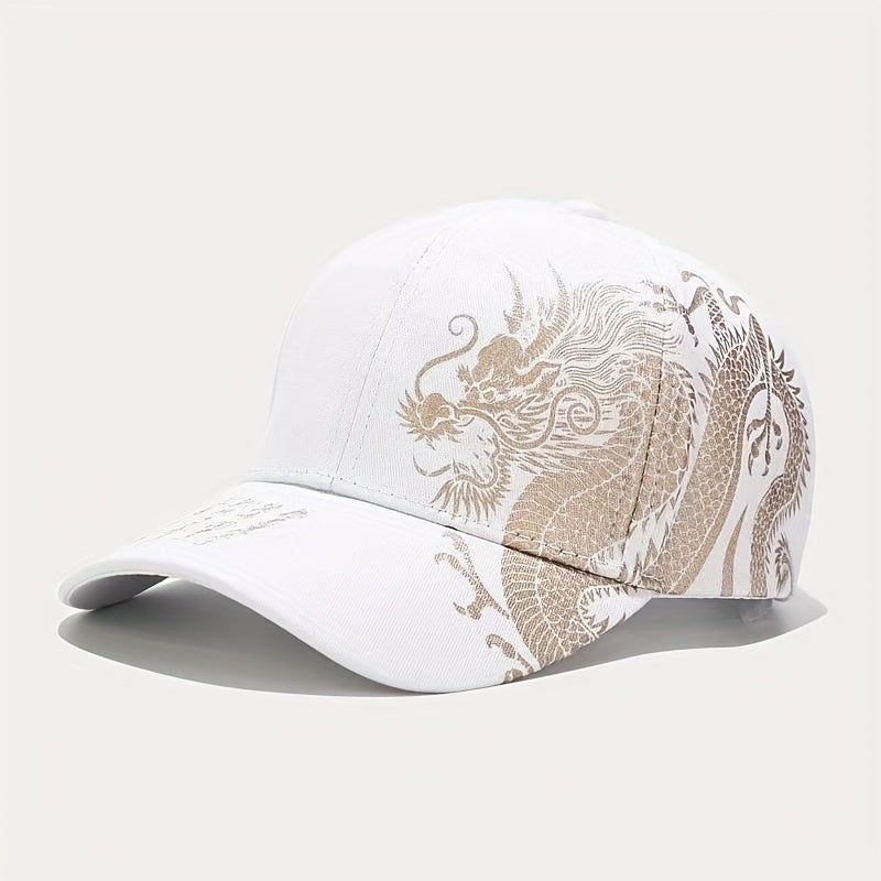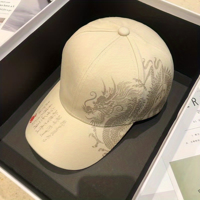 1pc Unisex Sunshade Breathable Adjustable Baseball Cap With Dragon Print For Outdoor Sport, Ideal choice for Gifts