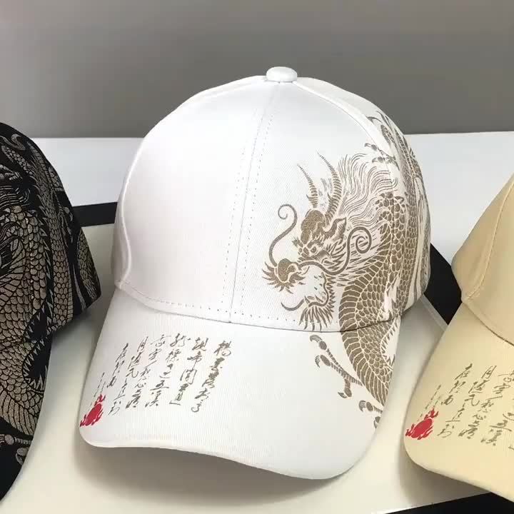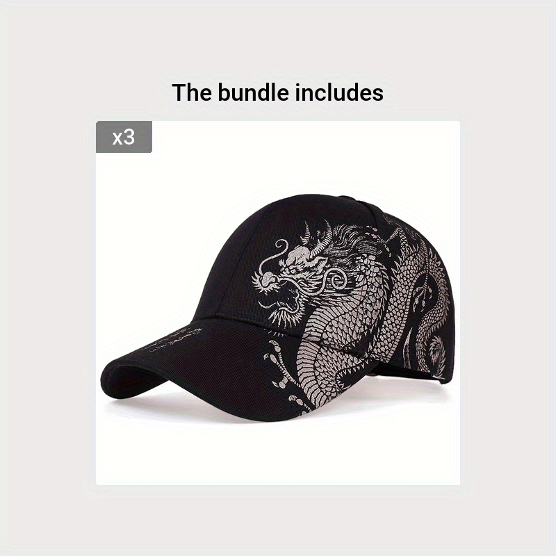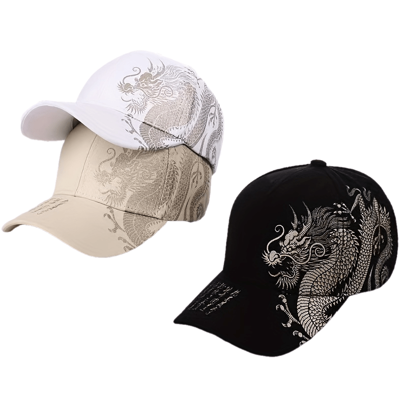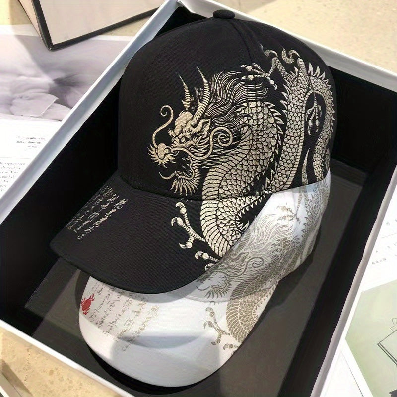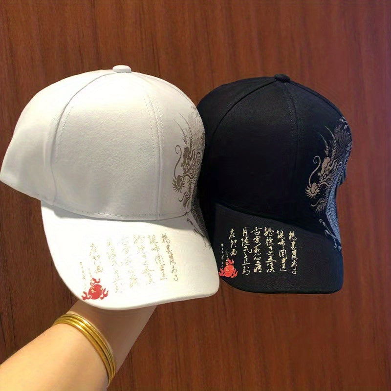1pc Unisex Sunshade Breathable Adjustable Baseball Cap With Dragon Print For Outdoor Sport, Ideal choice for Gifts