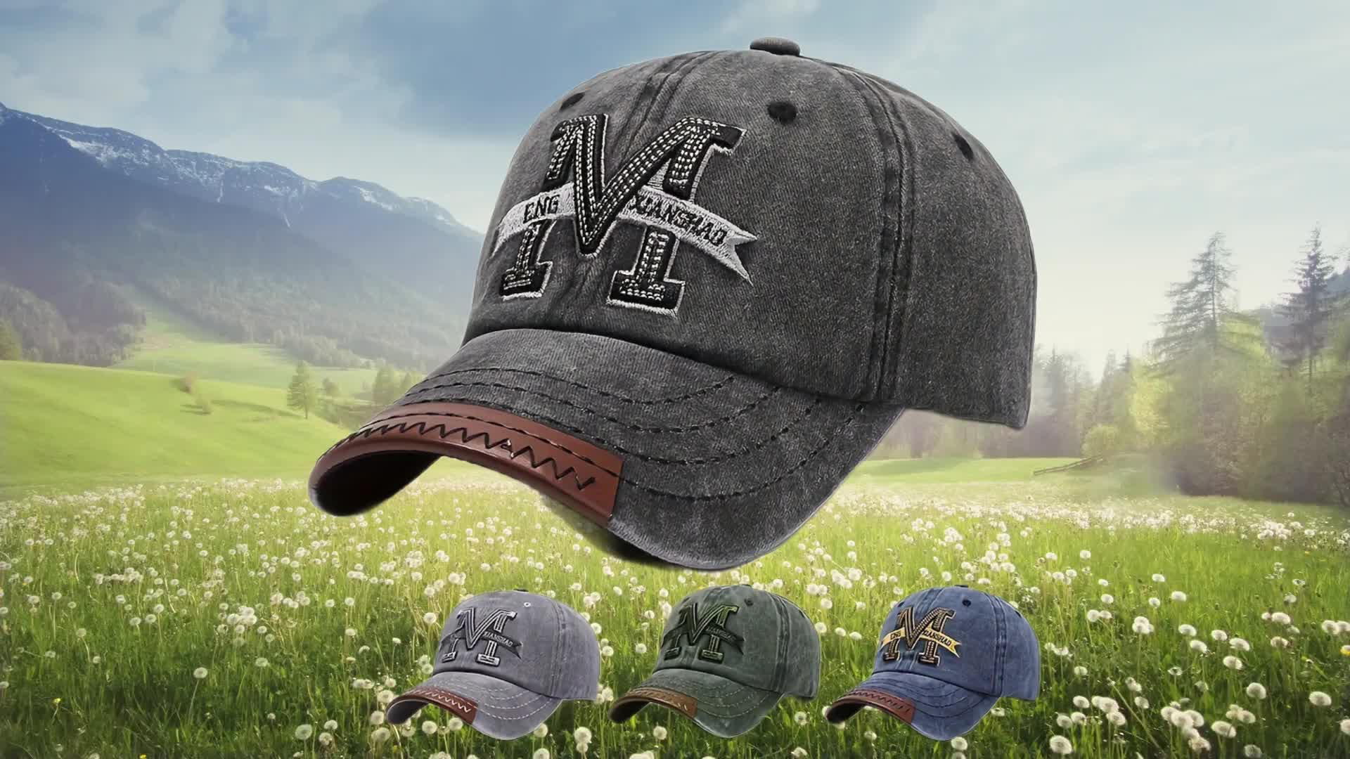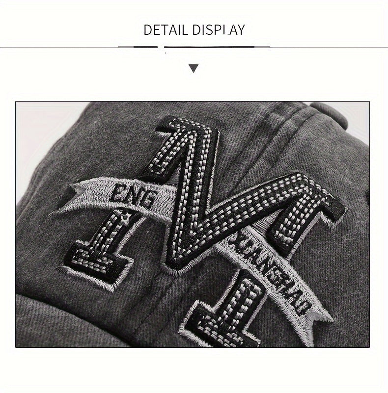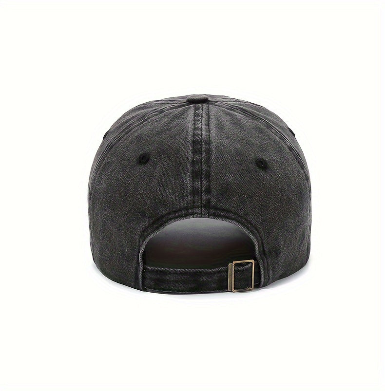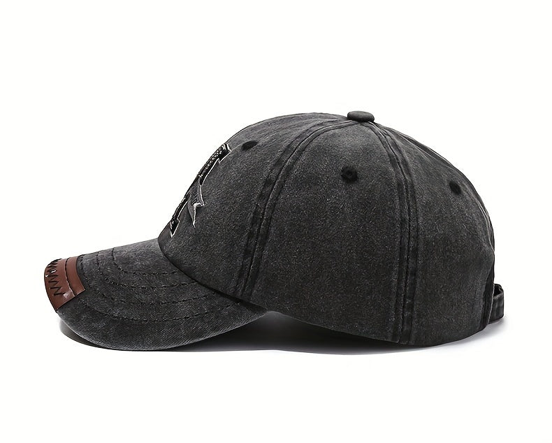 1pc Vintage Washed Cotton Baseball Cap with Embroidered Letter "M" - Adjustable Snapback, Lightweight Sun Hat for Men & Women, Black with Brown Band, Adjustable Baseball Cap