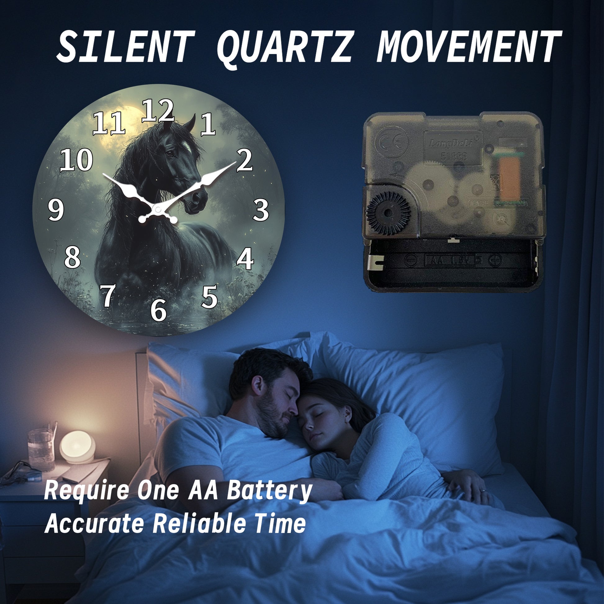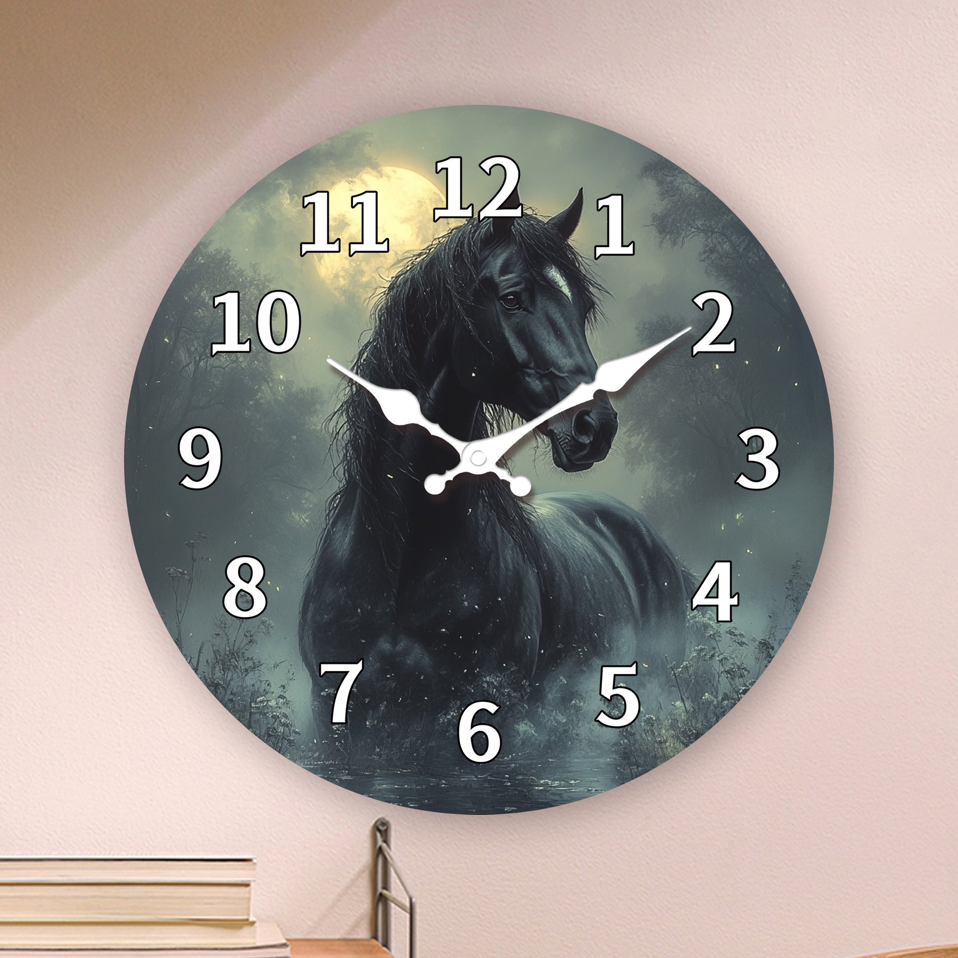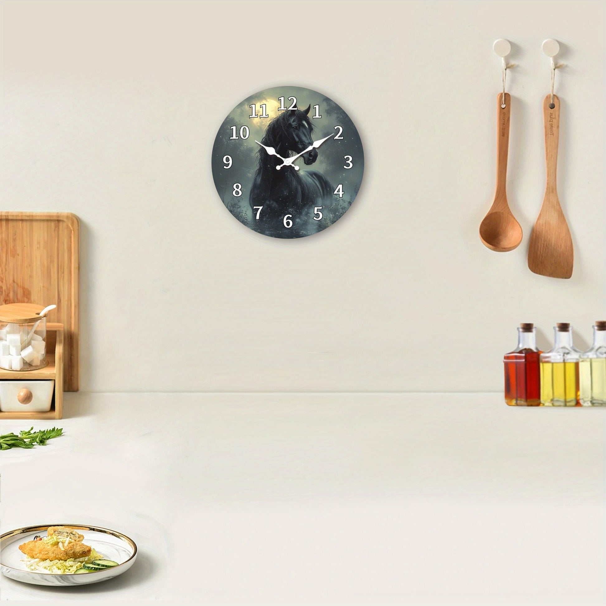 1pc, Wooden Wall Clock, Animal Theme - Majestic Horse Pattern Design, Silent Clock, Suitable for Living Room, Bedroom, Kitchen, Office Decoration, Modern Home Decor, Ideal Birthday, Holiday, New Year Gift (AA Battery Not Incl