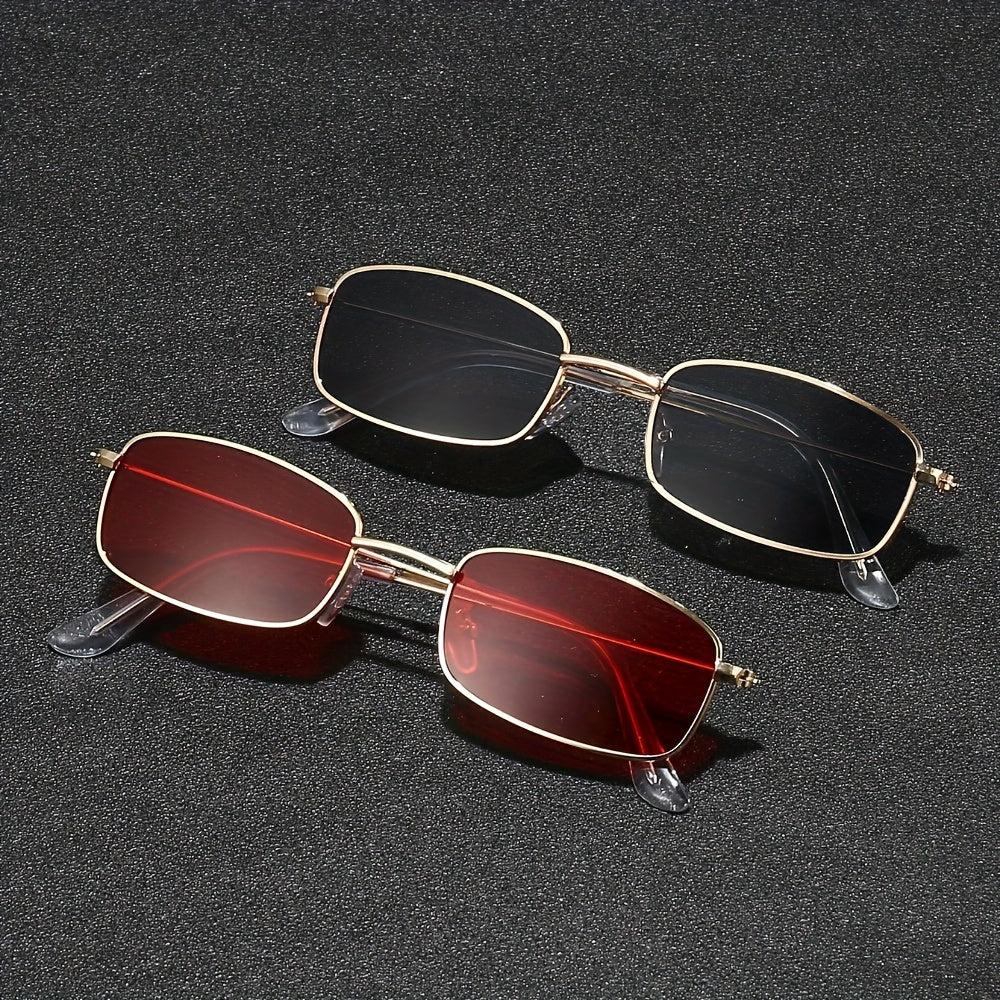 2 Pairs of Trendy Metal Frame Glasses with Vibrant Red & Black Tinted Lenses - Stylish Full-Rim Design for Fashion-Forward Individuals, Everyday Eyewear | Fashion Eyewear | Sleek Craftsmanship