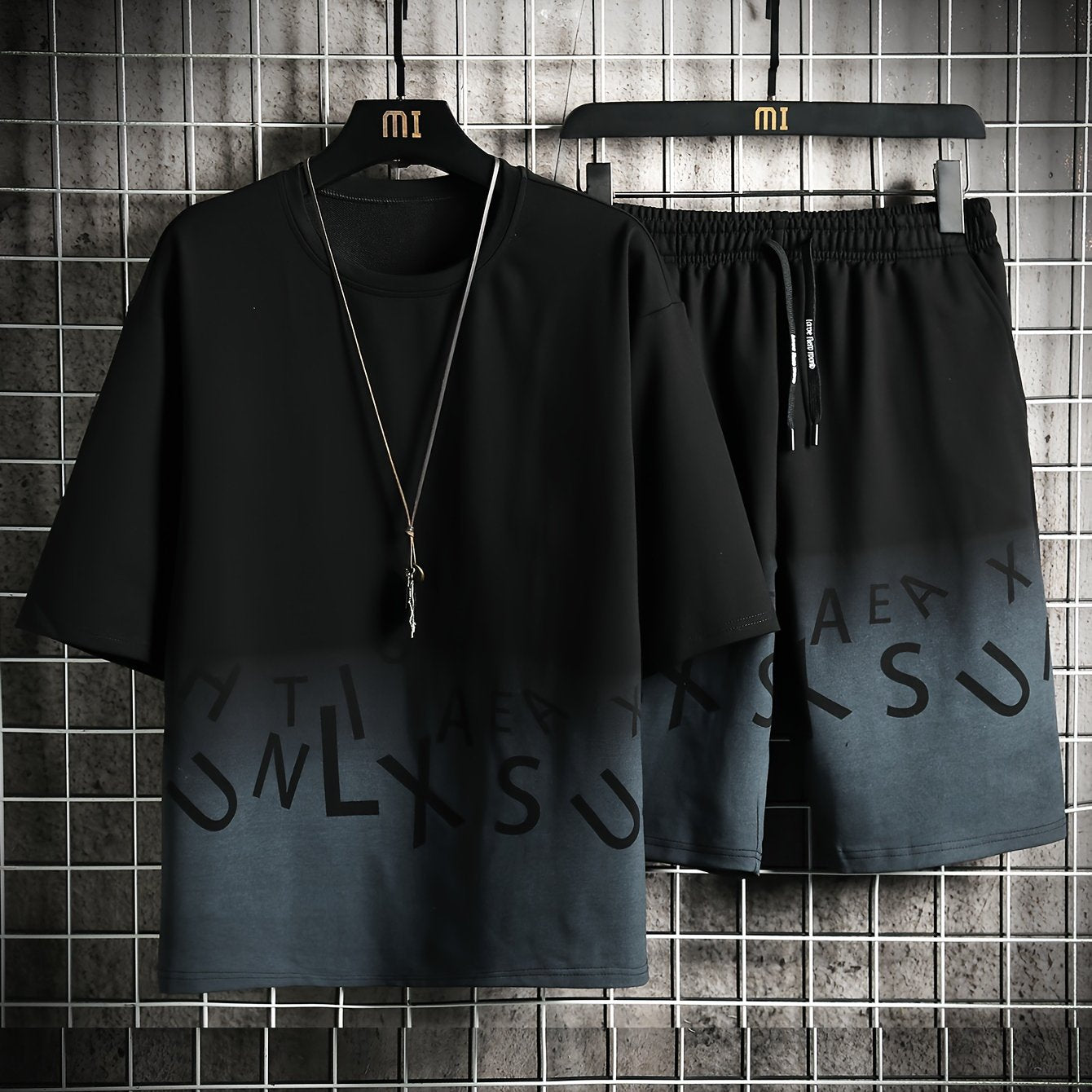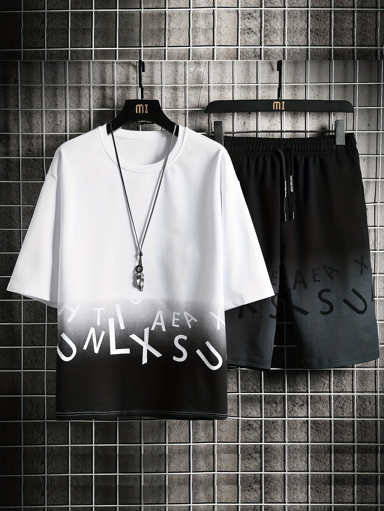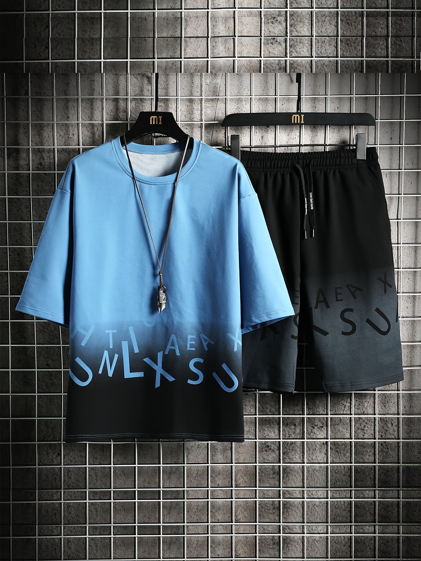 2-piece Men's Stylish Gradient Summer Outfit Set, Men's Short Sleeve Cotton Blend T-shirt & Drawstring Shorts Set
