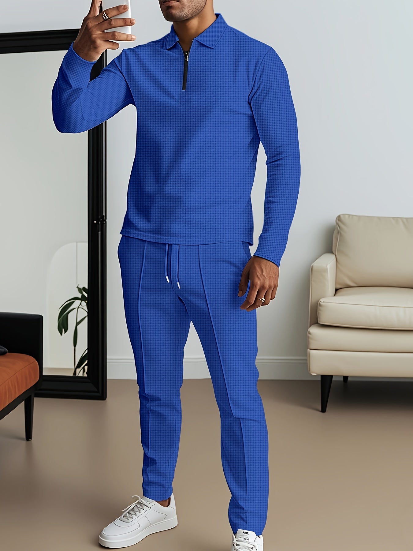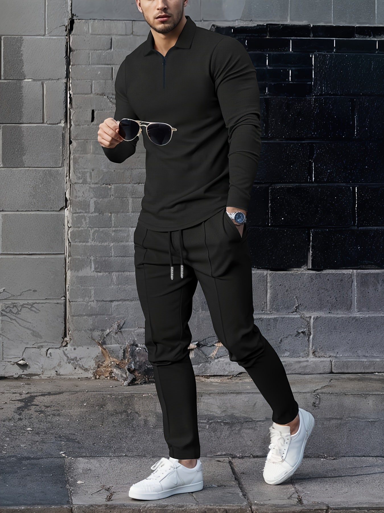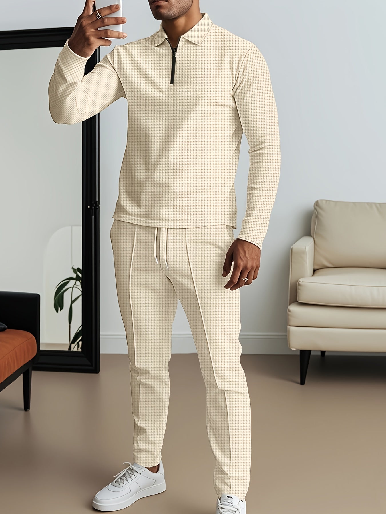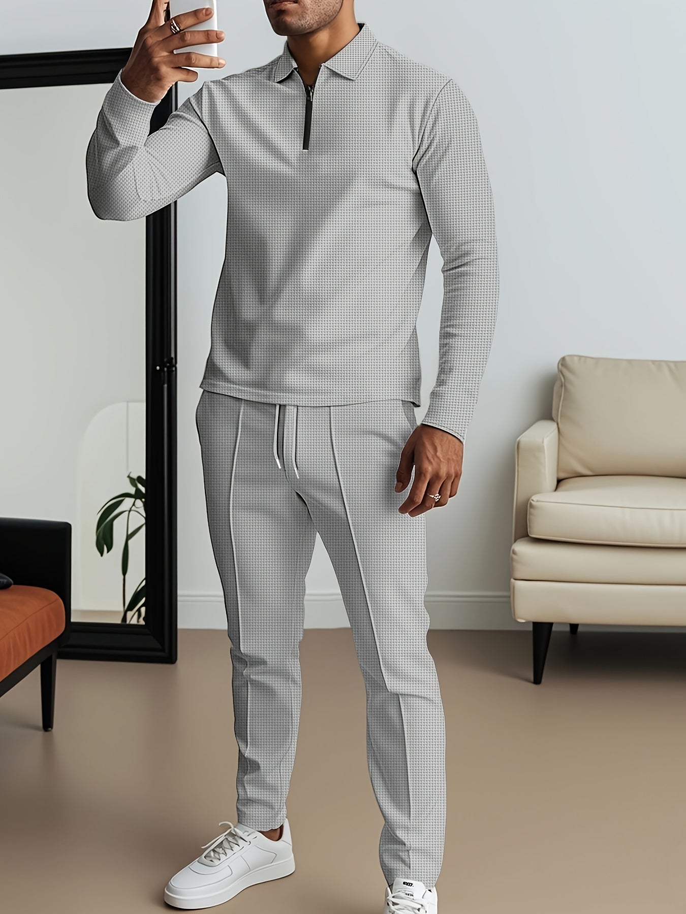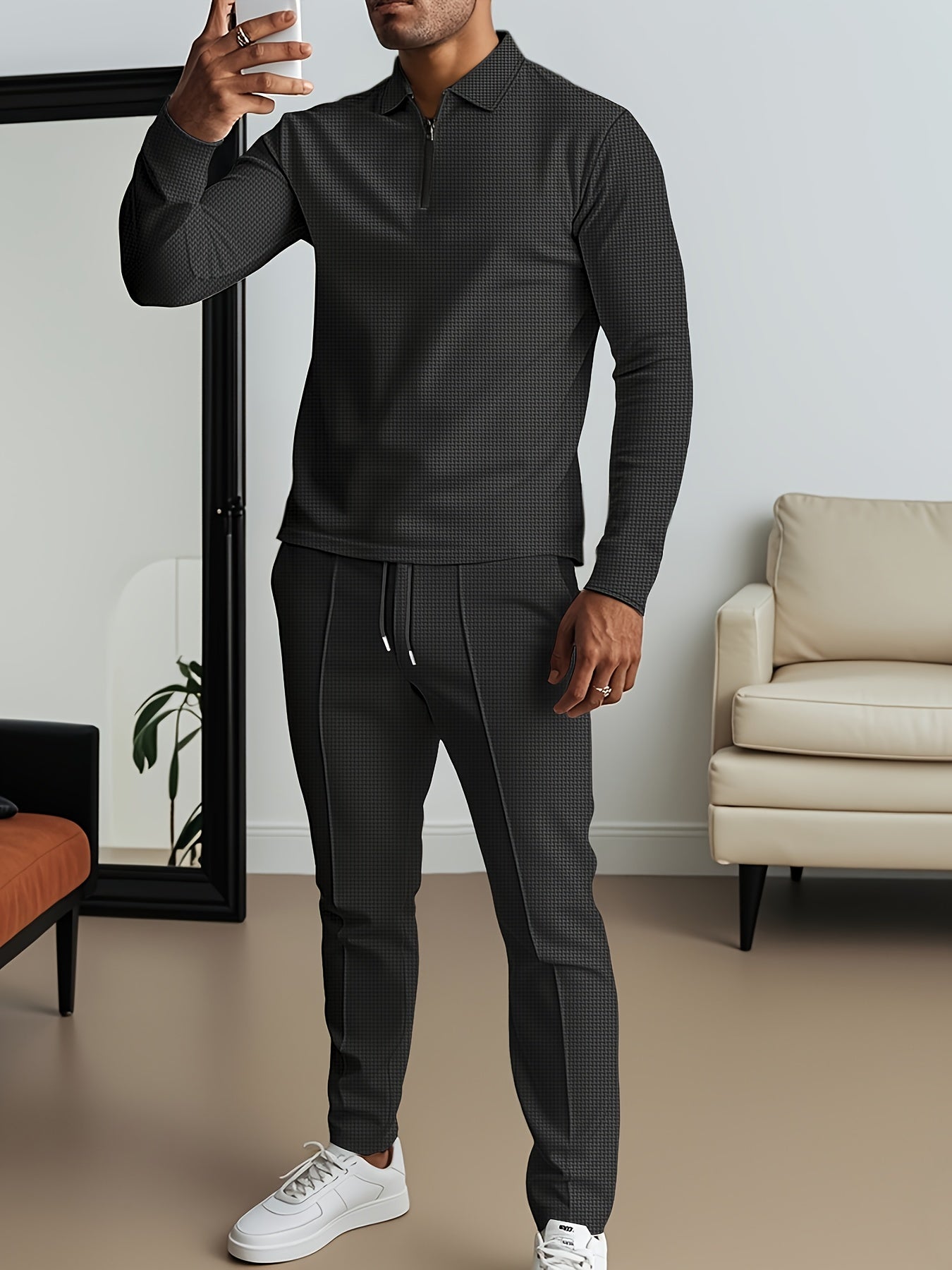 2025 collar half zipper long sleeved two-piece set, collar zipper allows for free breathing, casual pants to wear, knitted fabric is softer, multi color and multi style, Men's solid color is simple and not simple.