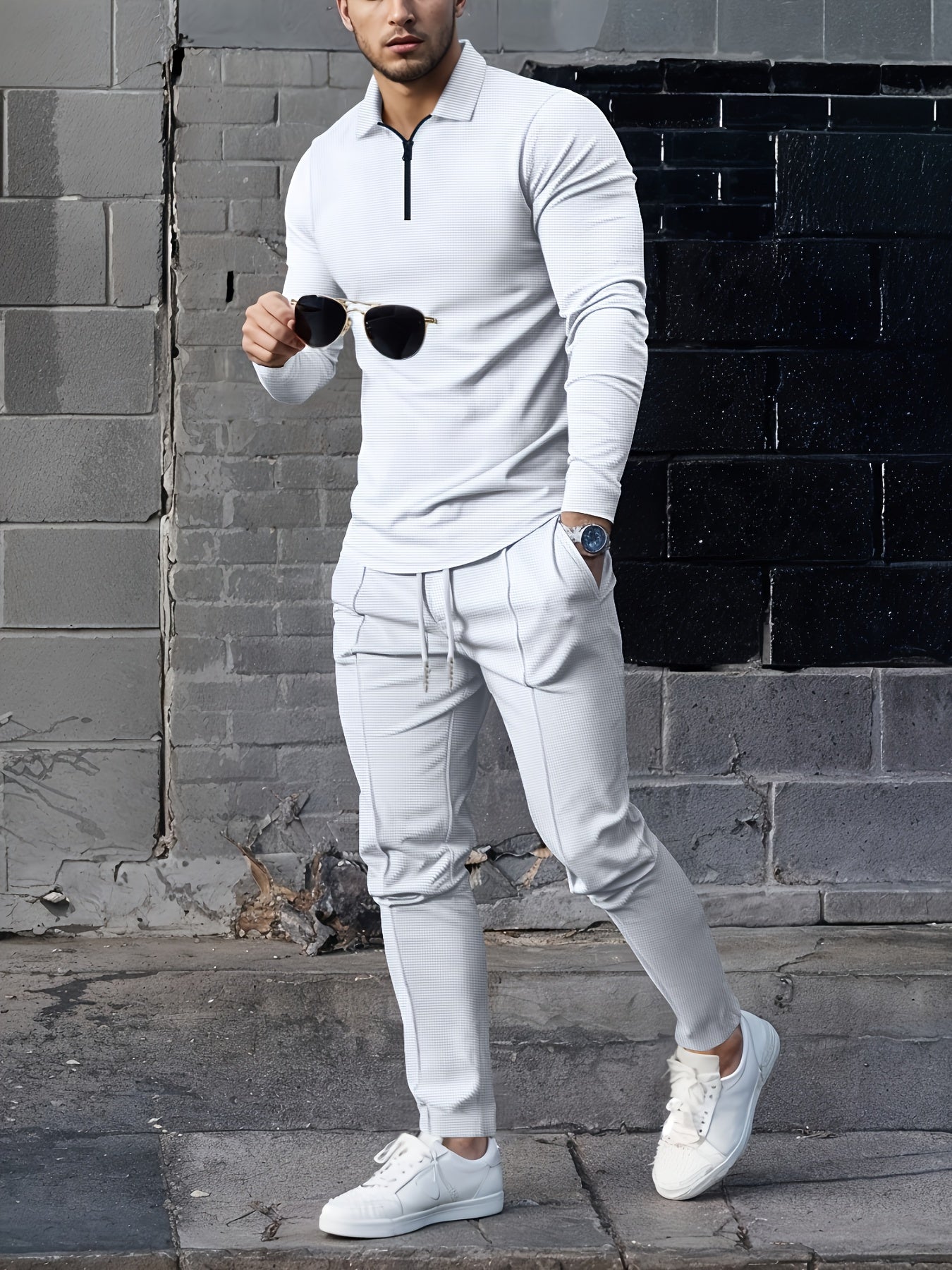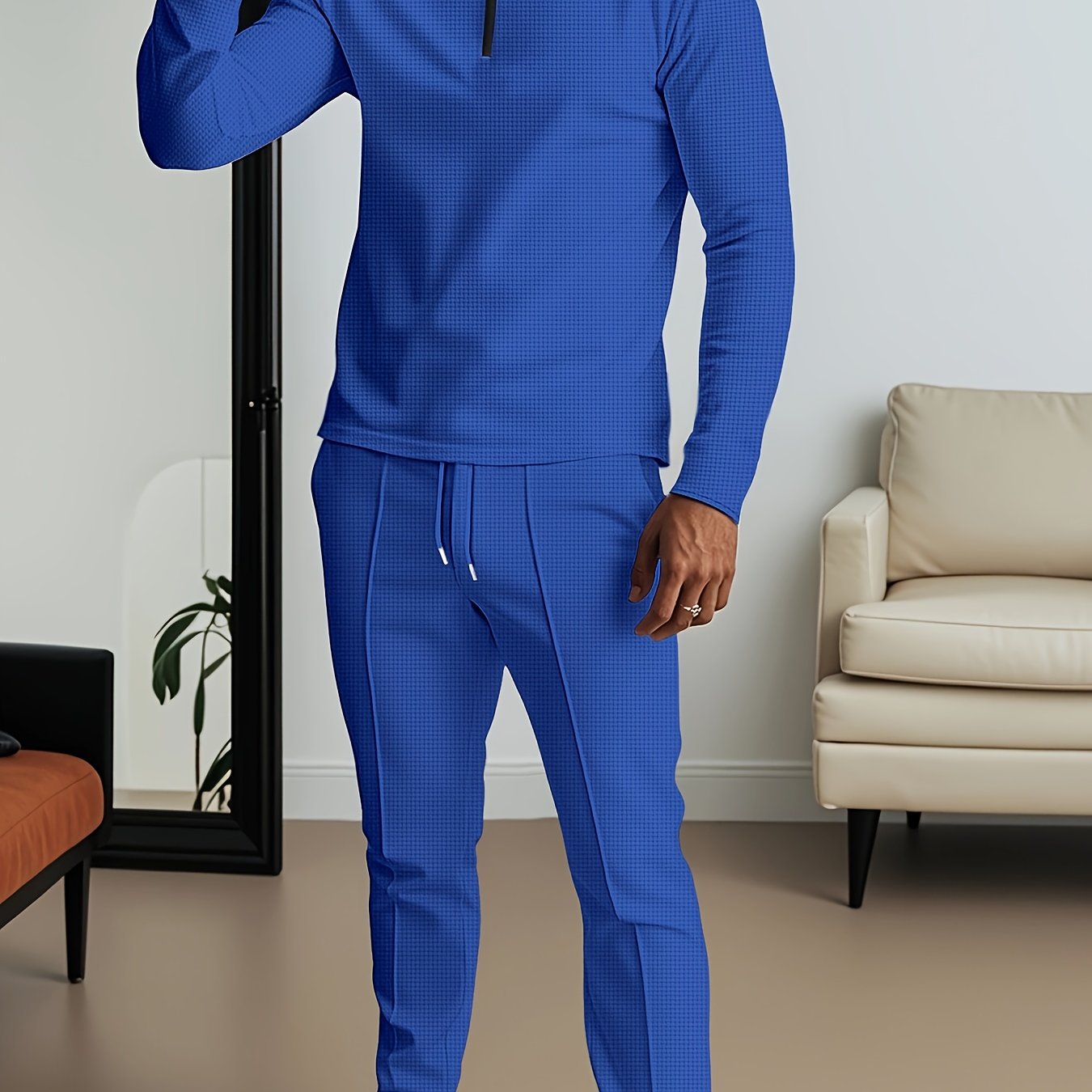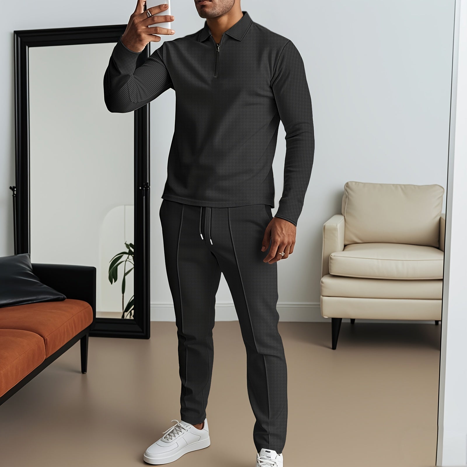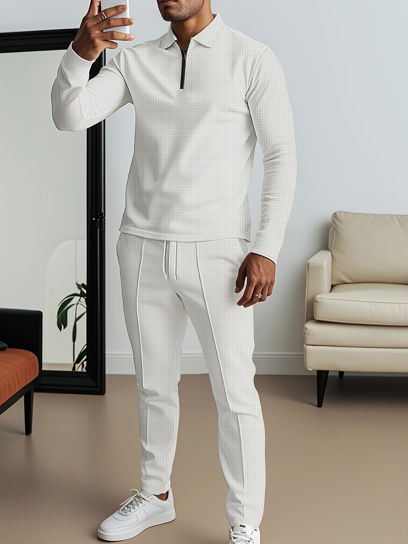 2025 collar half zipper long sleeved two-piece set, collar zipper allows for free breathing, casual pants to wear, knitted fabric is softer, multi color and multi style, Men's solid color is simple and not simple.