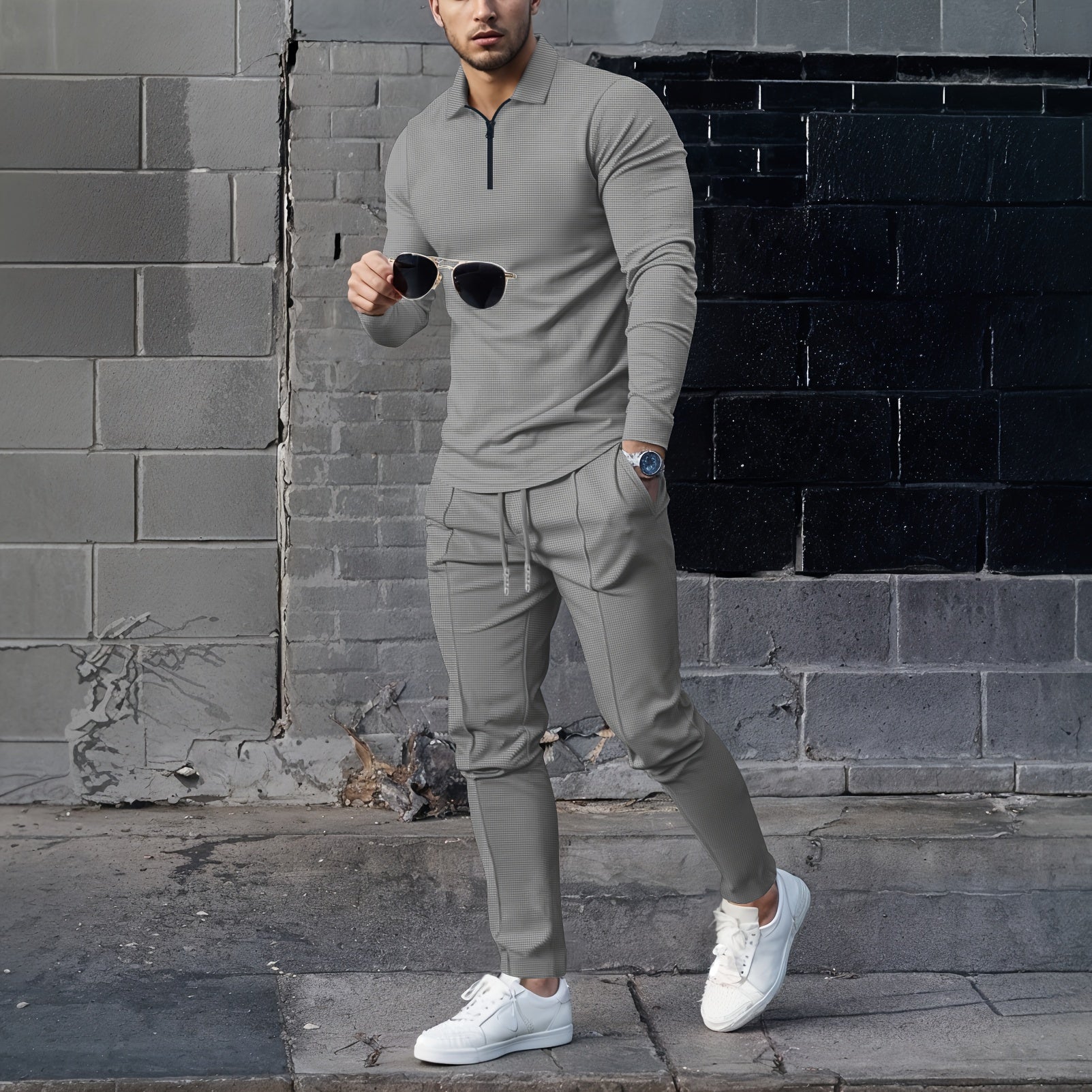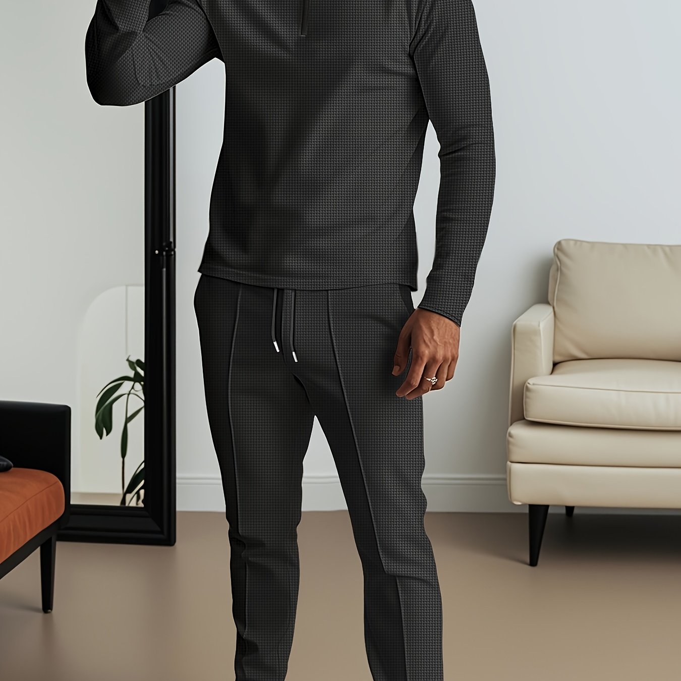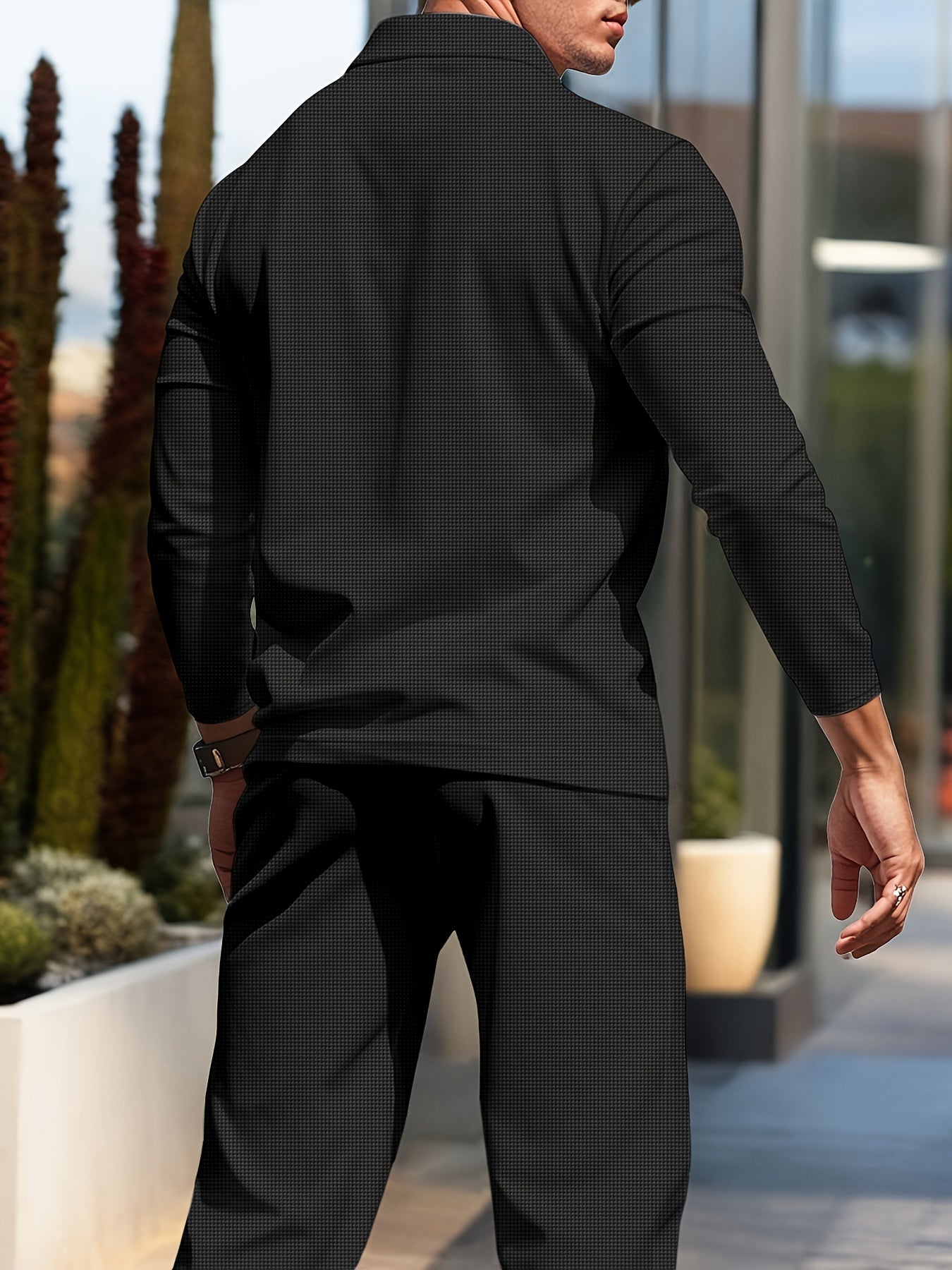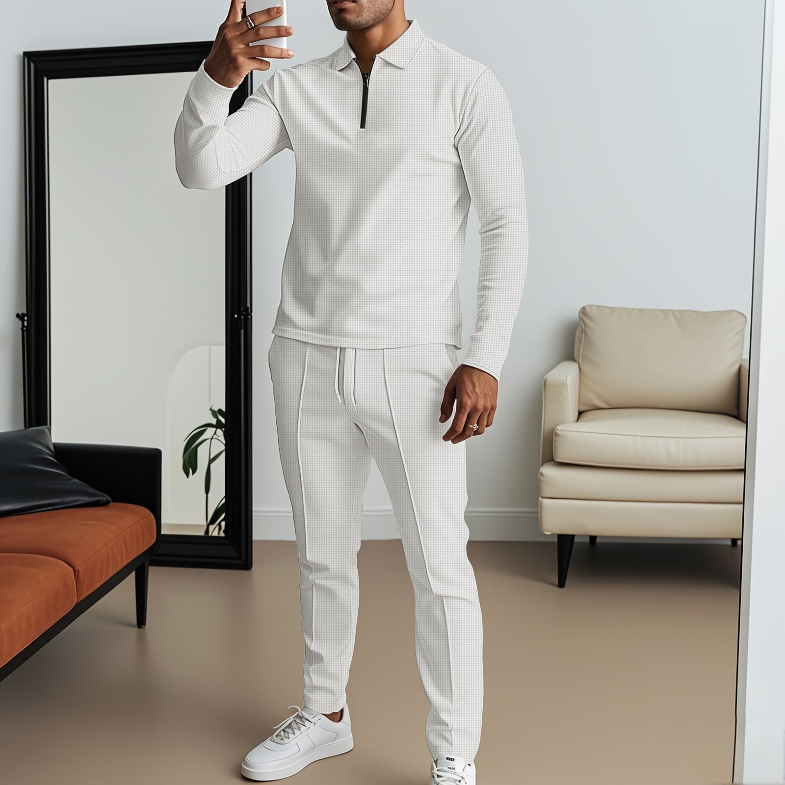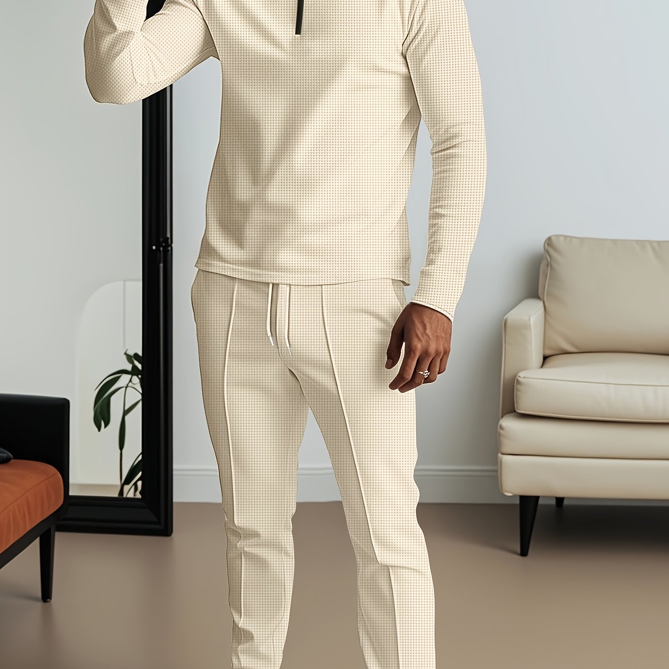2025 collar half zipper long sleeved two-piece set, collar zipper allows for free breathing, casual pants to wear, knitted fabric is softer, multi color and multi style, Men's solid color is simple and not simple.