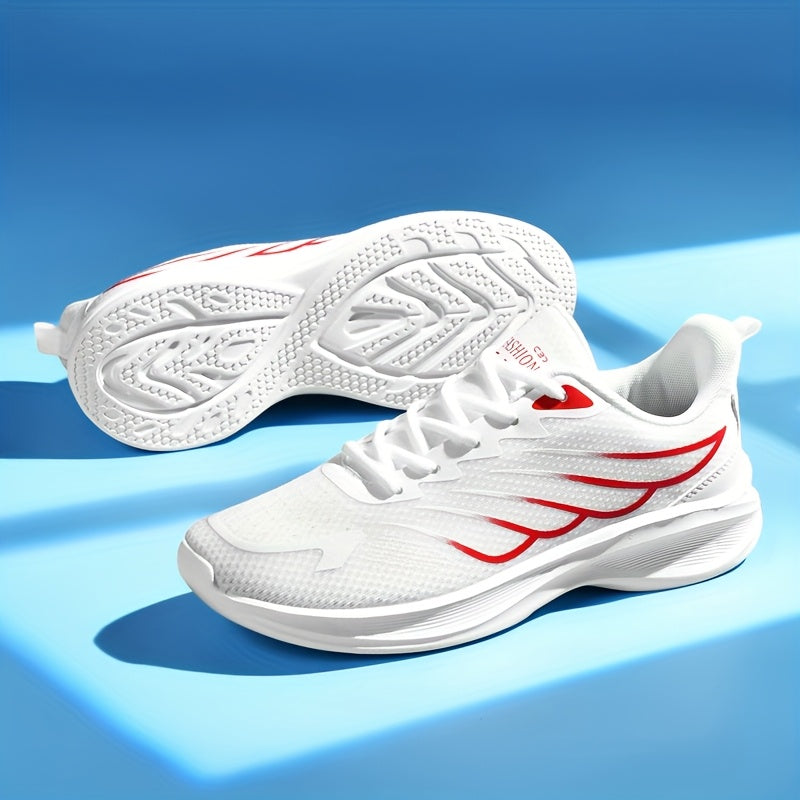 2025 New Arrival Men'S White Red Sneakers - Breathable Mesh, Soft Bottom, Casual Sports Shoes for Running Daily Wear, Casual Athletic Shoes Modern Casual Shoes Breathable Upper, Running Shoes