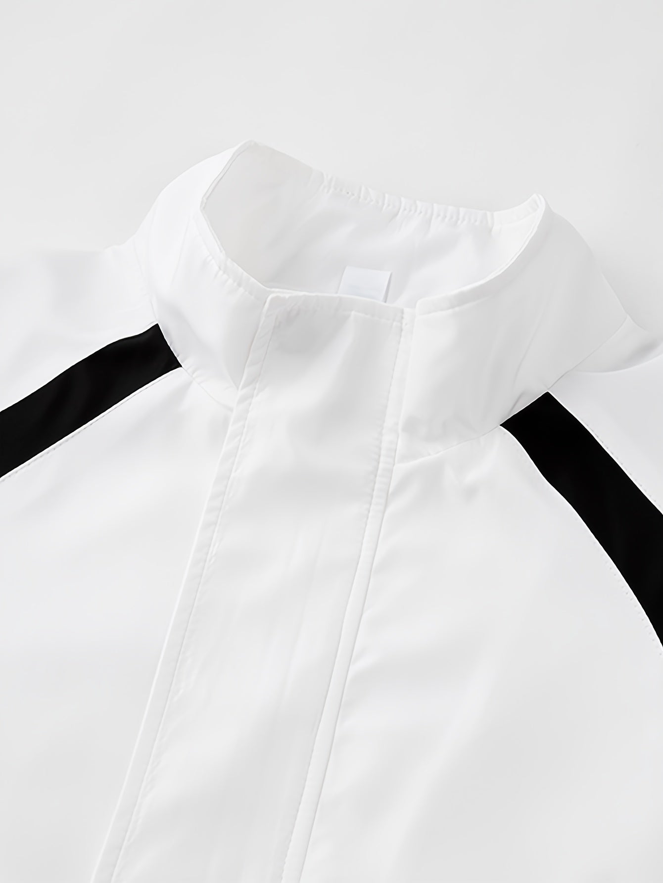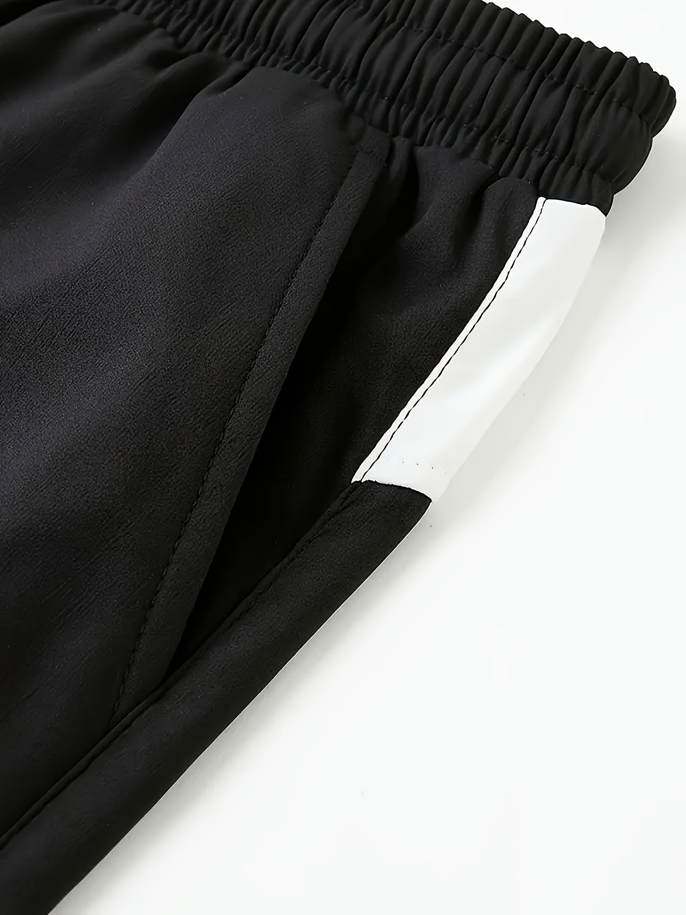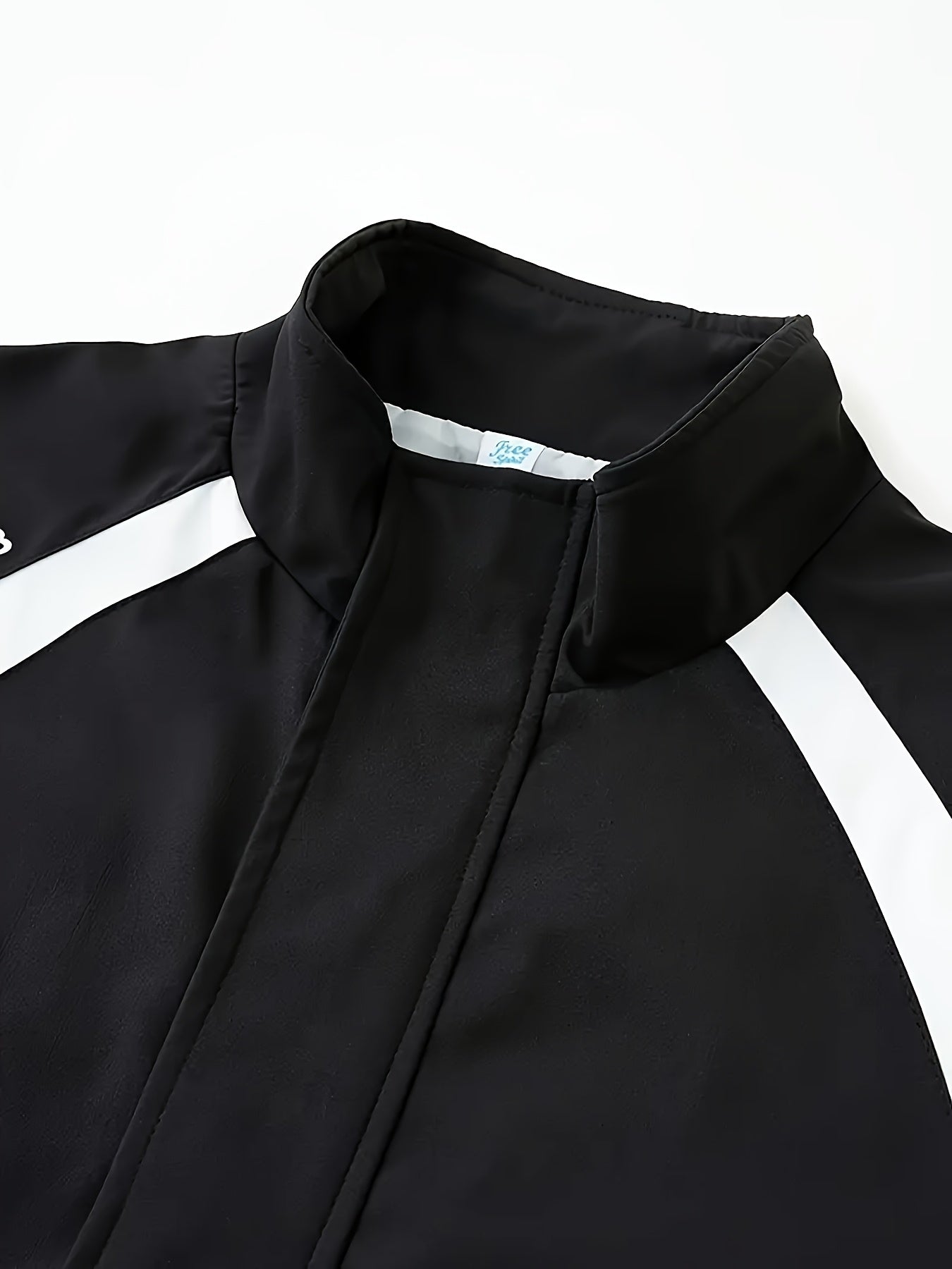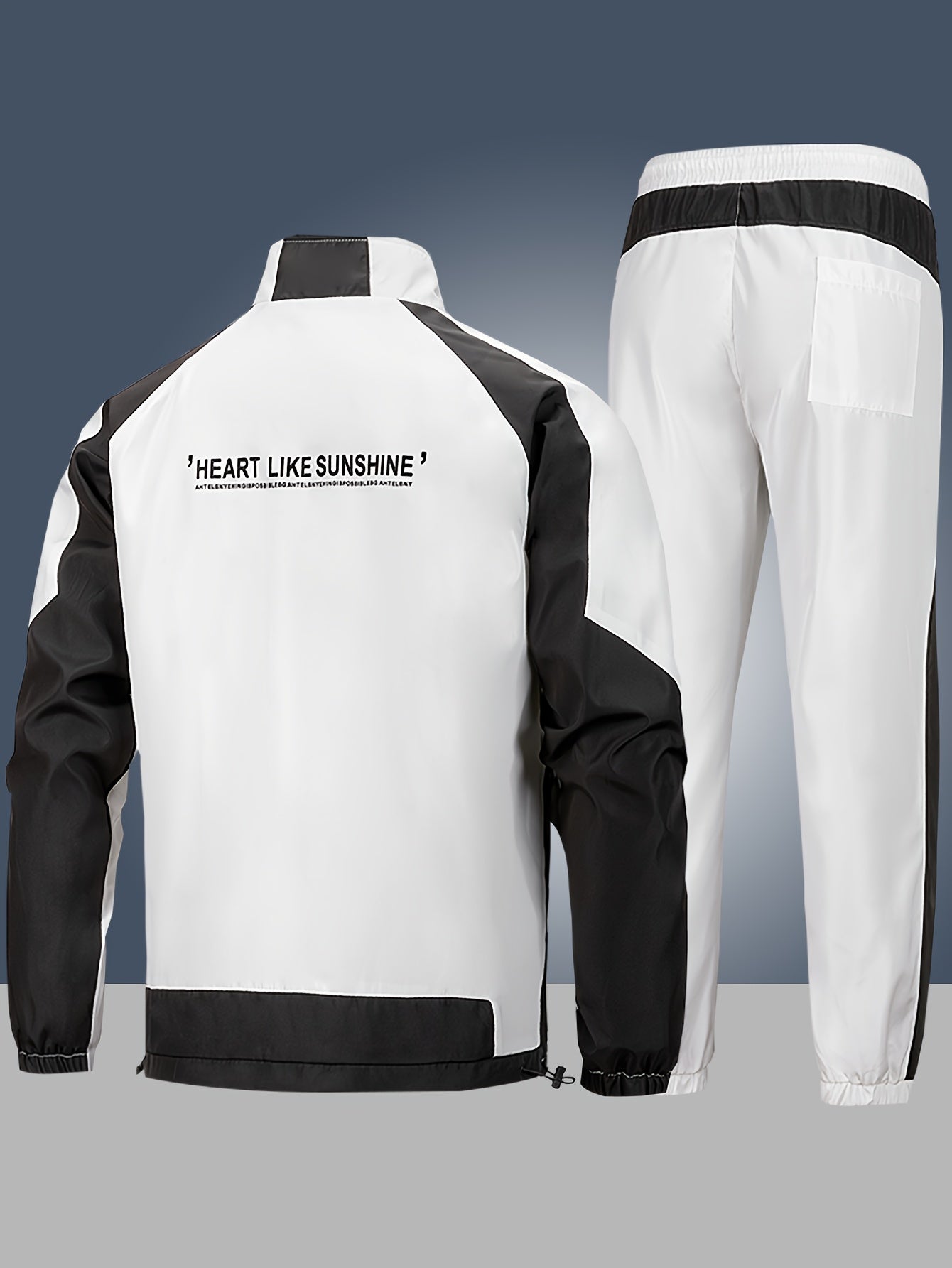 2025 New Casual Sports Set Men'S Spring and Autumn New Trendy Print Jacket, 100% Polyester, Soft Fabric Machine Washable, Casual Sports Loose Running Suit 2pcs Set, For Teenager