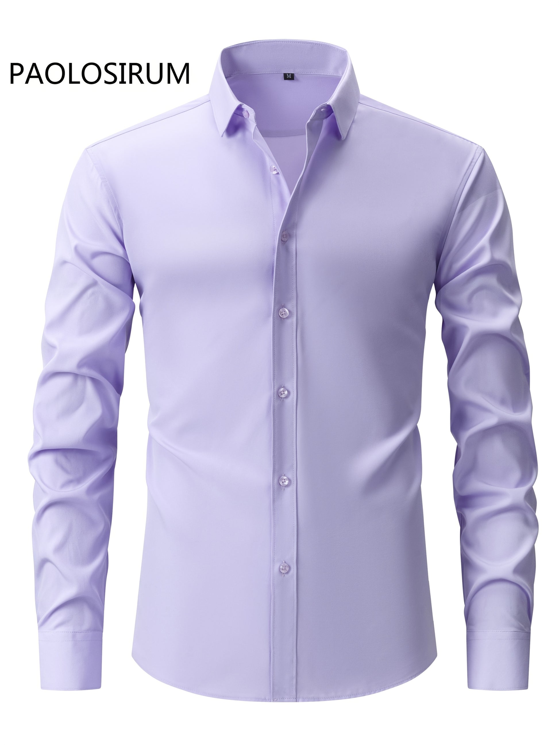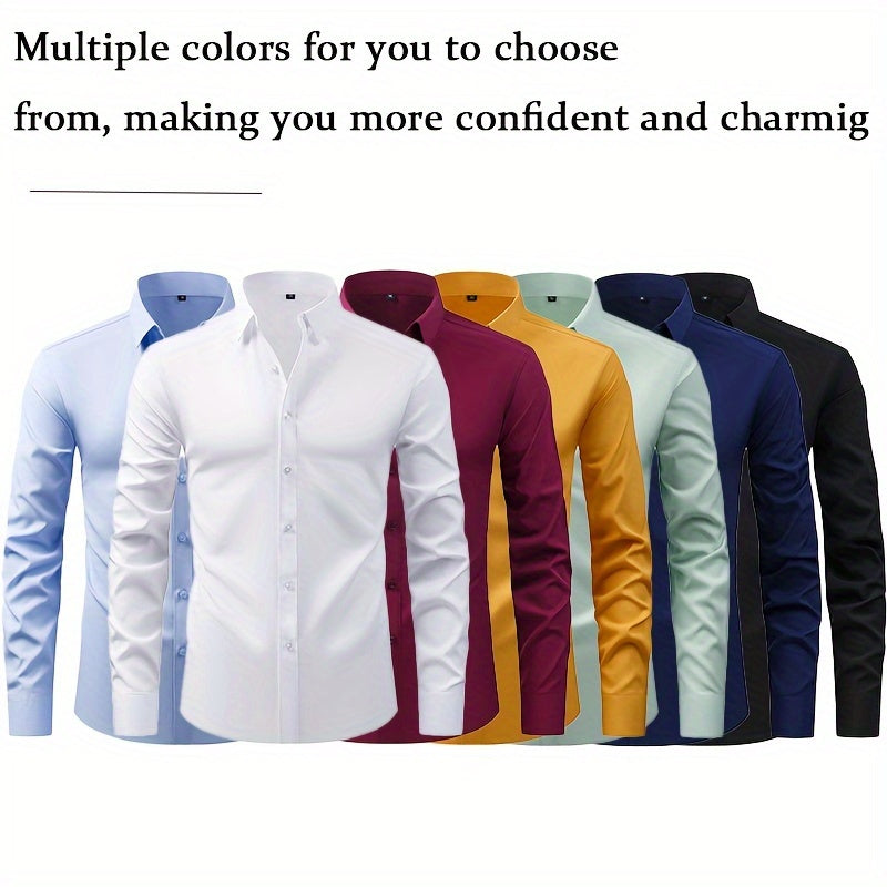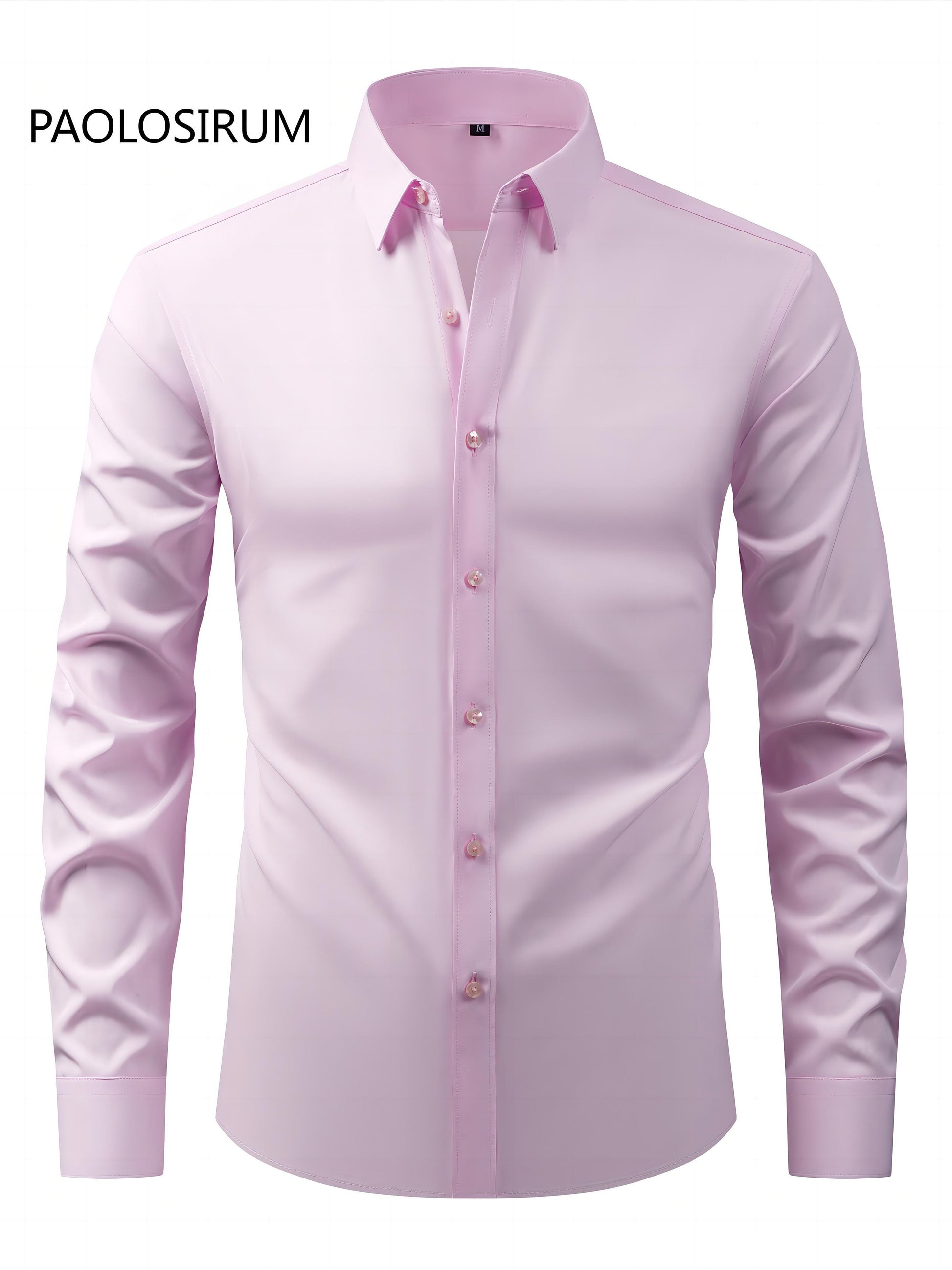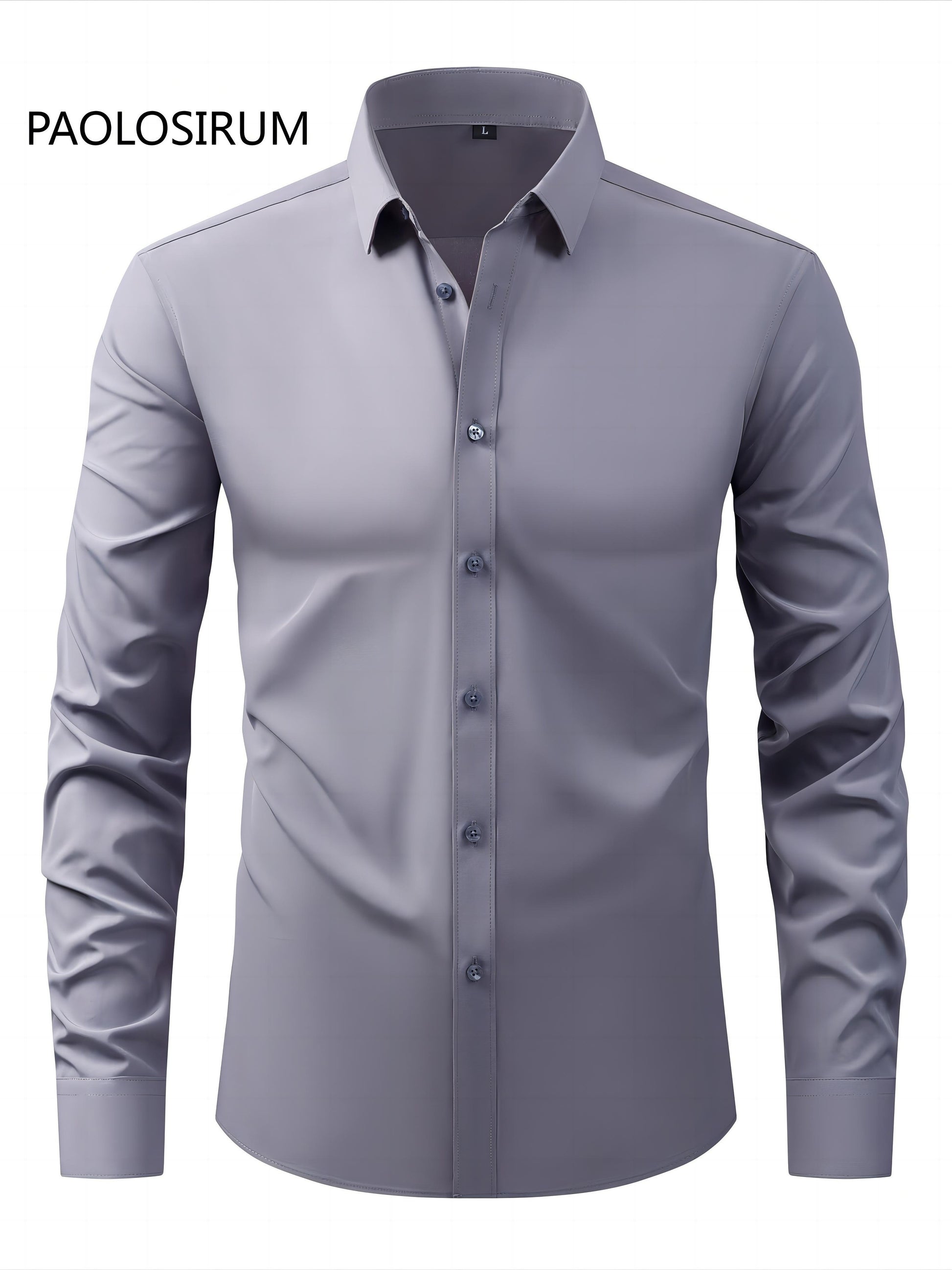 2025 New Men'S Business Slim-Fit Long-Sleeve Shirt, Wrinkle-Free, Elastic, And Smooth Fabric.