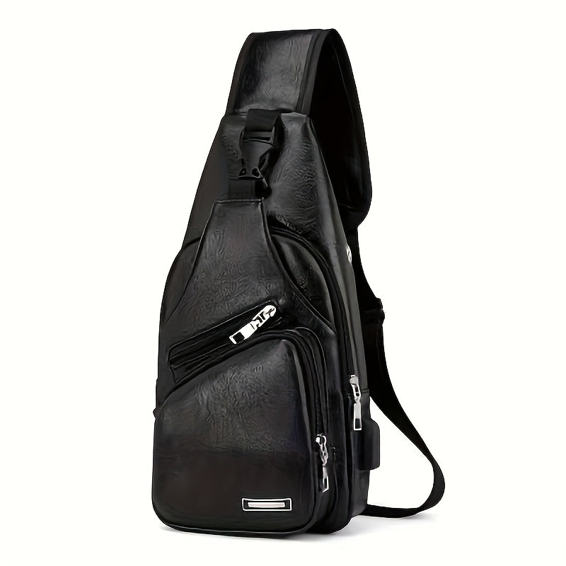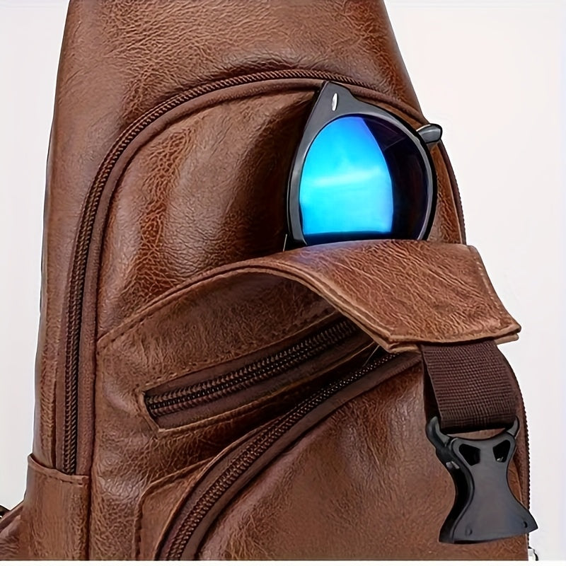 2025 New Men'S Fashion Chest Bag - Soft Faux Leather Anti-Theft Crossbody Bag with Multiple Compartments, Adjustable Strap Zipper Closure for Gym, Travel, Casual Outings (Brown), Secure Travel Pouch, Textured Finish
