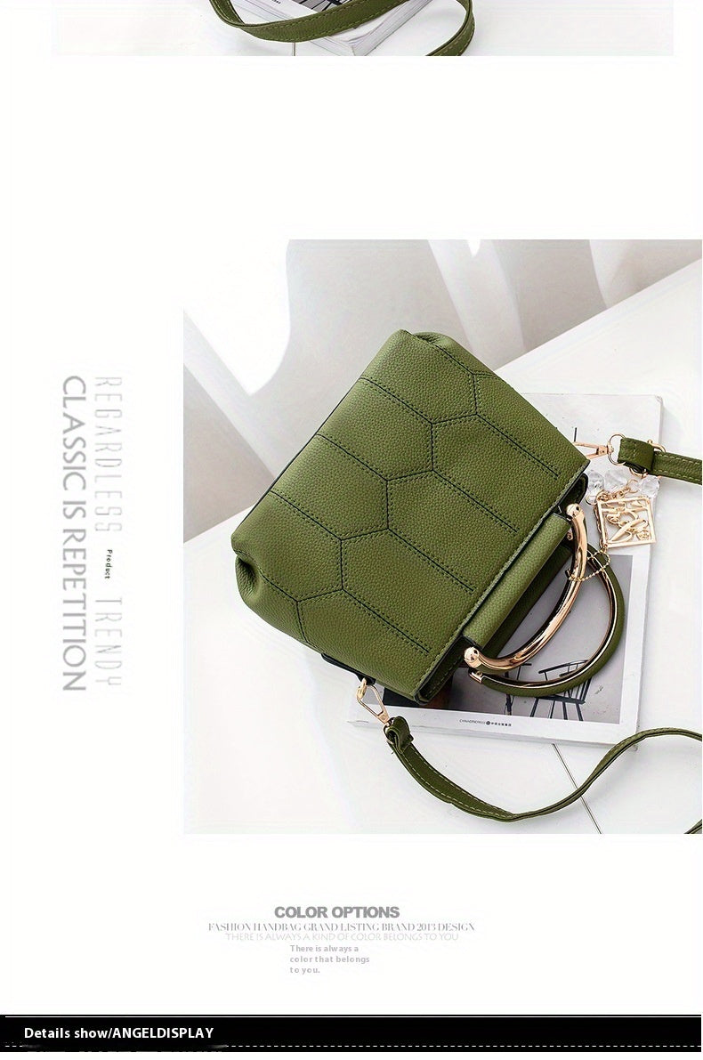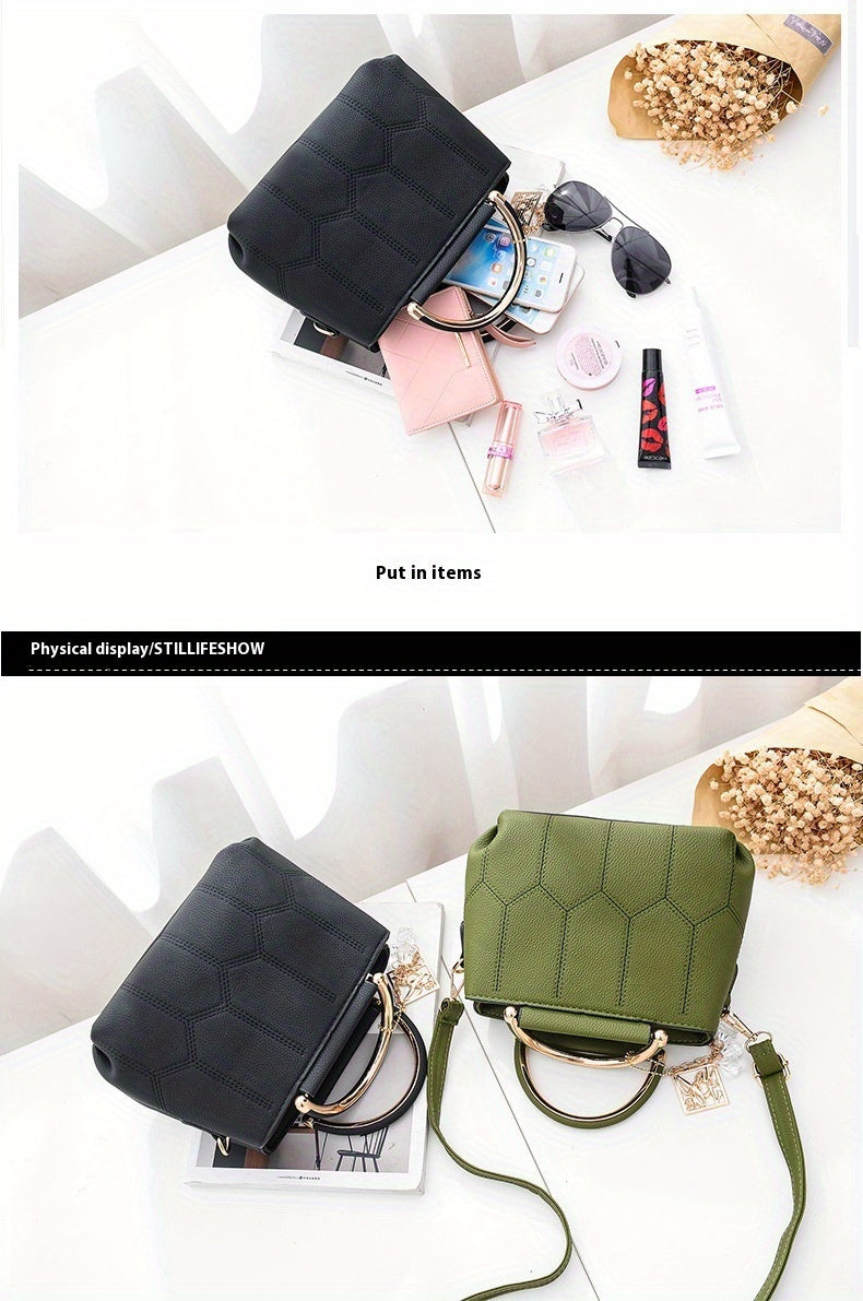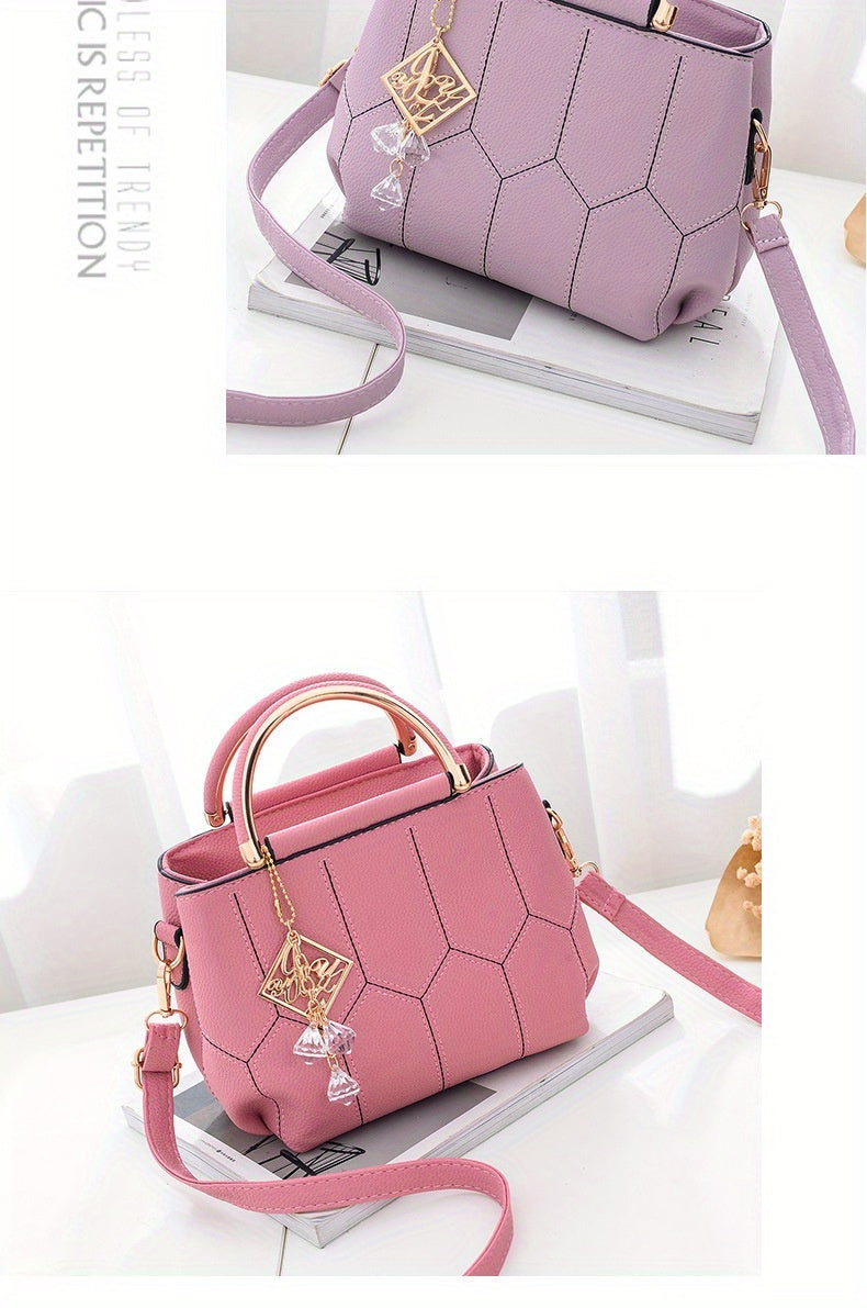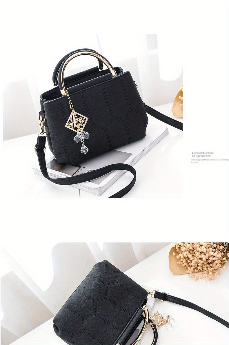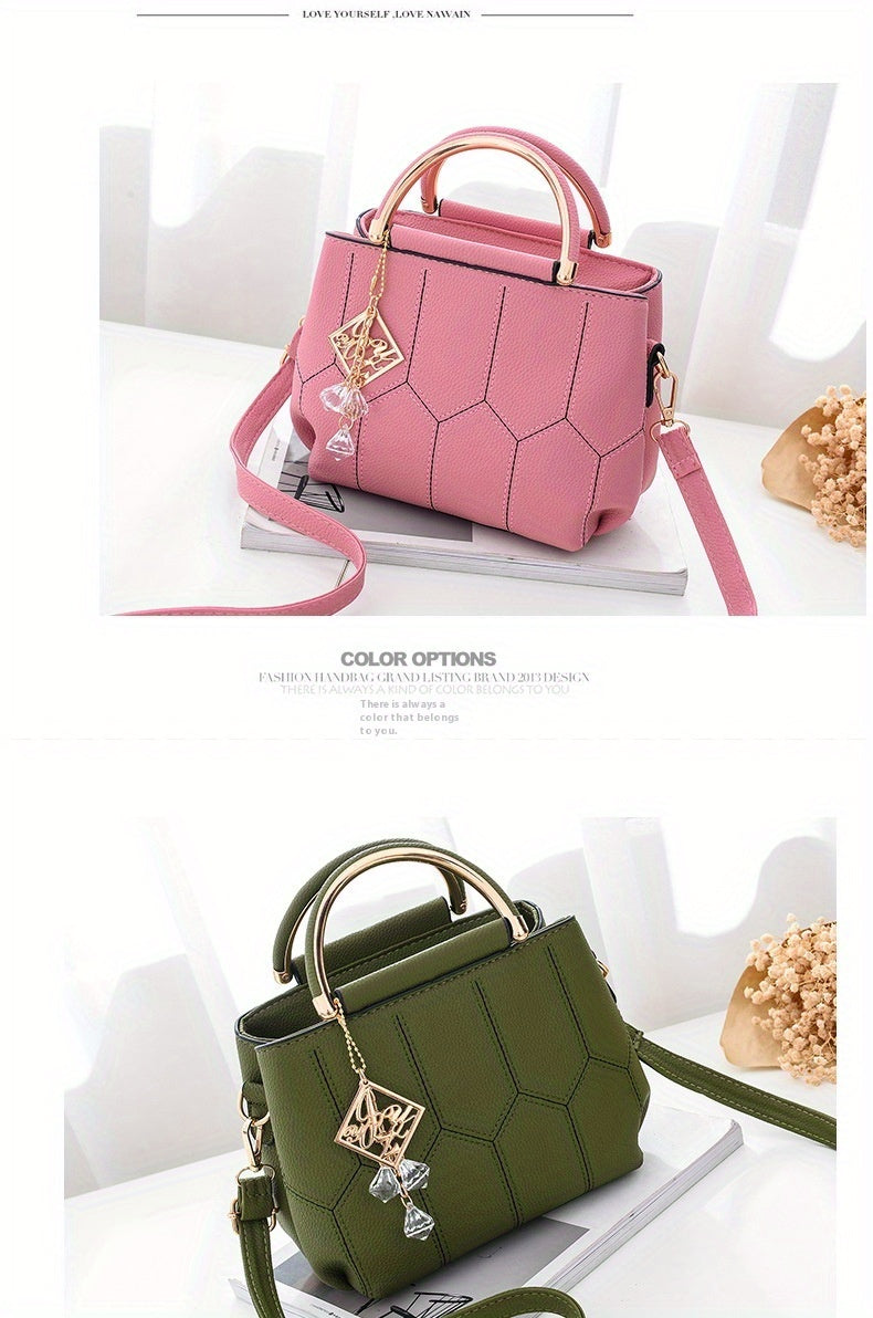 2025 New Women's Geometric Hexagon Pattern Crossbody Bag with Adjustable Strap & Golden-Tone Hardware - Zipper Closure, Polyester Lining, Multiple Colors (Khaki/Dark Gray/White/Pink/Red/Black) - Versatile for Casual & Formal