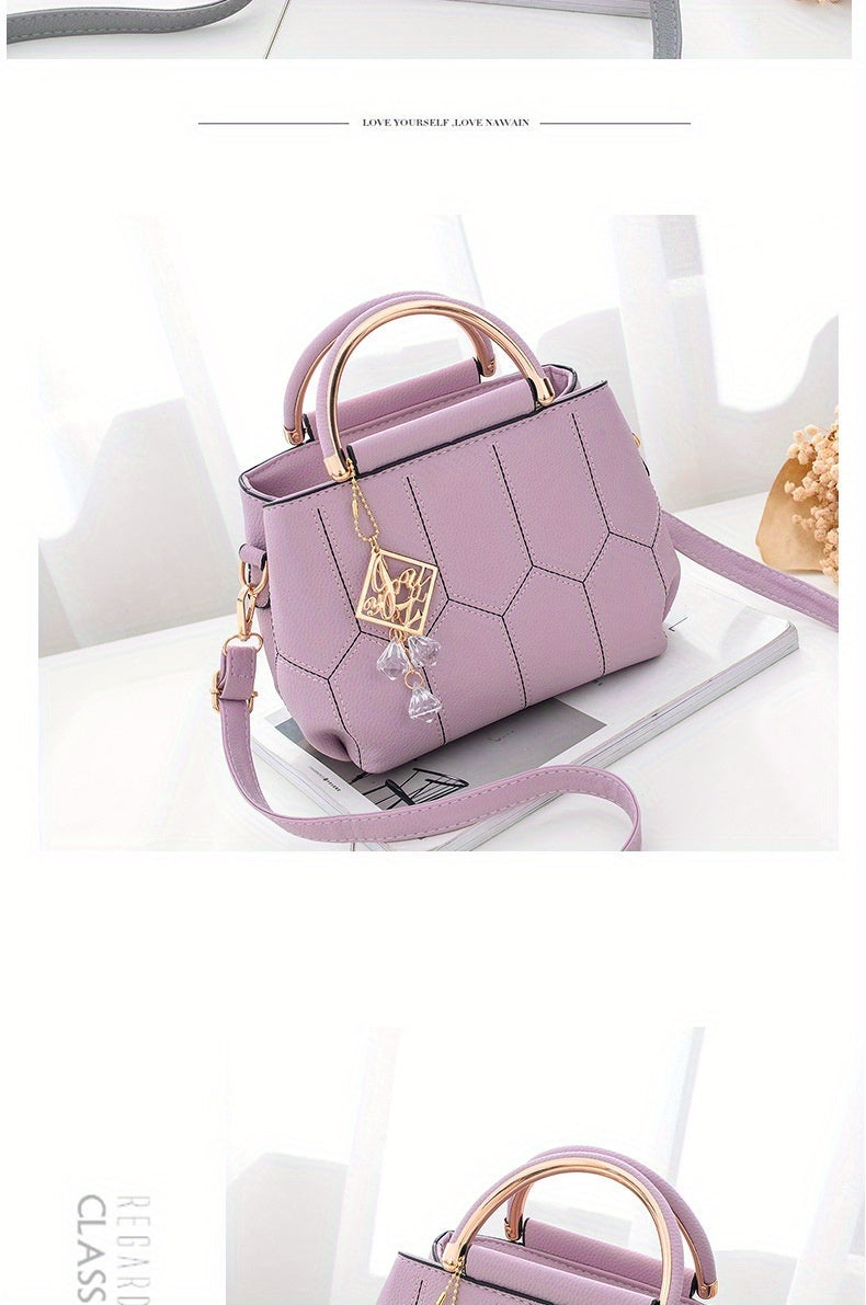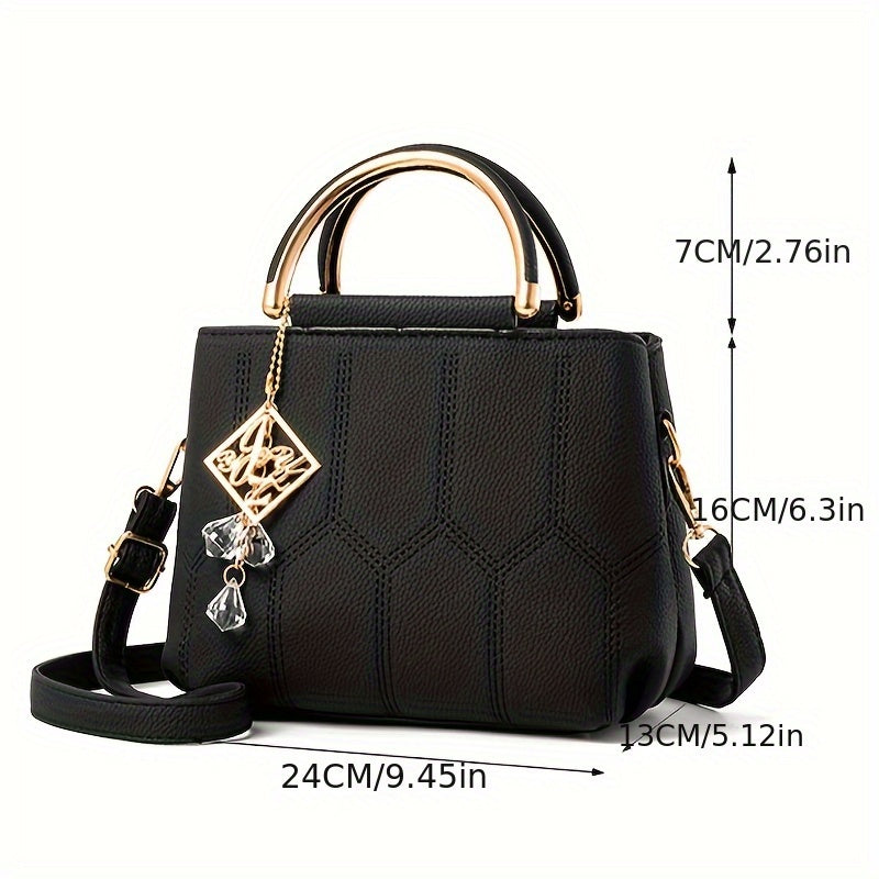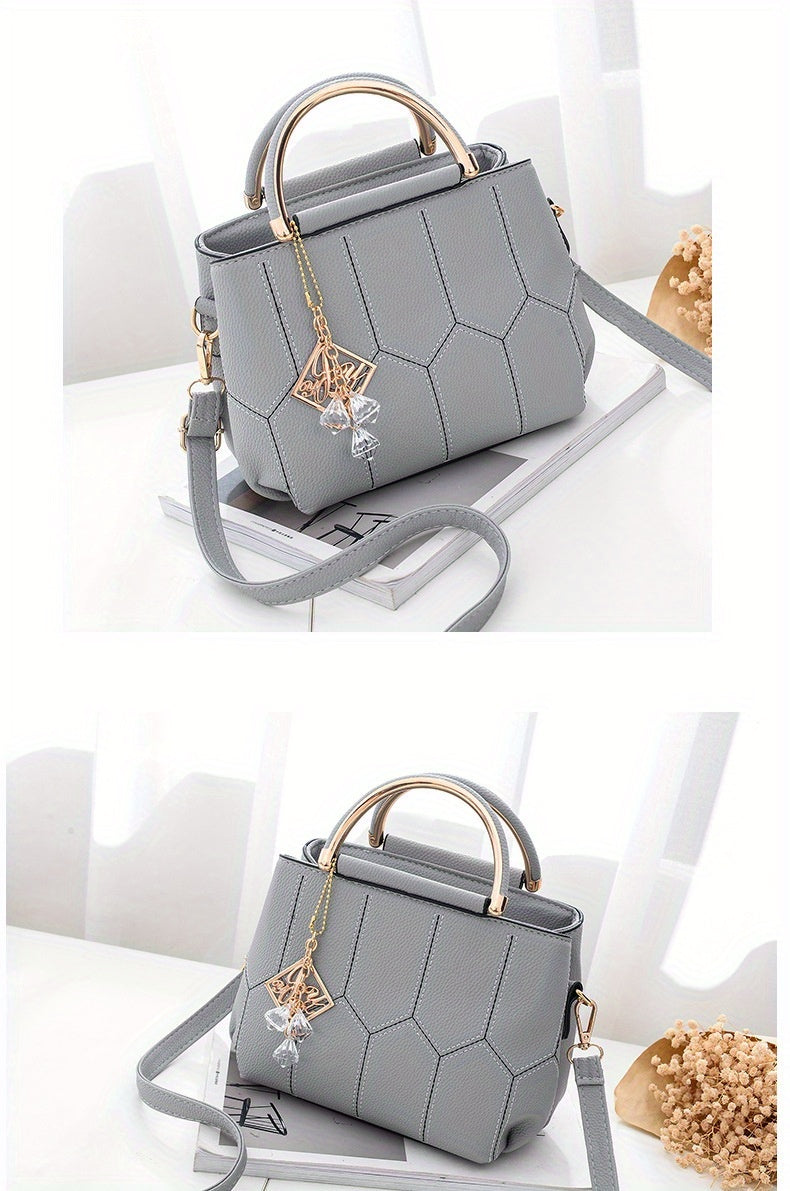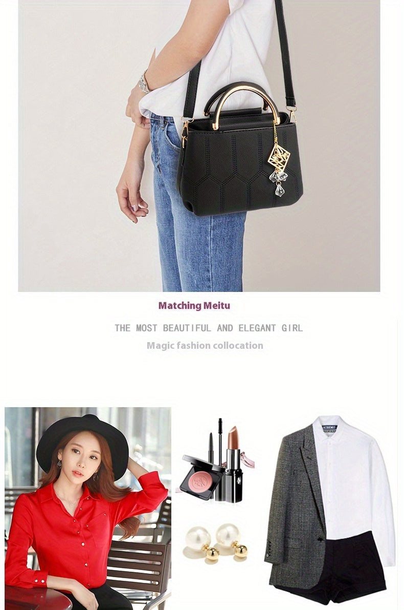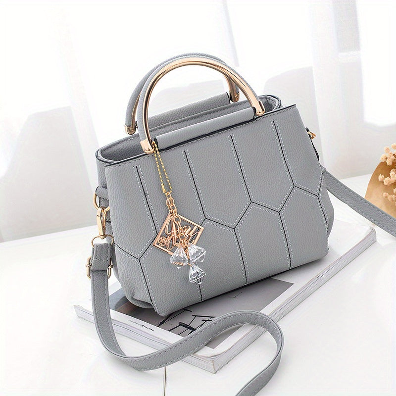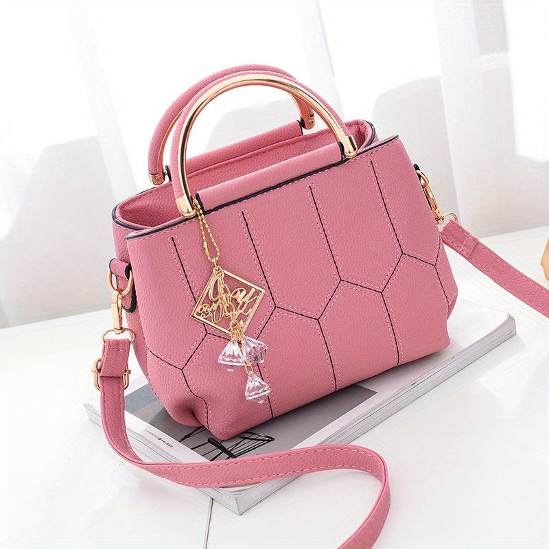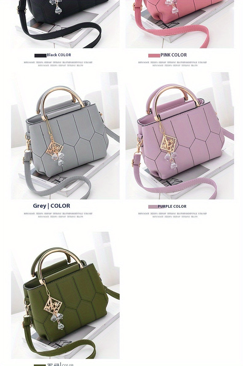 2025 New Women's Geometric Hexagon Pattern Crossbody Bag with Adjustable Strap & Golden-Tone Hardware - Zipper Closure, Polyester Lining, Multiple Colors (Khaki/Dark Gray/White/Pink/Red/Black) - Versatile for Casual & Formal