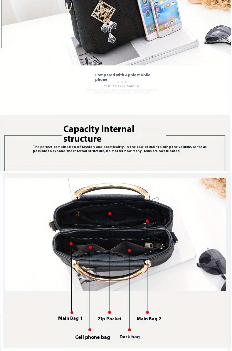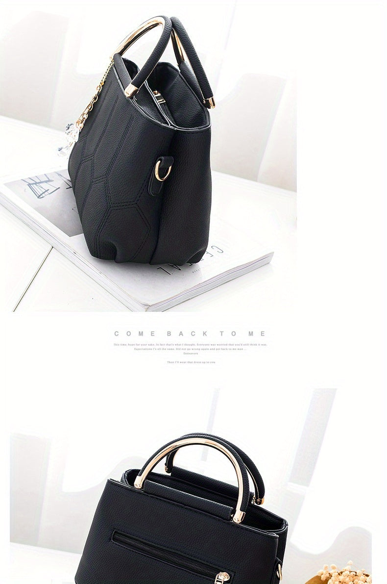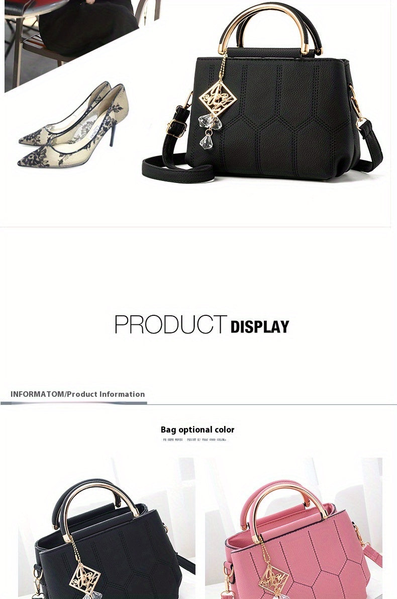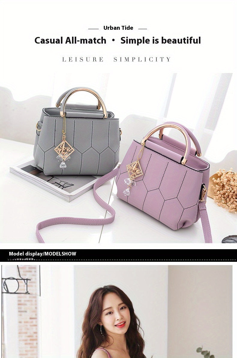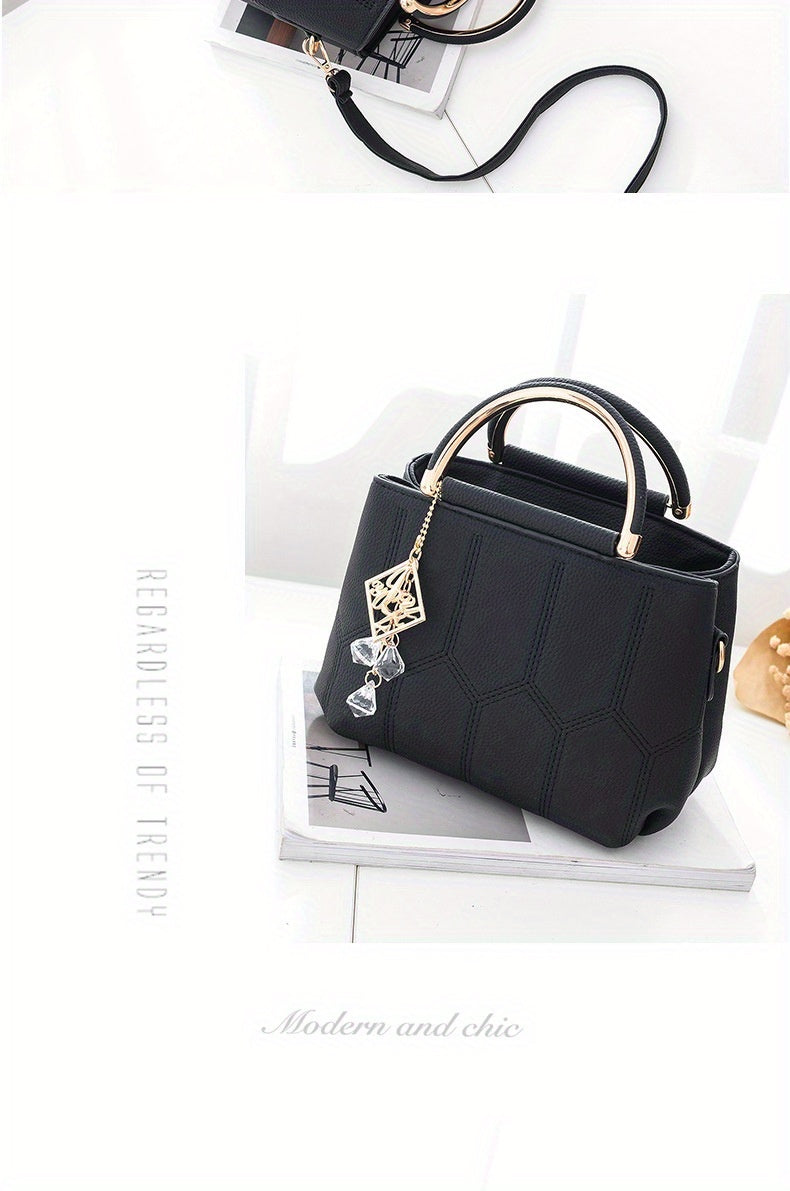 2025 New Women's Geometric Hexagon Pattern Crossbody Bag with Adjustable Strap & Golden-Tone Hardware - Zipper Closure, Polyester Lining, Multiple Colors (Khaki/Dark Gray/White/Pink/Red/Black) - Versatile for Casual & Formal