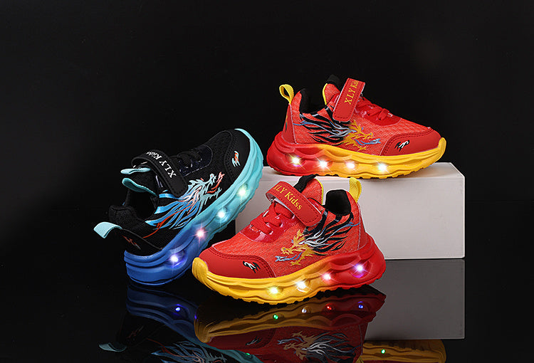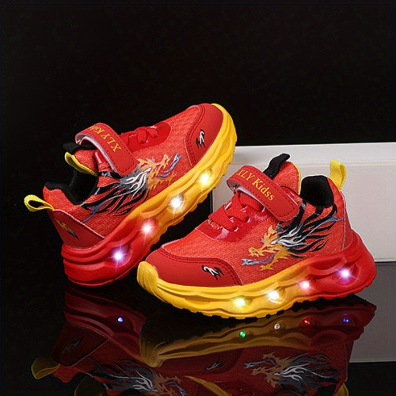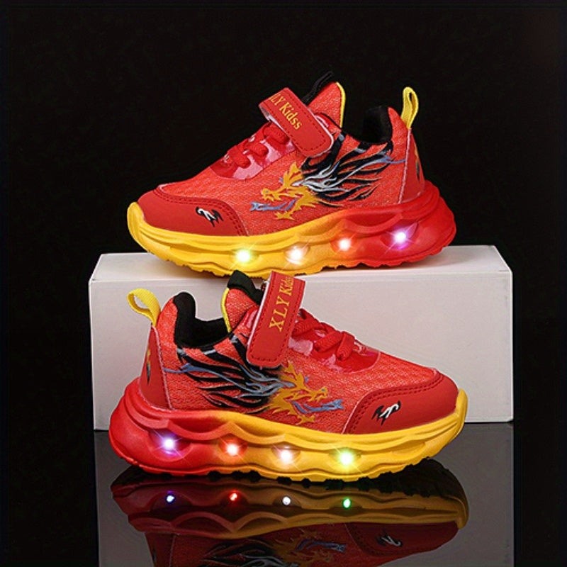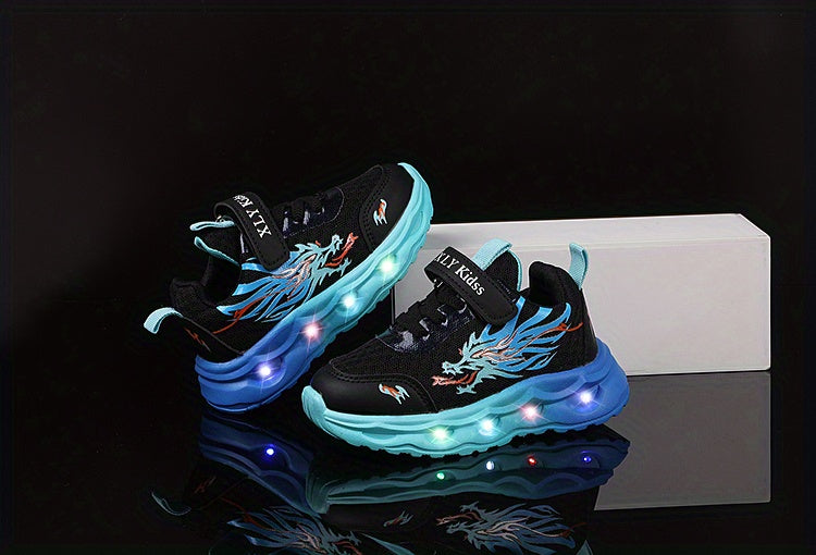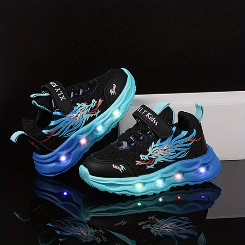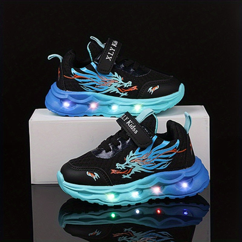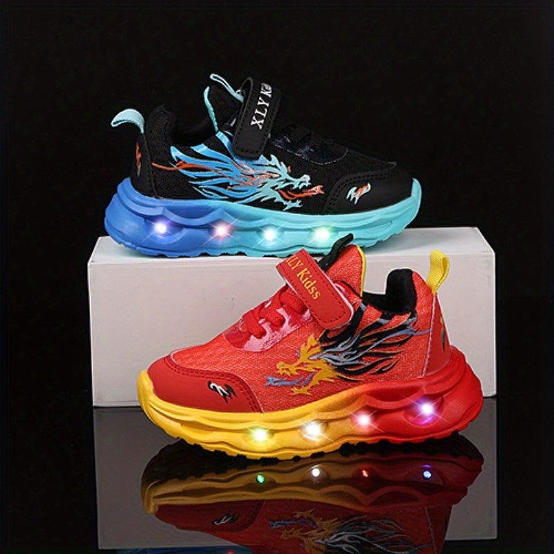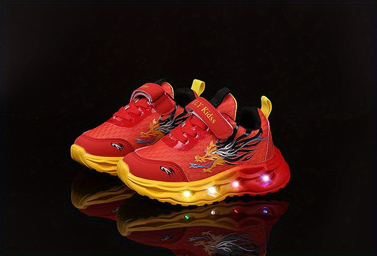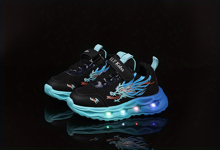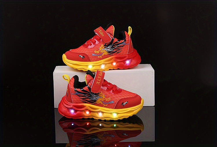 2025 New Youngsters' LED Light-Up Sneakers - Sparkling Cartoon Dad Shoes for Boys & Girls, Closure, Breathable Fabric Upper & Durable PVC Sole, All-Season Casual Wear, Kid Shoes, Everyday Youngsters'S Footwear, Fun Youngsters