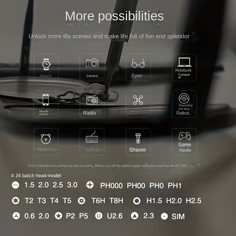 25-In-1 Precision Screwdriver Set for Mobile Phone And Tablet Repairs, Includes Drill Bits, Tweezers, And Pry Tools, Comes with a Portable Storage Case, Essential for Electronic Device Maintenance.