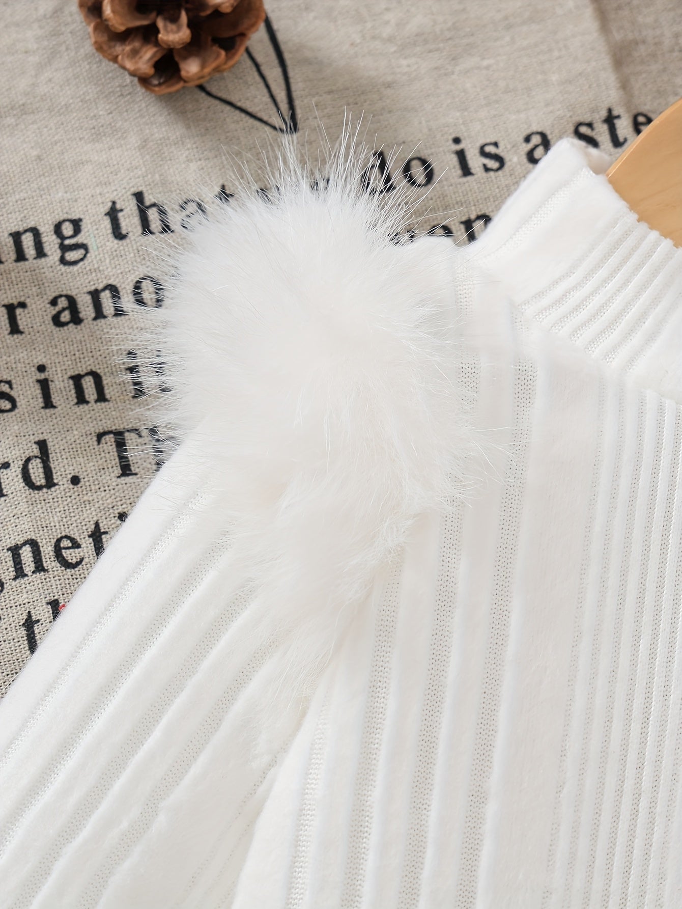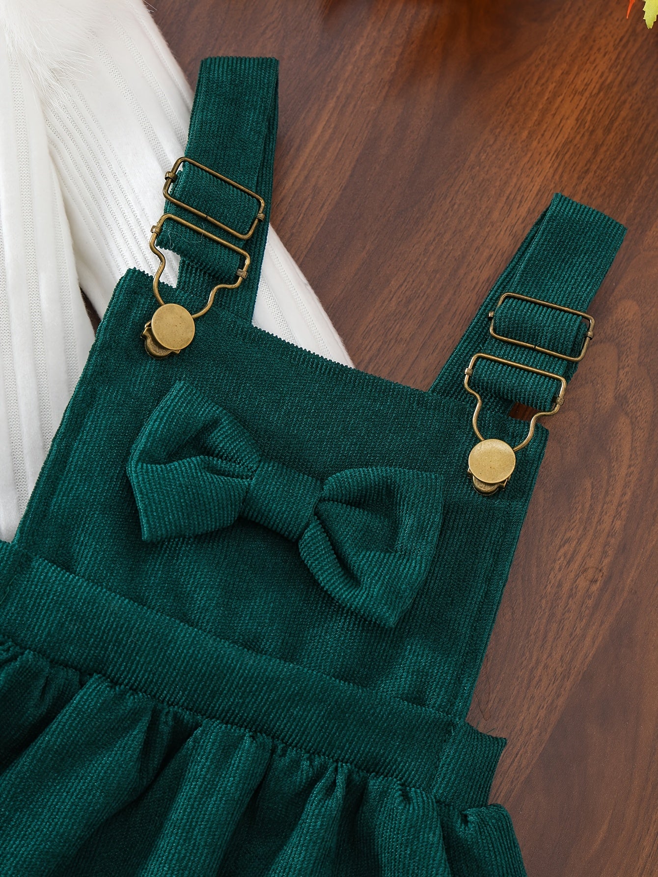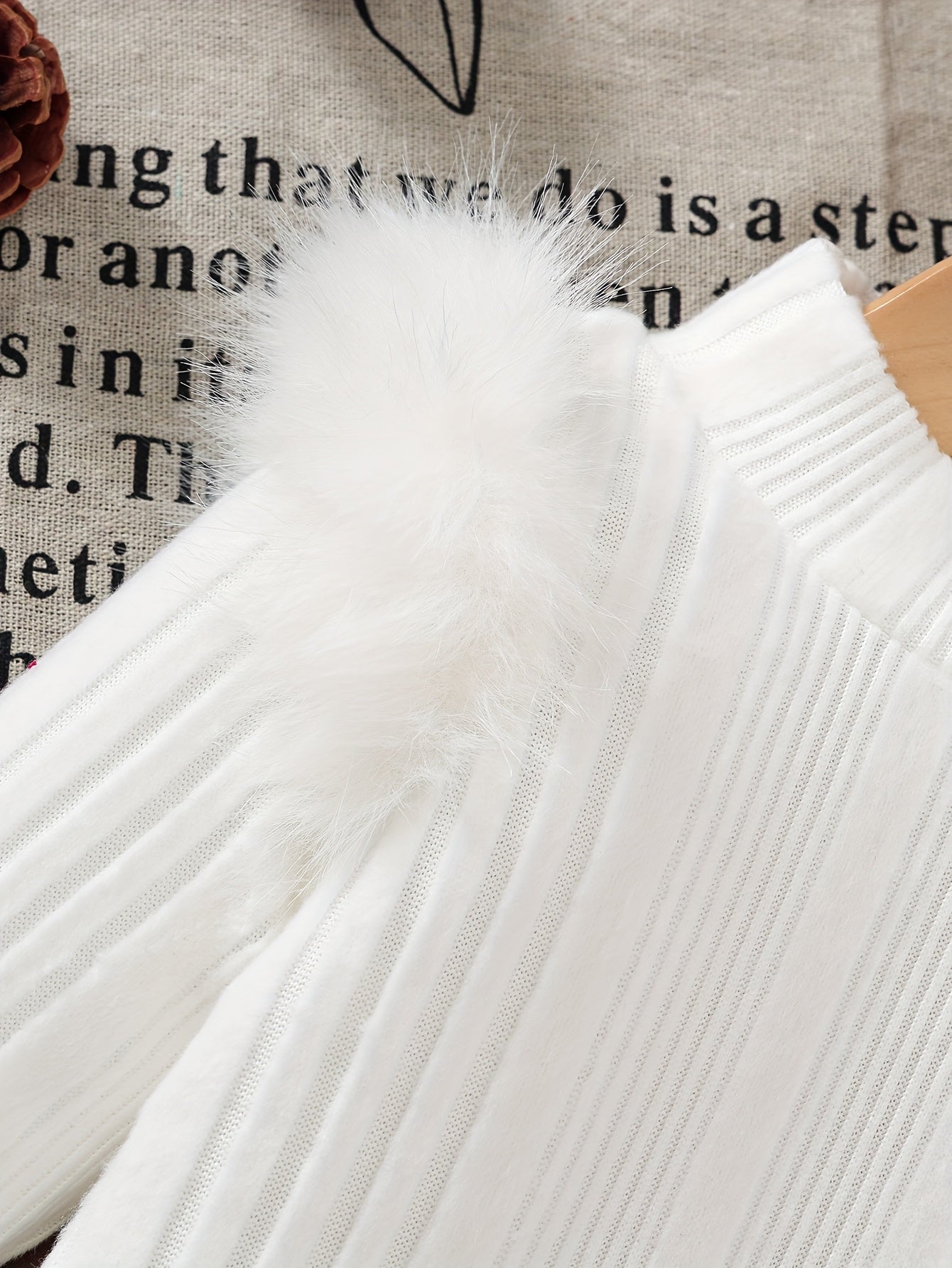 2pcs Baby Winter Outfit Set: Cozy Fluffy Sleeve Smock Dress & A-Line Bow with Collar & Fringe Trim - Soft Warm Clothes for Photoshoots, Christmas (Hand Washable), Perfect for Outdoor