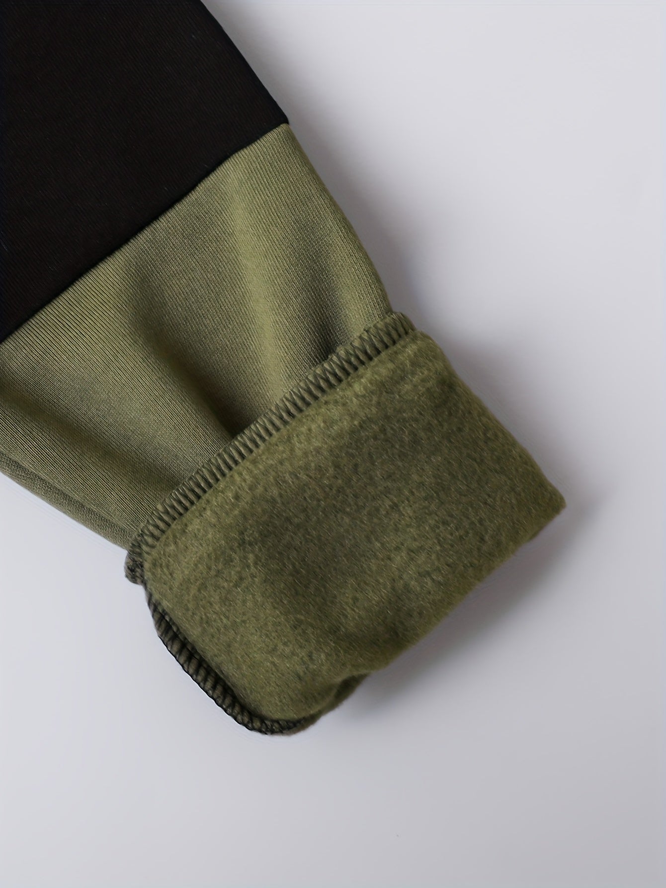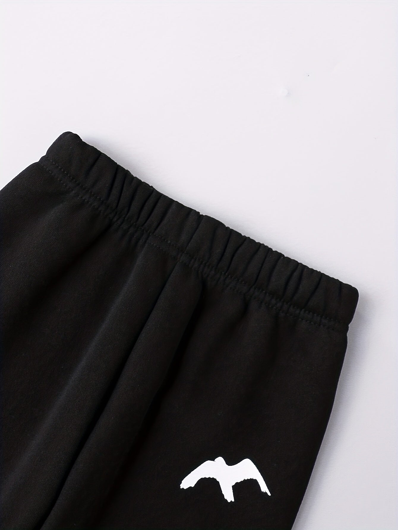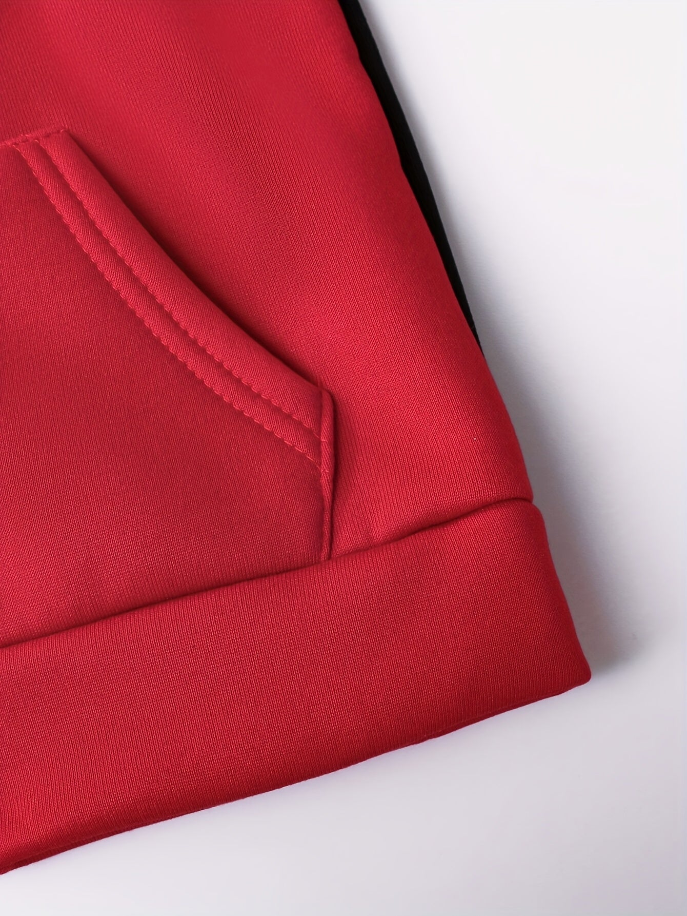 2pcs Boys' Autumn/Winter Fleece-Lined Hooded Zip-Up Jacket and Pants Set with Bird Print, Simple Color Block Design with Pockets, Fashionable Sporty Outfit for Outdoor Activities and Daily Wear, 100% Polyester Knit Stretch Fa