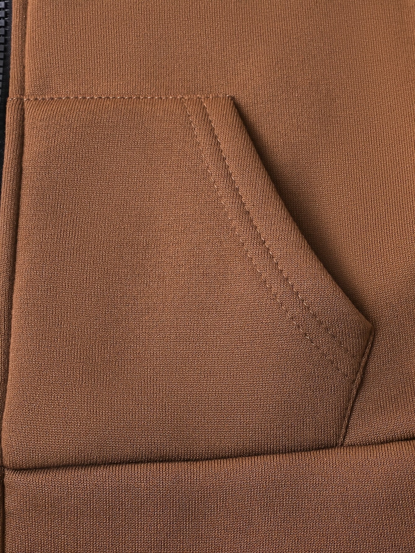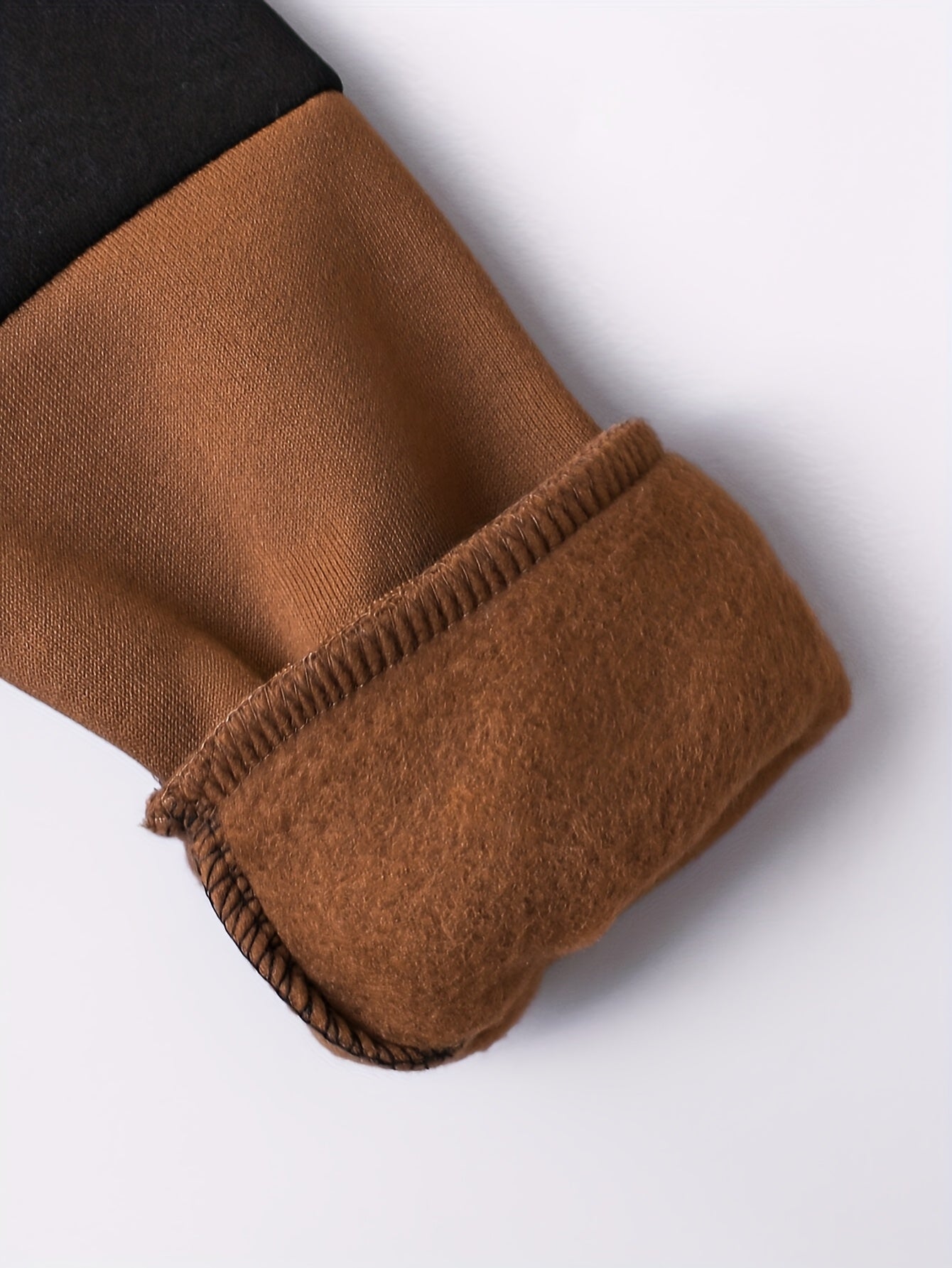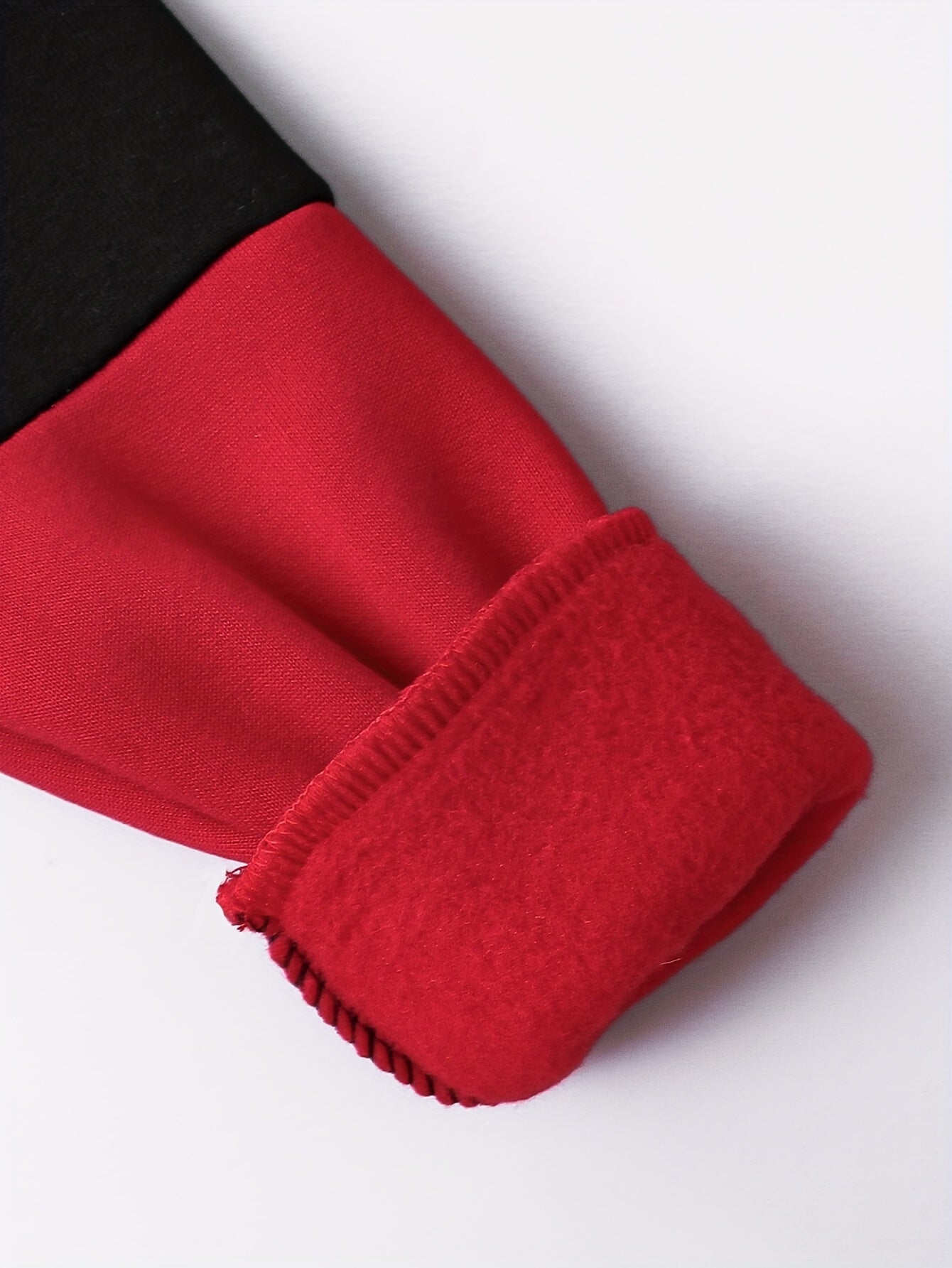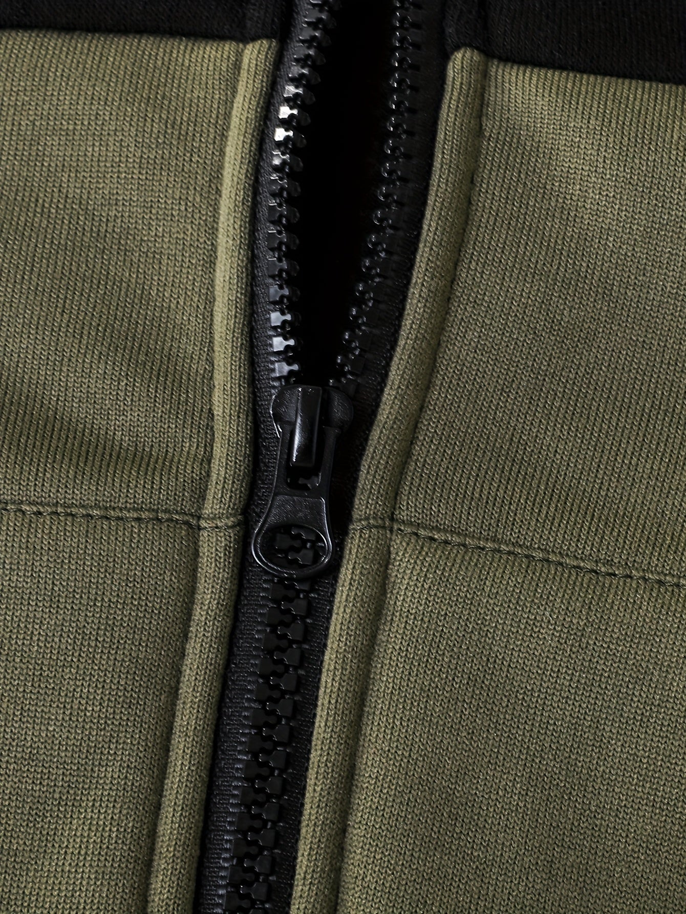 2pcs Boys' Autumn/Winter Fleece-Lined Hooded Zip-Up Jacket and Pants Set with Bird Print, Simple Color Block Design with Pockets, Fashionable Sporty Outfit for Outdoor Activities and Daily Wear, 100% Polyester Knit Stretch Fa
