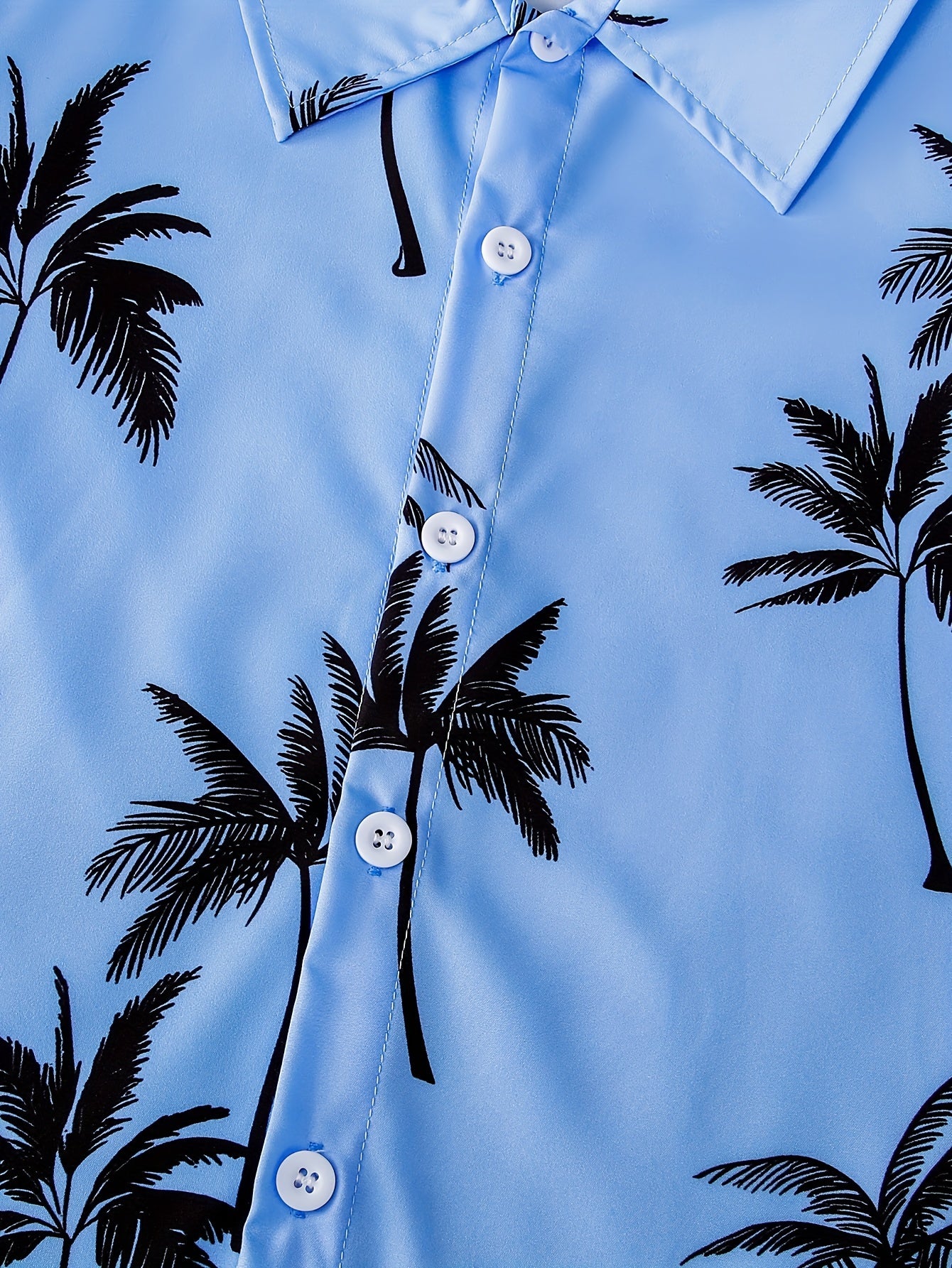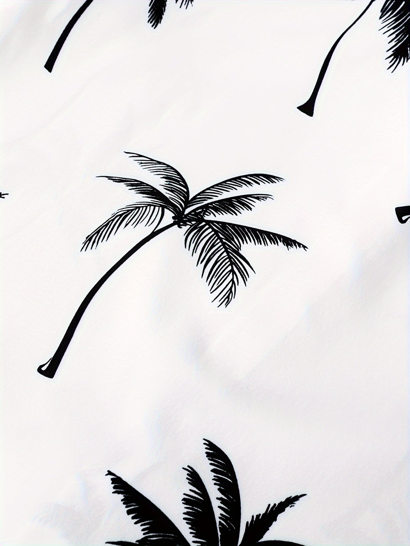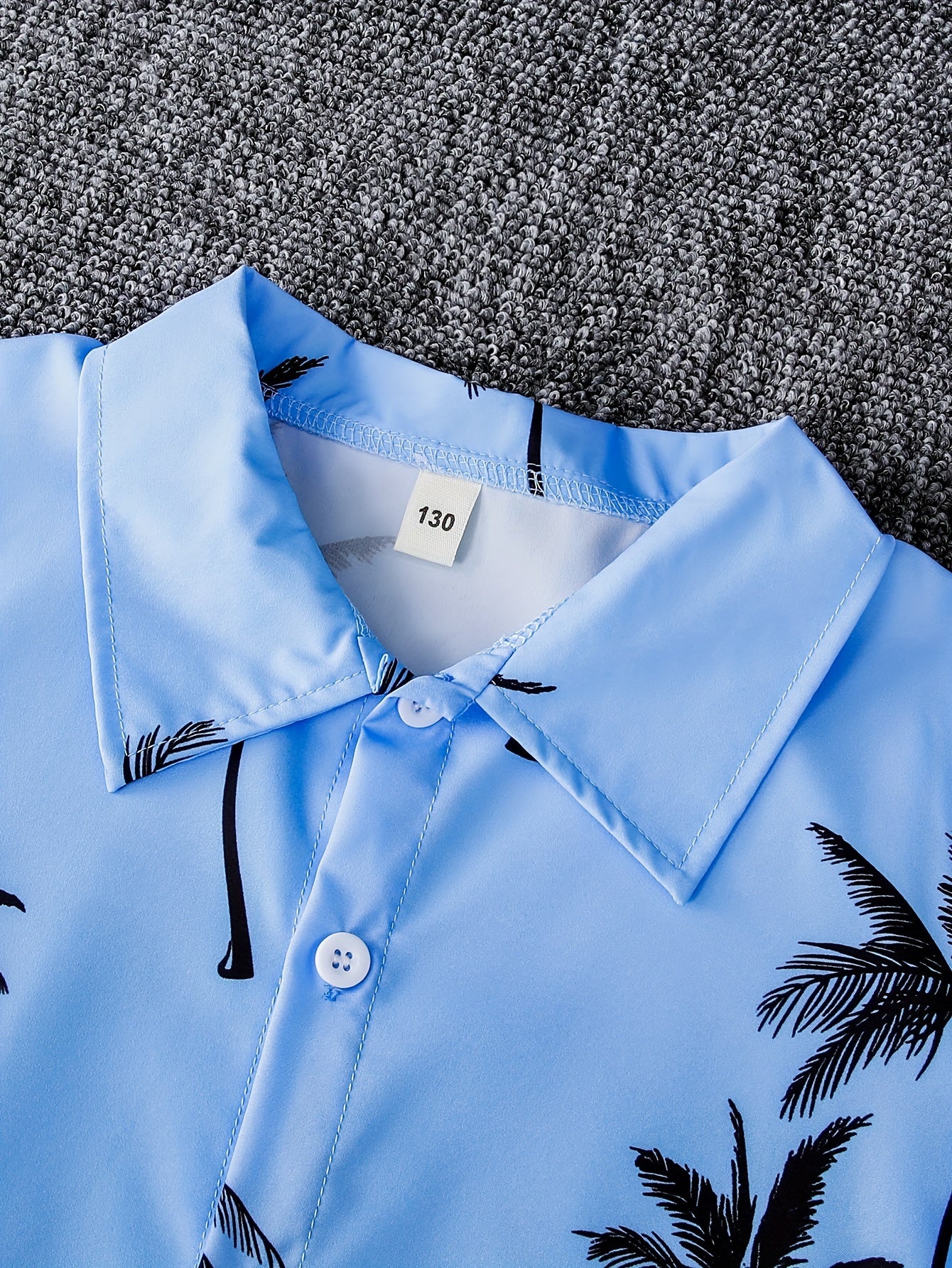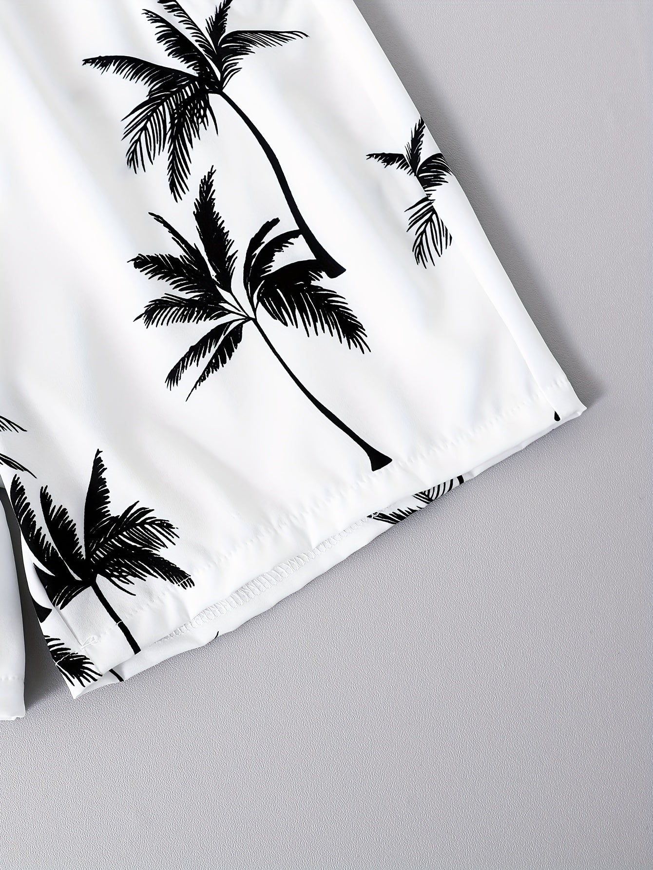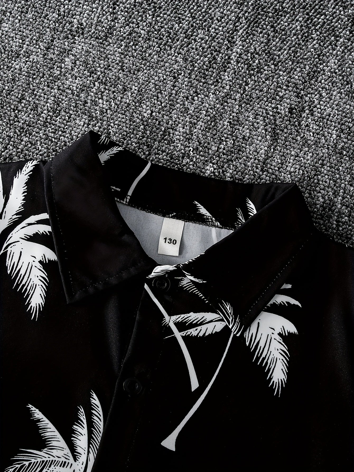 2pcs Boys Casual Coconut Tree Graphic Print Short Sleeve Lapel Shirt & Shorts Set, Comfy Summer Boys Clothing For Daily & Outdoor Wear