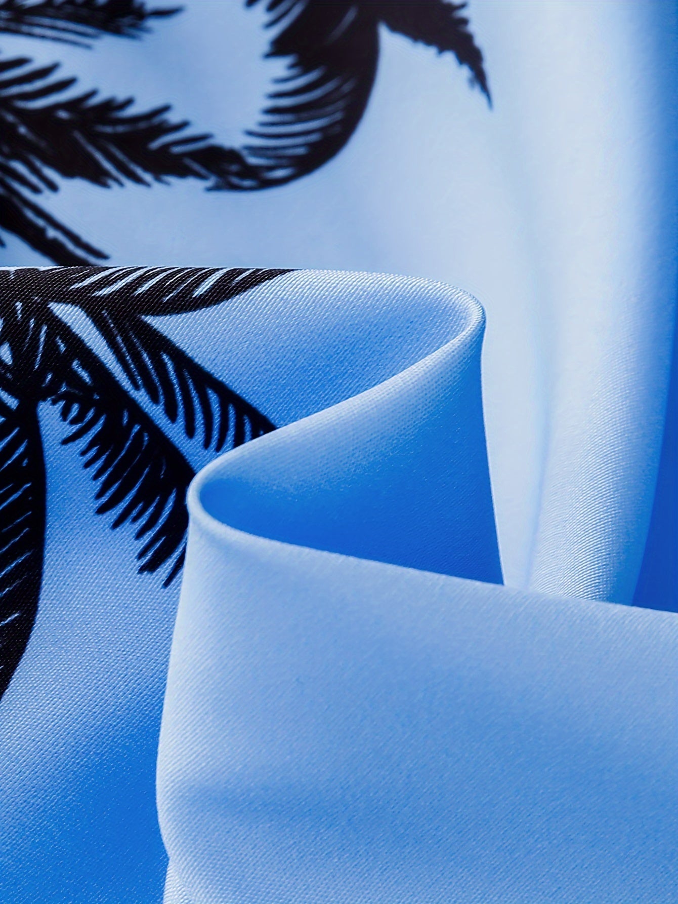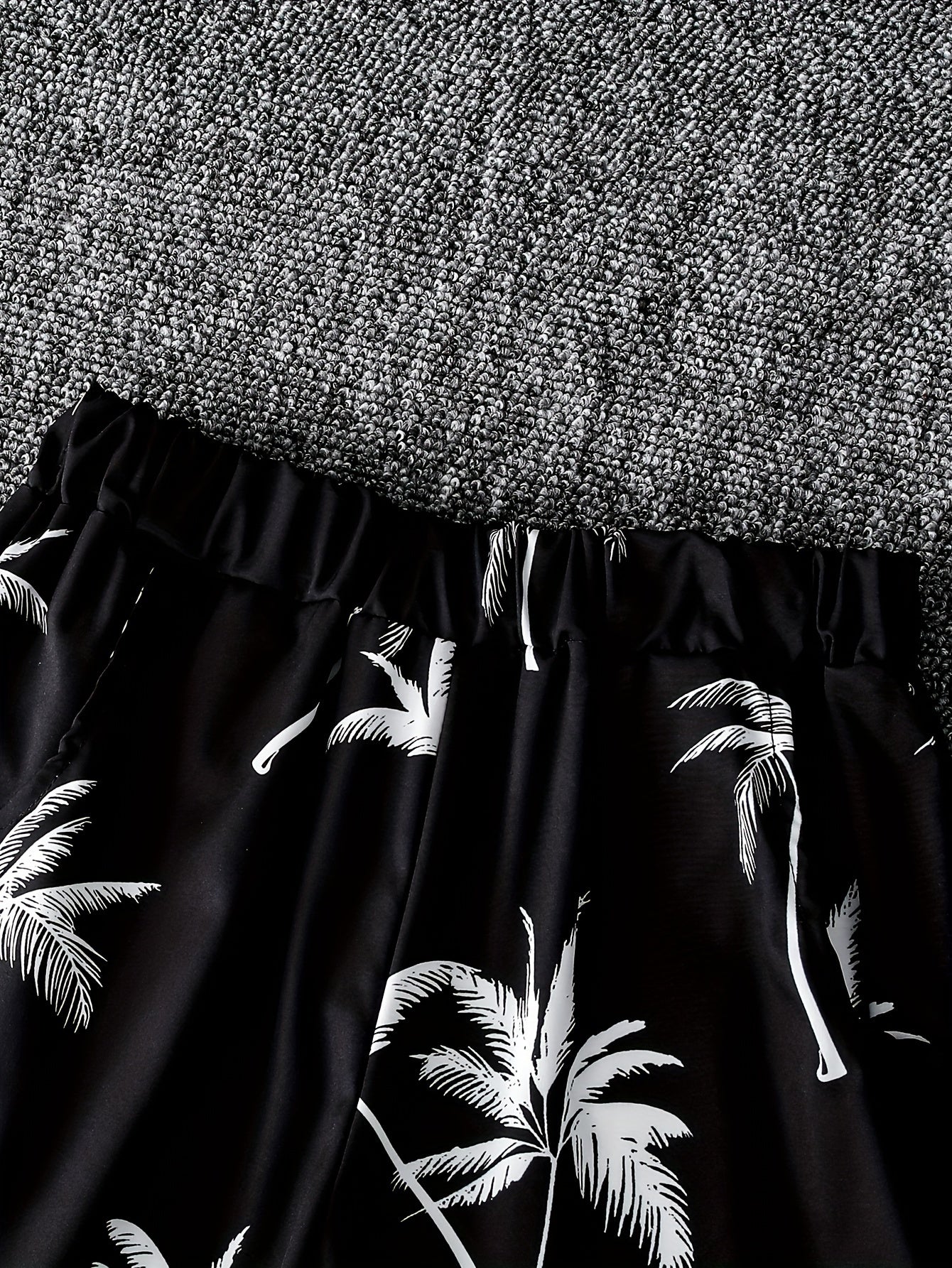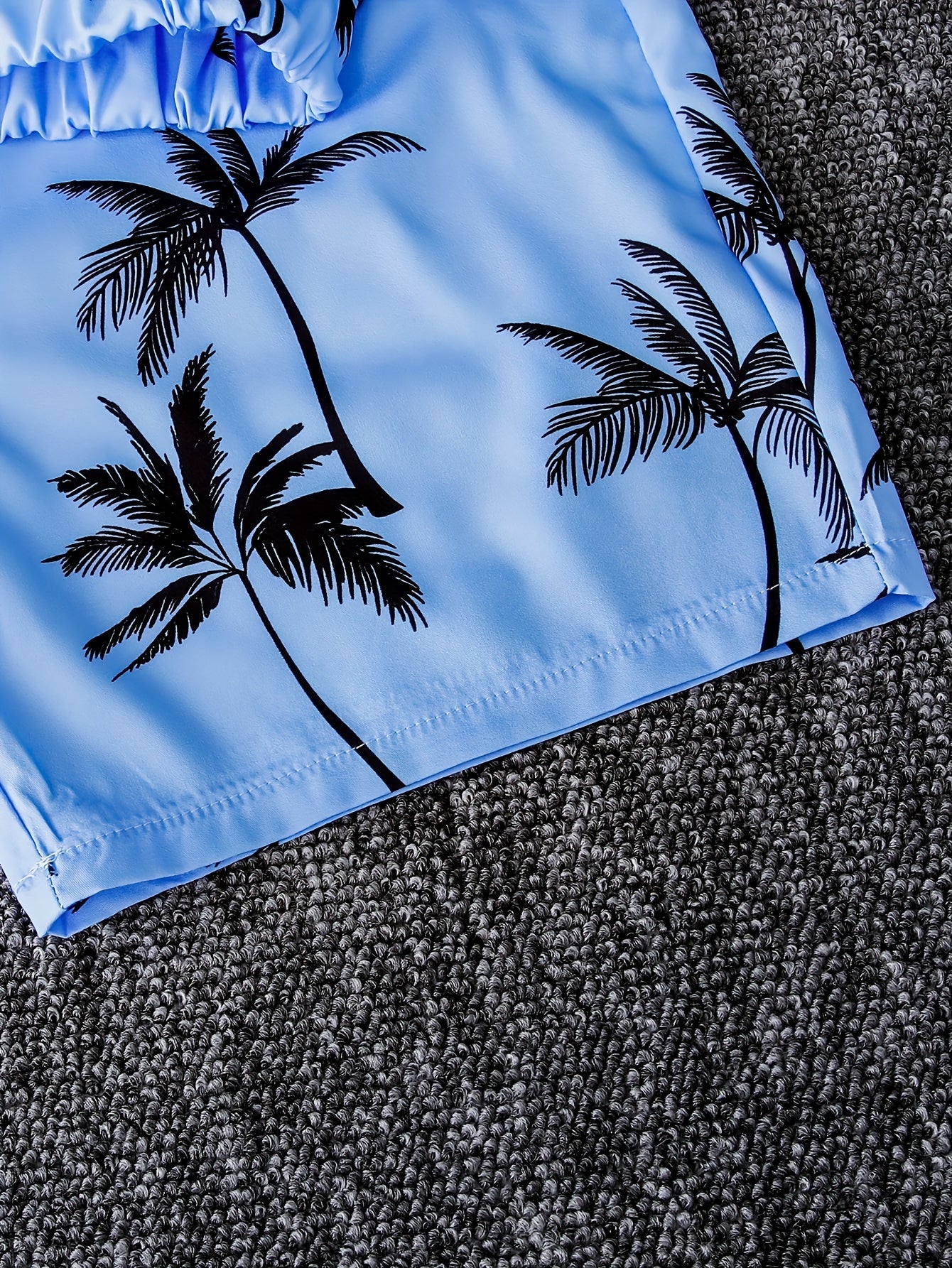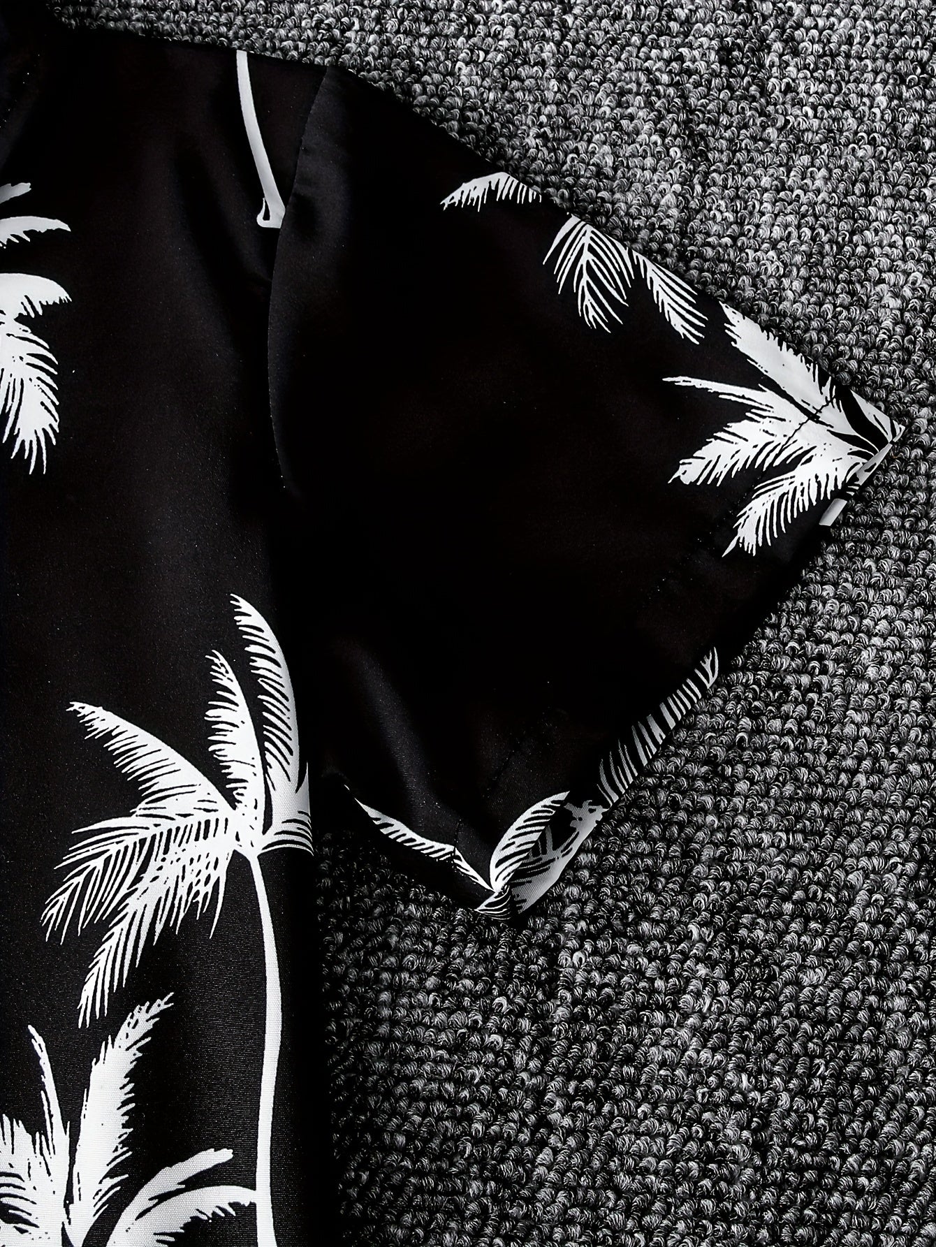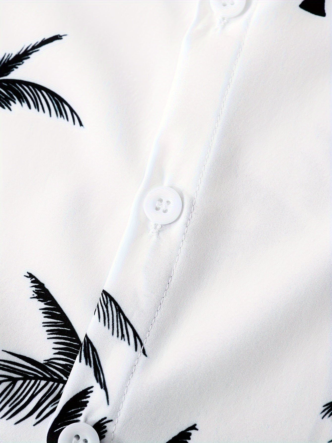 2pcs Boys Casual Coconut Tree Graphic Print Short Sleeve Lapel Shirt & Shorts Set, Comfy Summer Boys Clothing For Daily & Outdoor Wear