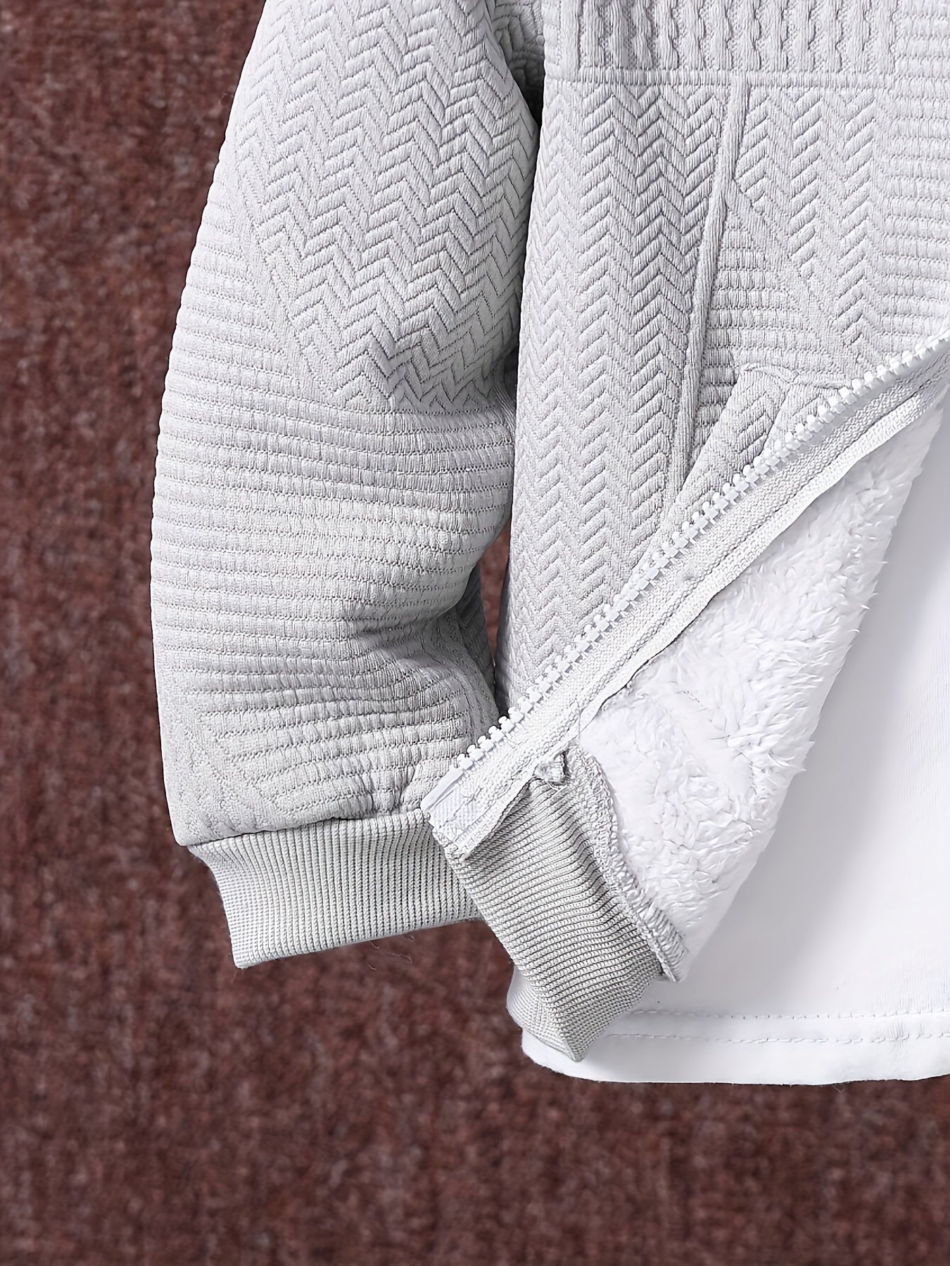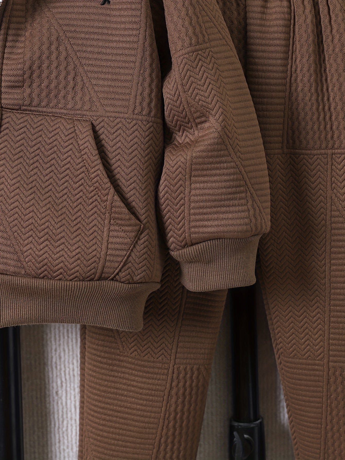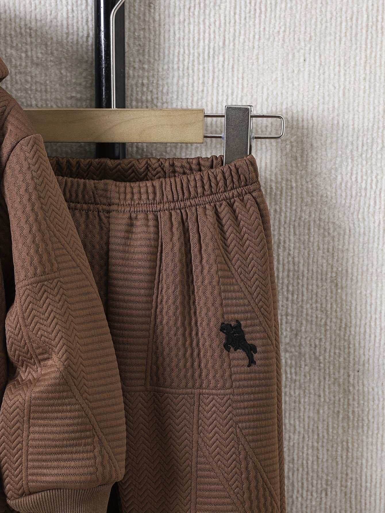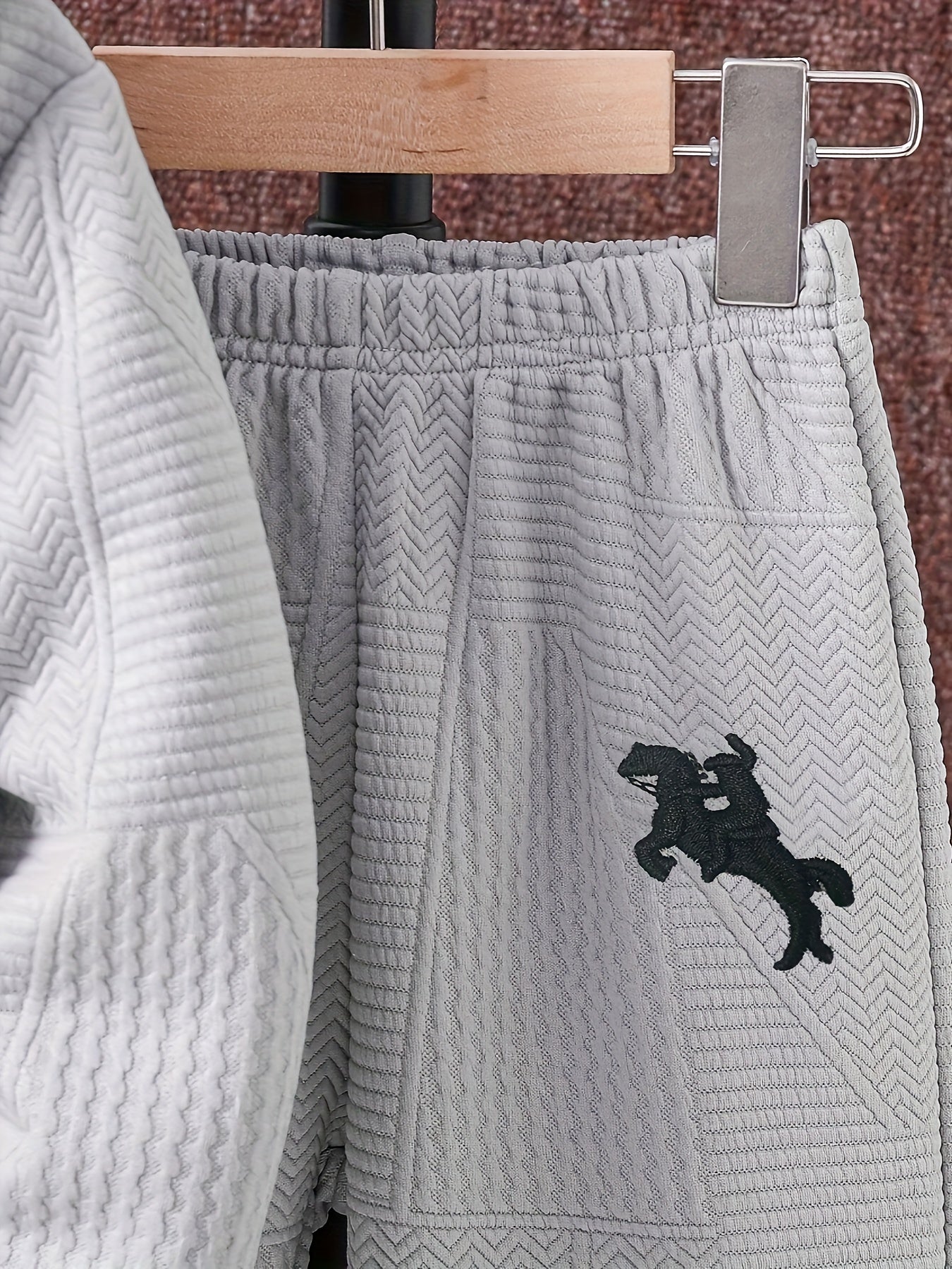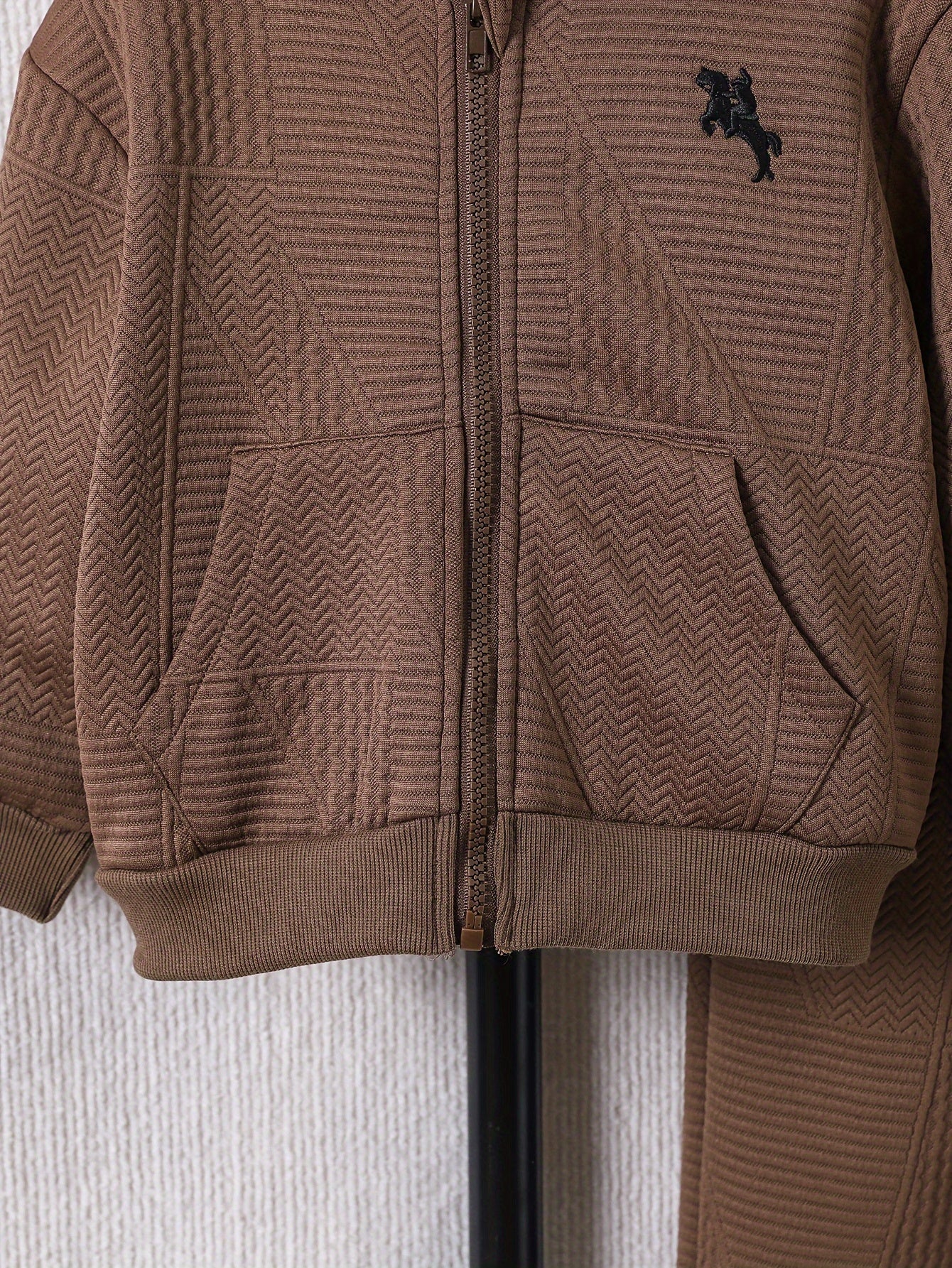 2pcs Boys' Casual Outfit Set, Long Sleeve Hooded Jacket with Embroidery and Zipper, Geometric Pattern Knit Pants, Polyester with Spandex Lining, Regular Fit for Autumn/Winter, for Outdoor