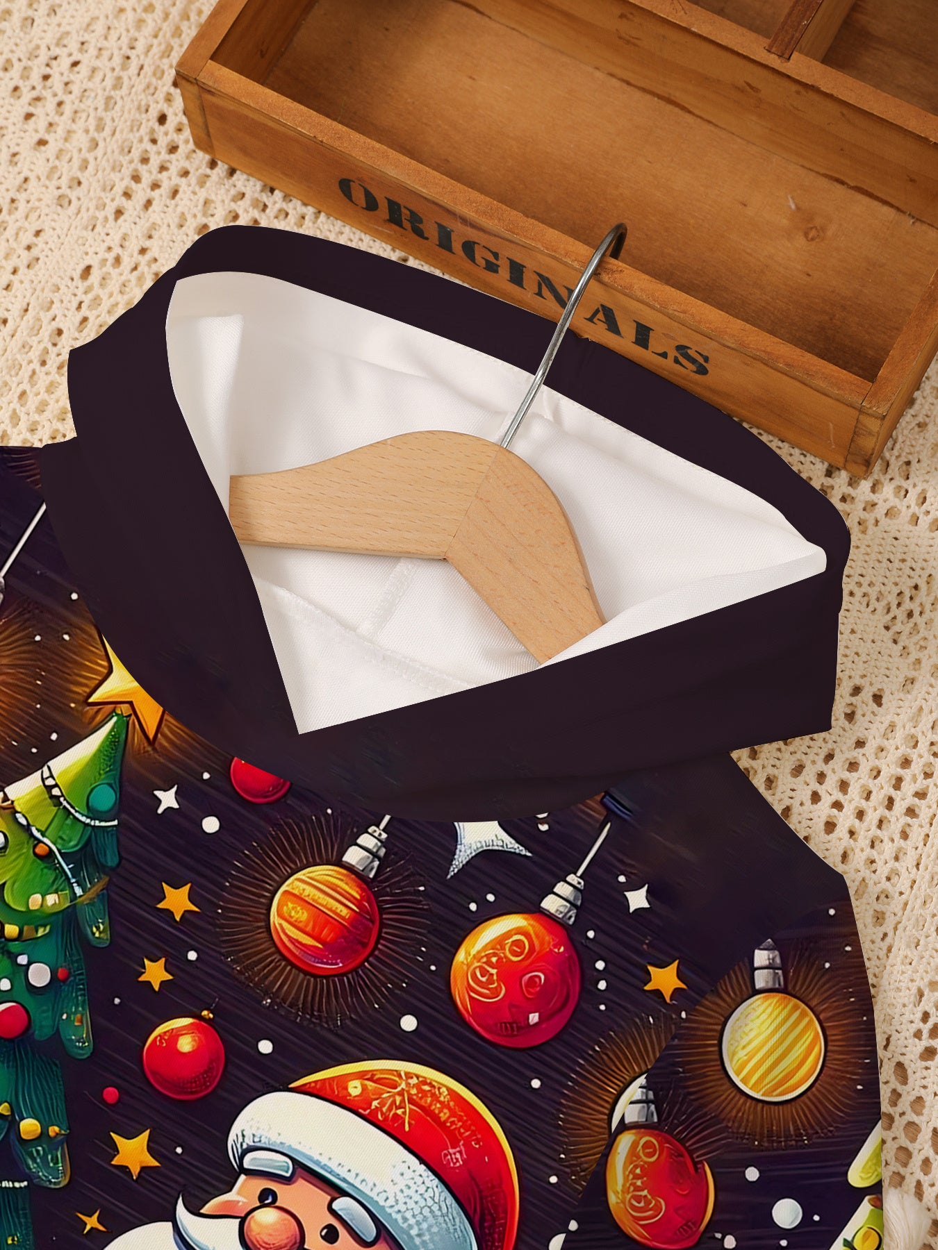 2pcs Boys' Christmas & New Year 2-in-1 Hoodie Set with Santa & Reindeer 3D Print - Warm Winter Outfit, Matching Sweater & Pants for Kids, Holiday Party (Hand Washable) - Festive Boys Clothing, Perfect for Outdoor