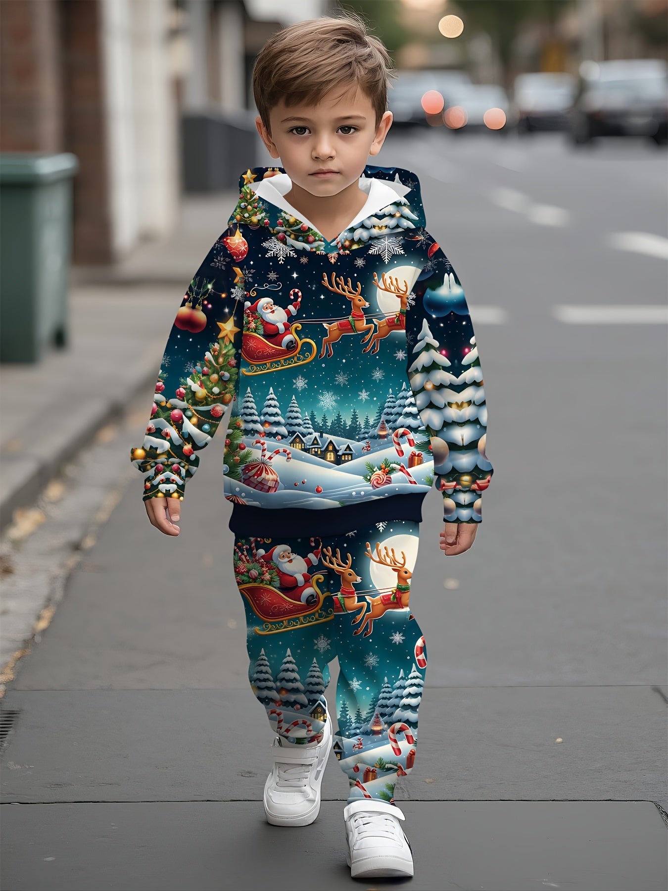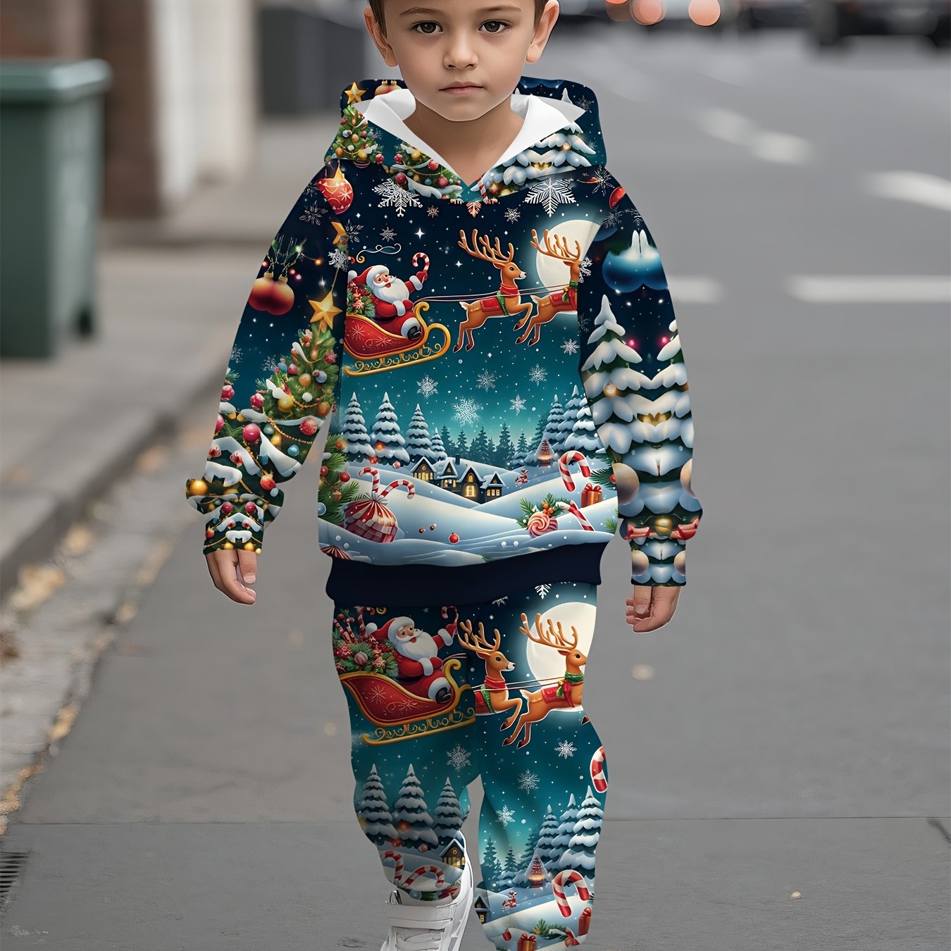 2pcs Boys' Christmas Outfit Set with Snowman & Gingerbread for Man Print Hooded Sweatsuit & Snowflake Pants - Cozy Winter Clothes for to 5 Years, Machine Washable Soft Fabric, Ideal Christmas Gift for Boys (Winter Party & Cas