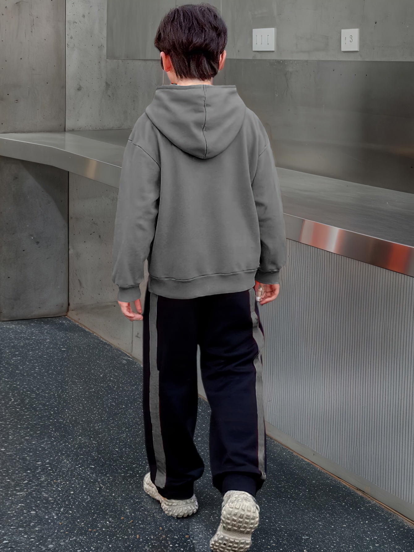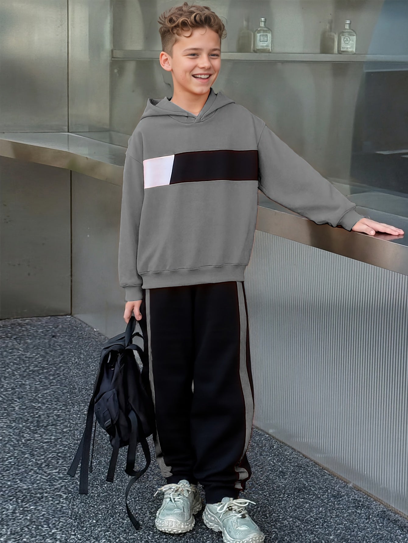 2pcs Boys' Winter Hooded Sweatsuit & Pants - Warm Sweater Outfit with Matching Long Pants, Colorblock Hoodie (Suitable for & Big Kids) - Machine Washable 2pcs set, Perfect for Outdoor