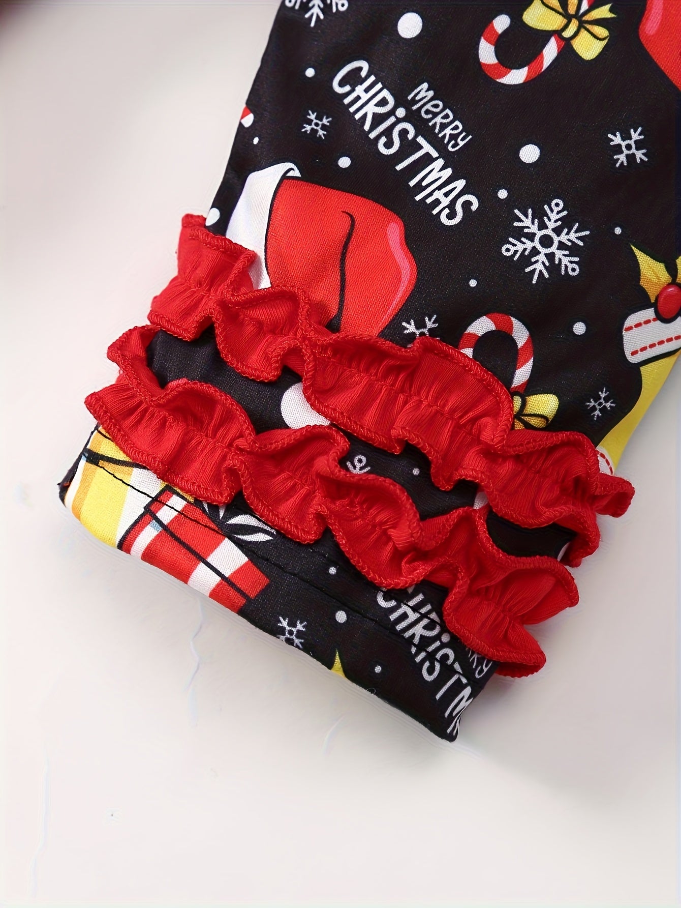 2pcs Elk Embroidered Long Sleeve Dresses + Christmas Hat Gift Box Random Full Print Side Pants Set Cute Party Outfit for Girls, for Outdoor