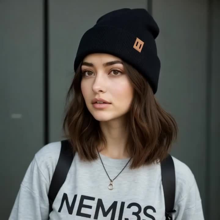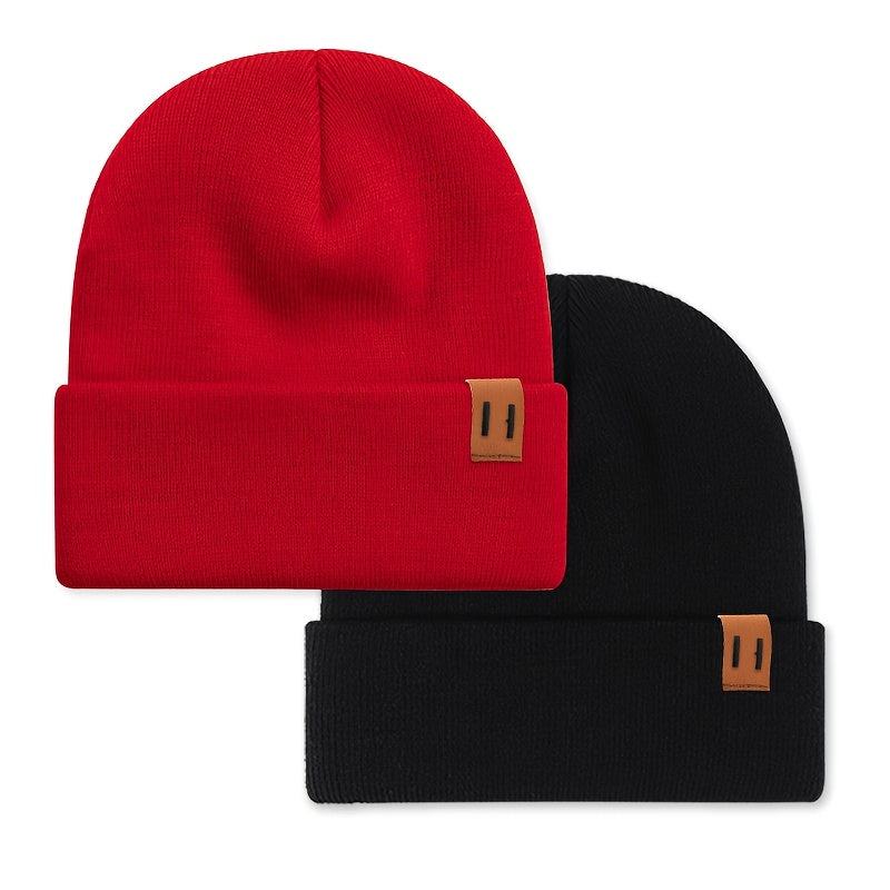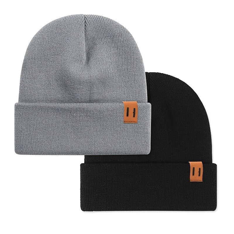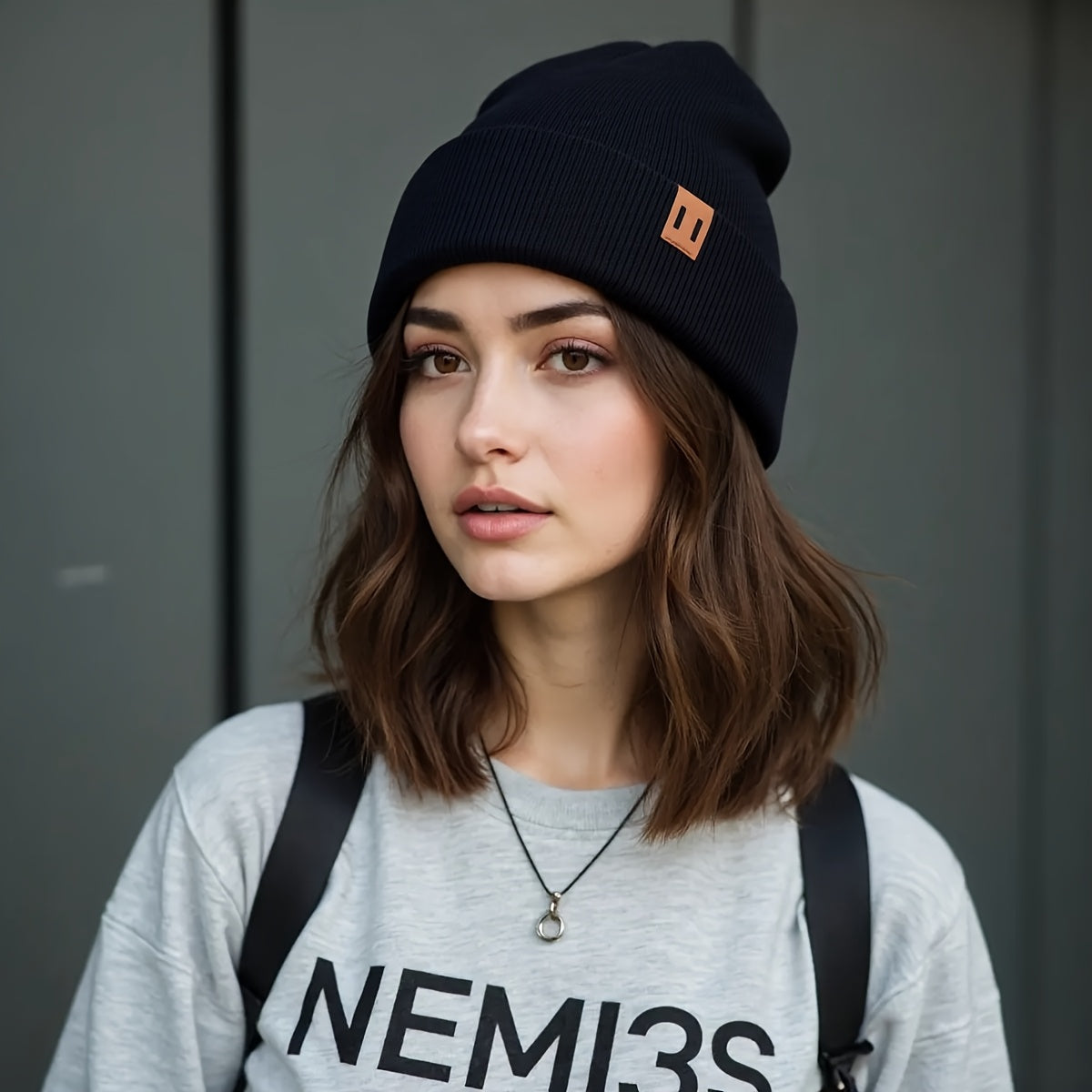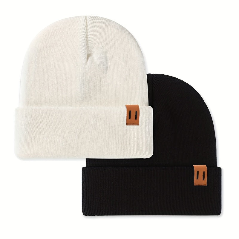 2pcs Fashion Faux Leather Label Knit Hat Set for Autumn and Winter, Outdoor Warm Ear Protection Knitted Cap Wholesale Lightweight Beanie