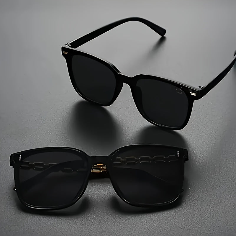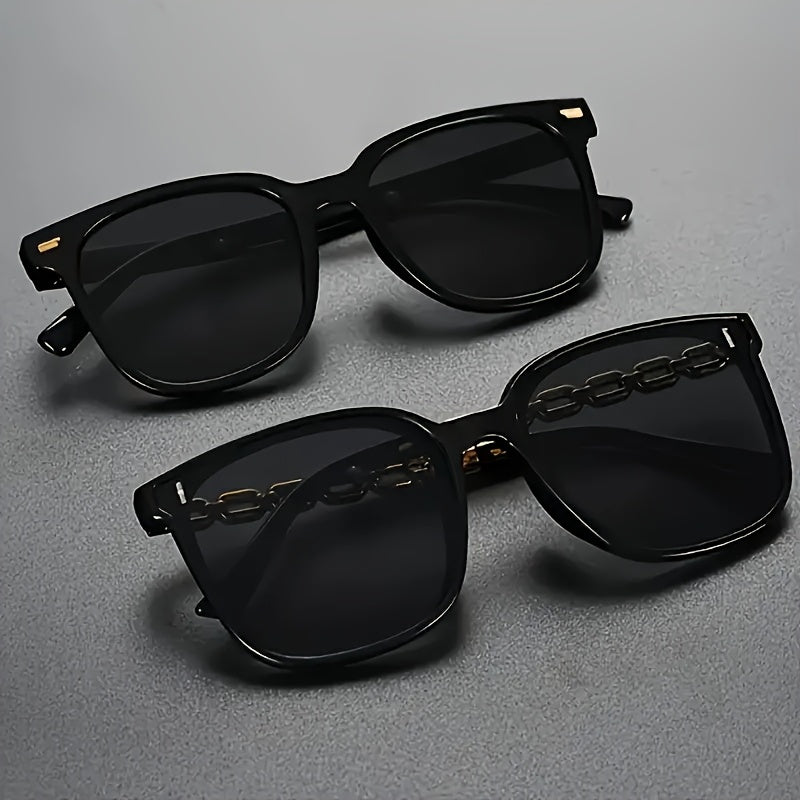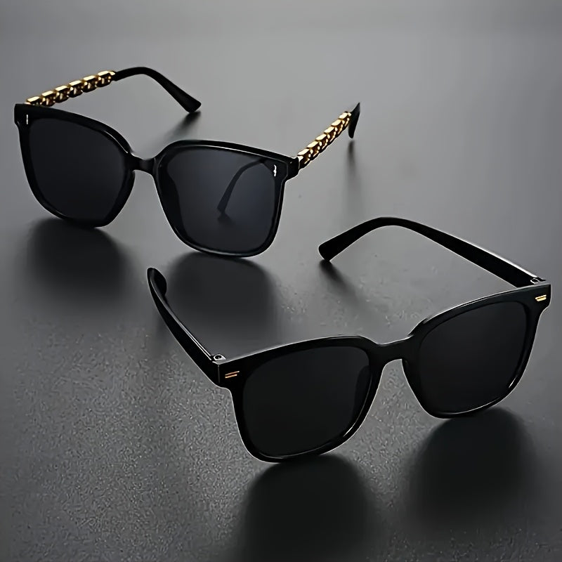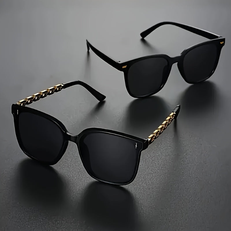 2pcs Men's Casual Fashion Glasses - Black with Golden Chain Accents, Oversized Retro Style, Lightweight & Durable for Everyday Fashion, Versatile for Casual & Formal Outfits, Stylish Glasses, Oversized Eyewear, Metallic Accen