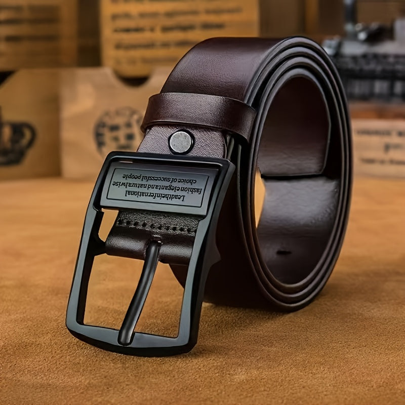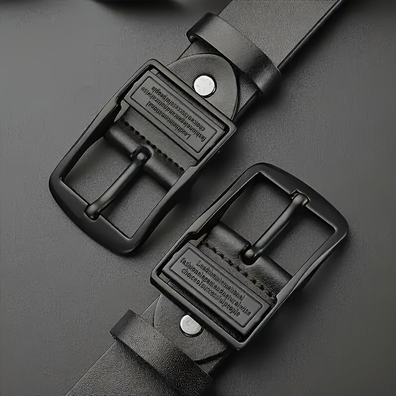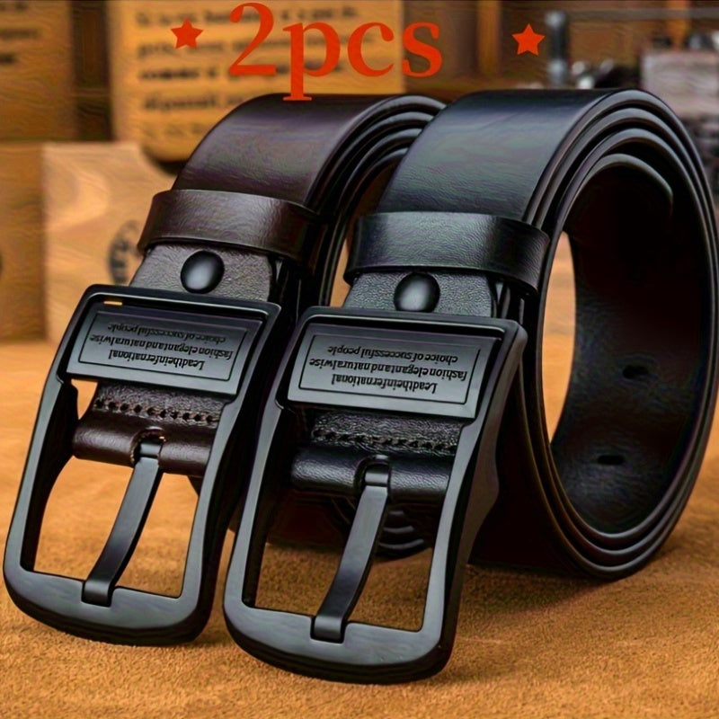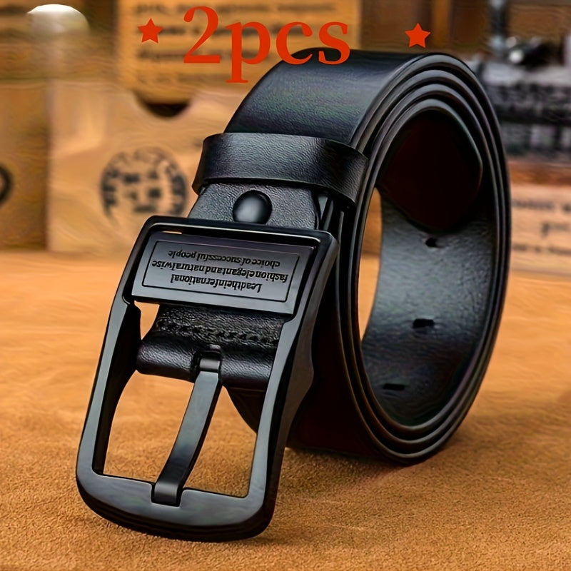 2pcs Men'S Premium Faux Leather Belt with Vintage Square Alloy Buckle - Double-Sided Durable Black Business Casual Belt, Multiple Sizes, Ideal Father'S Day Gift