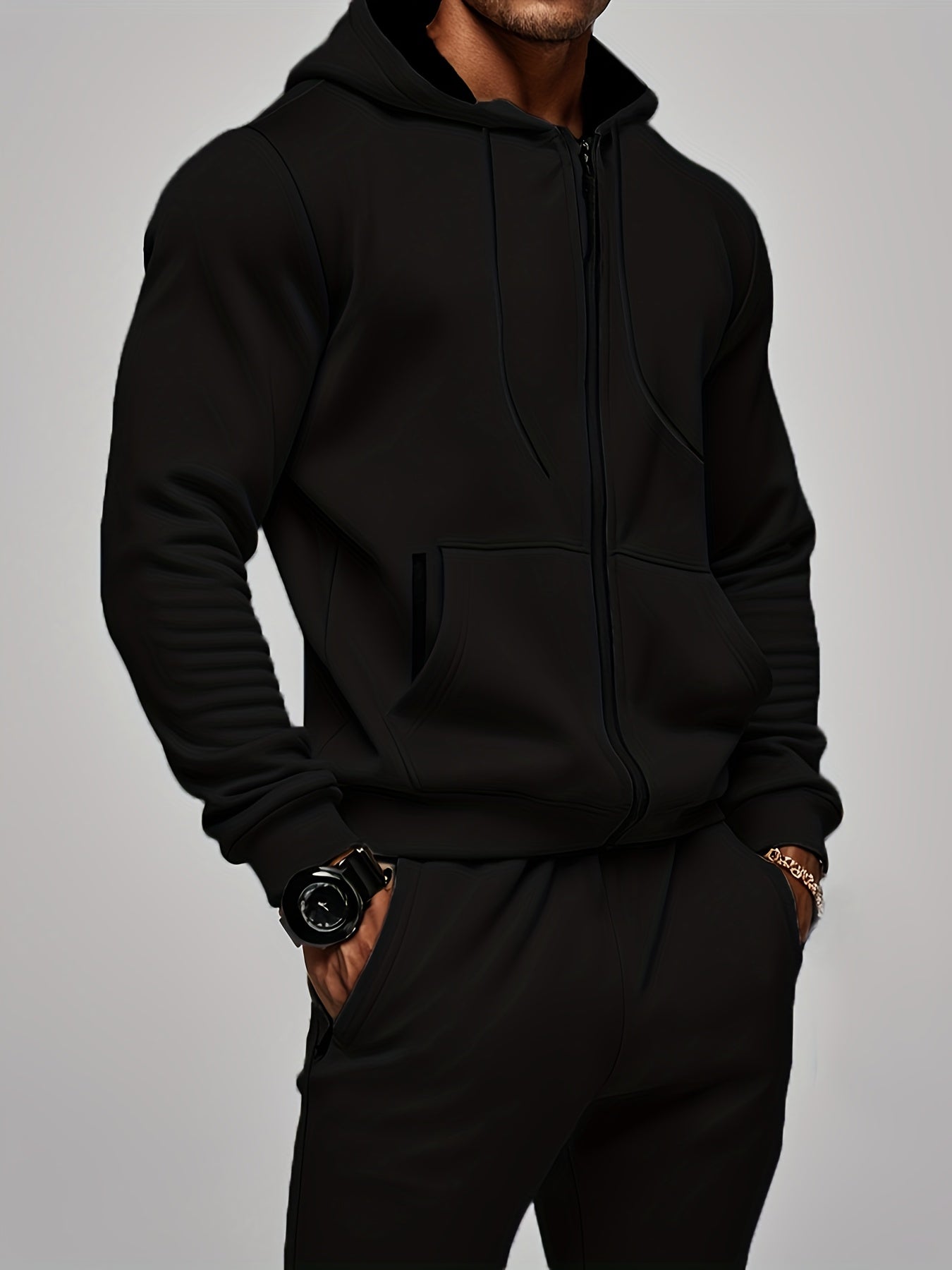 2pcs Men's Solid Color Hooded Long Sleeve Sweatshirt + Pants Set, Casual Co-ord Sports Fitness Set