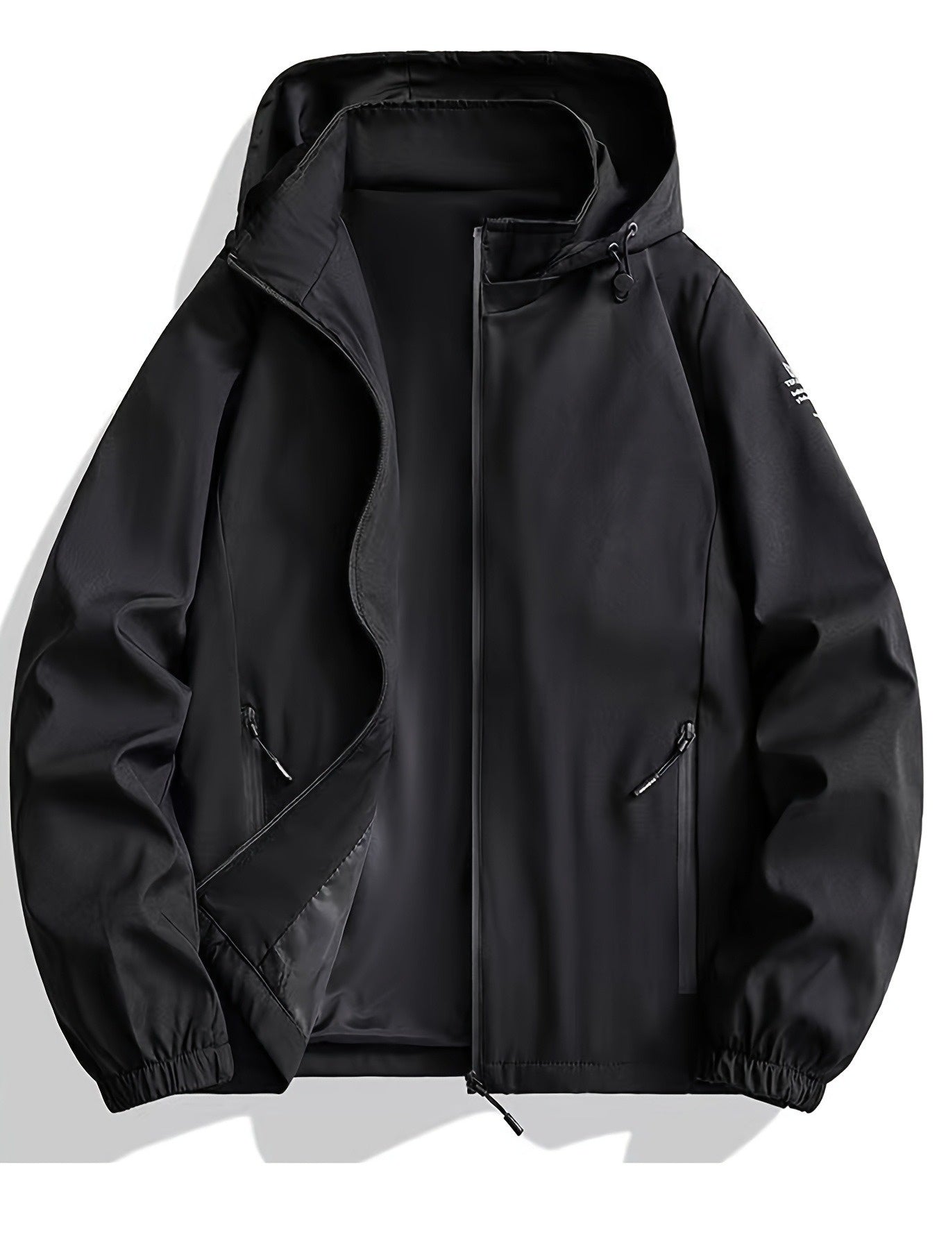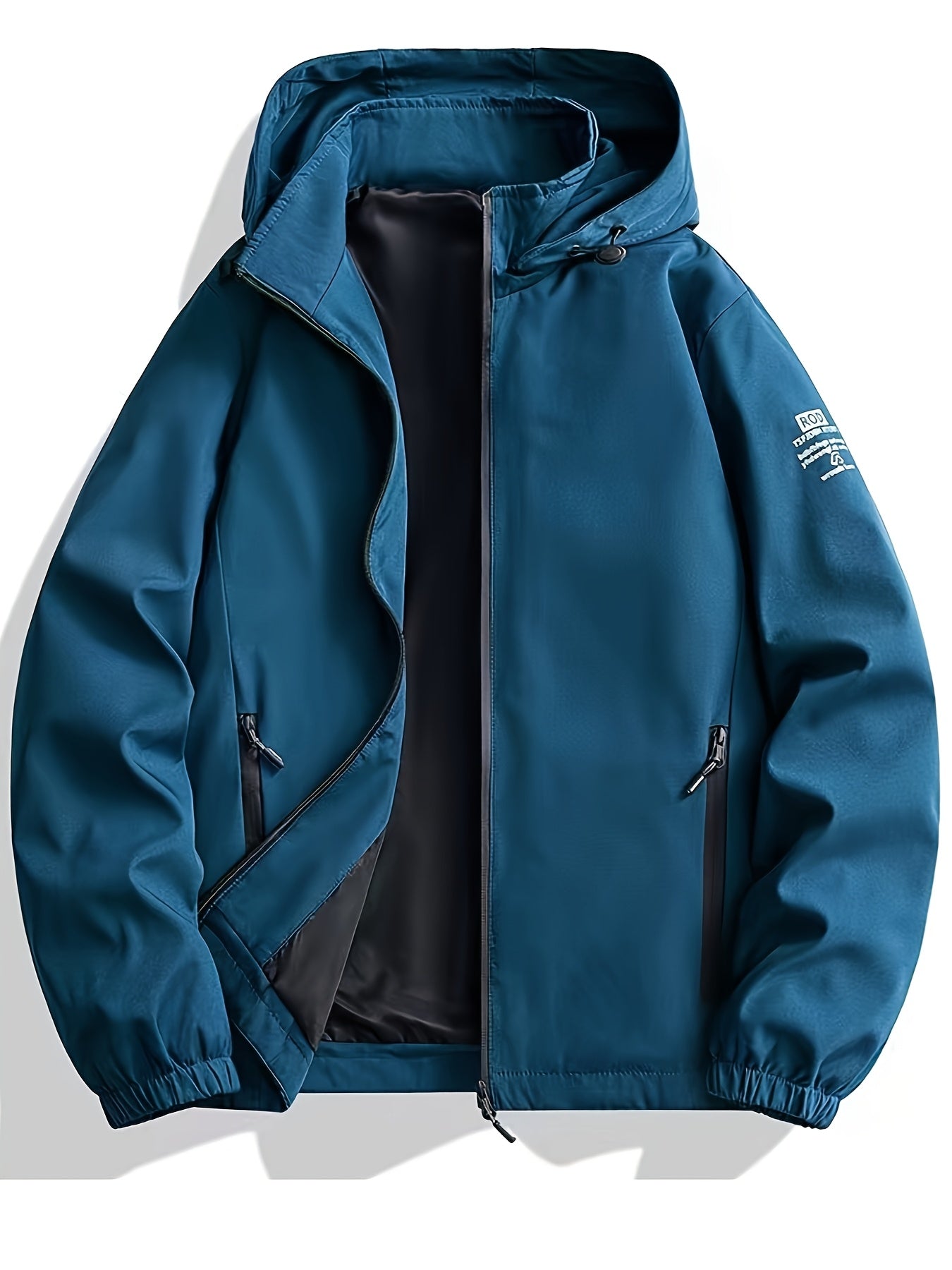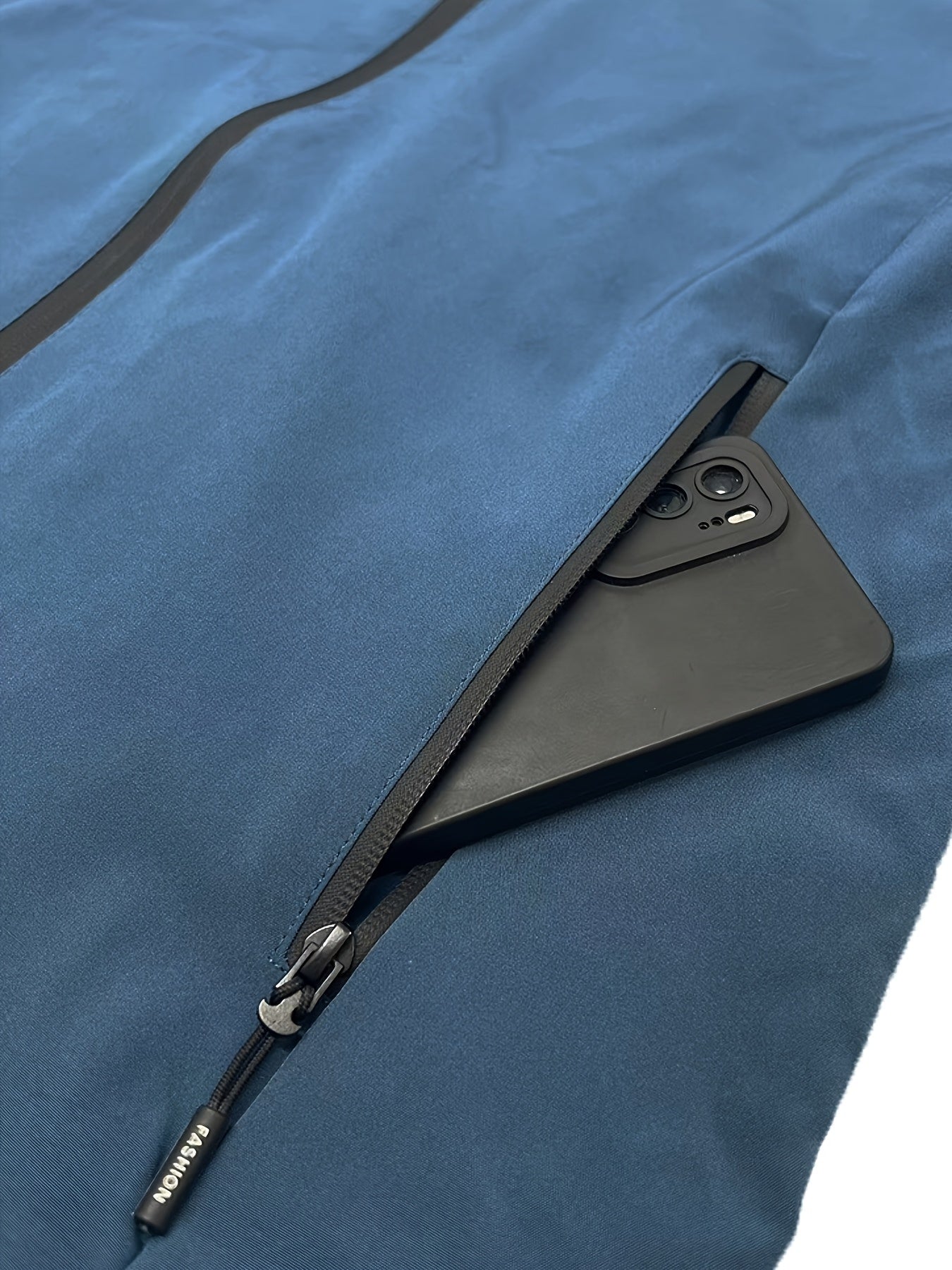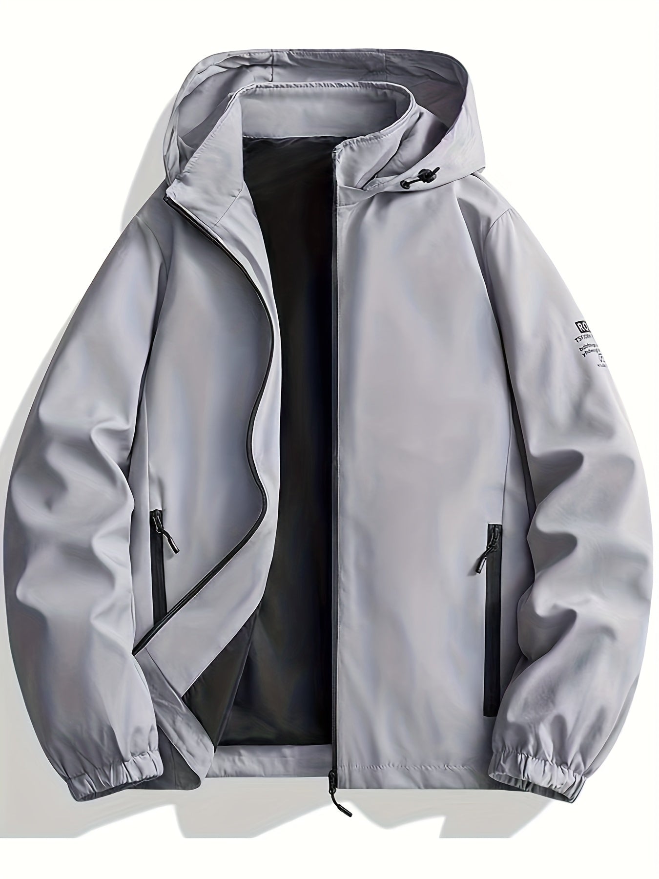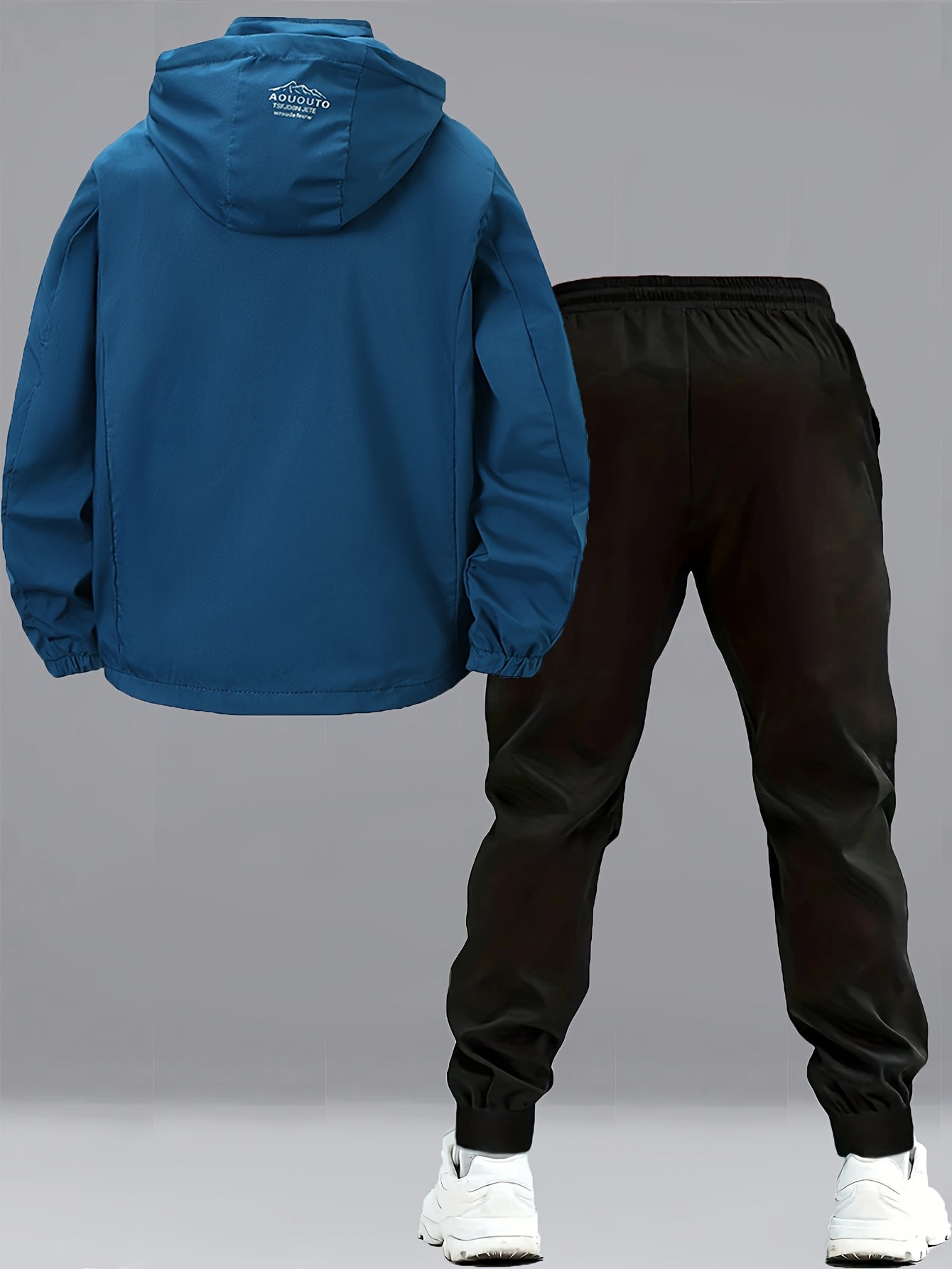 2pcs Men's Sporty Casual Jacket and Stretch Jogger Set, Spring/Autumn Fashion Hooded Jacket with Zipper Pockets, Windproof Outerwear and Black Stretch Joggers, Perfect for Outdoor Activities and Leisure Wear