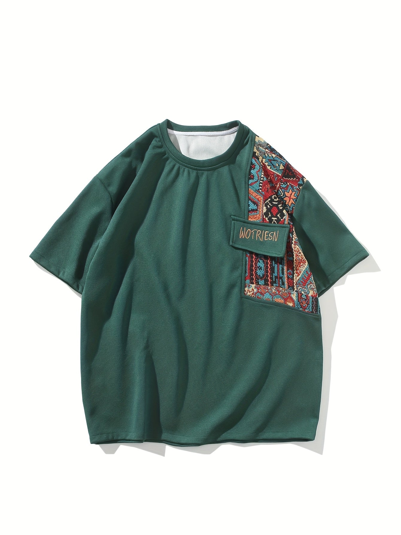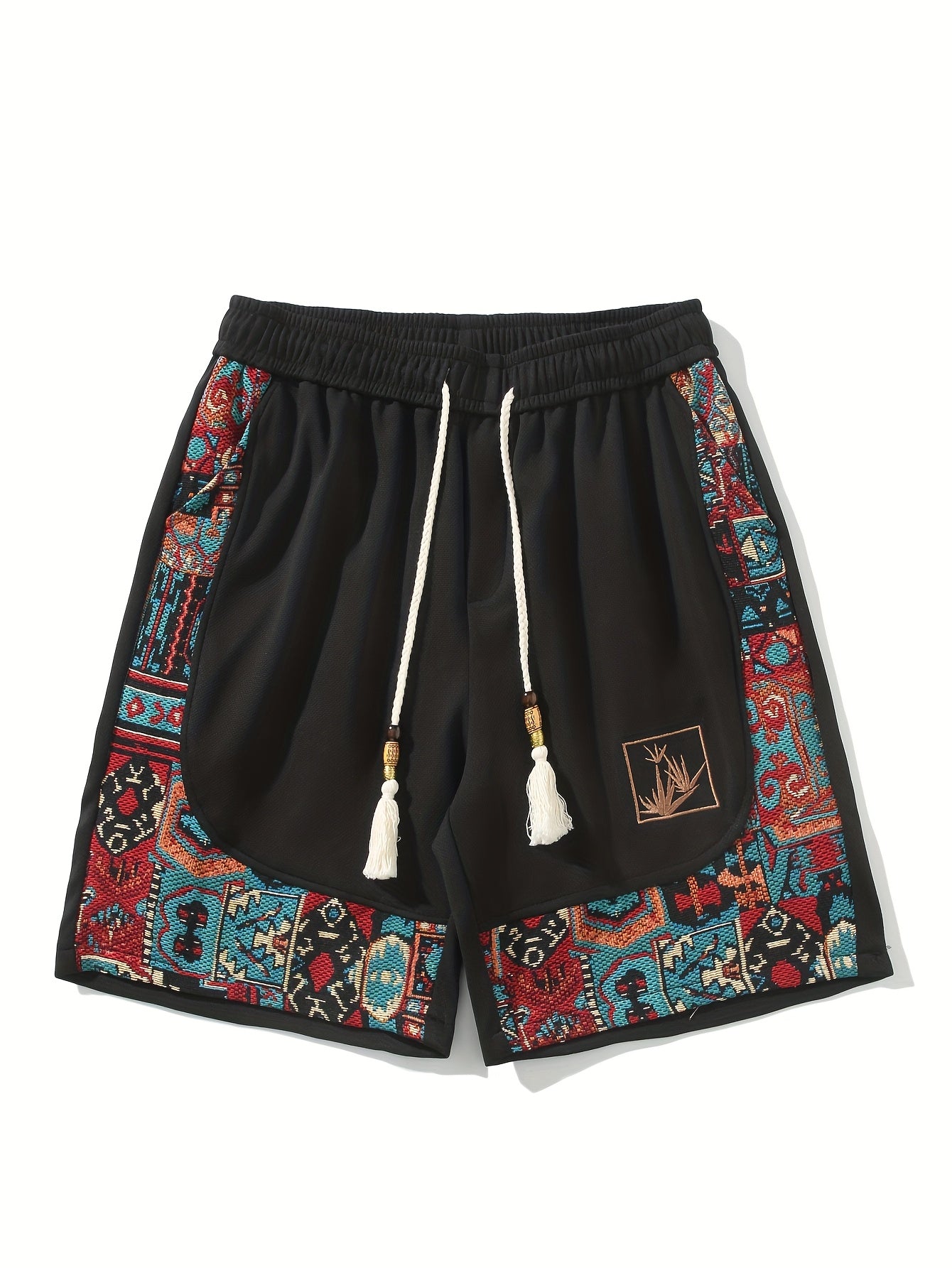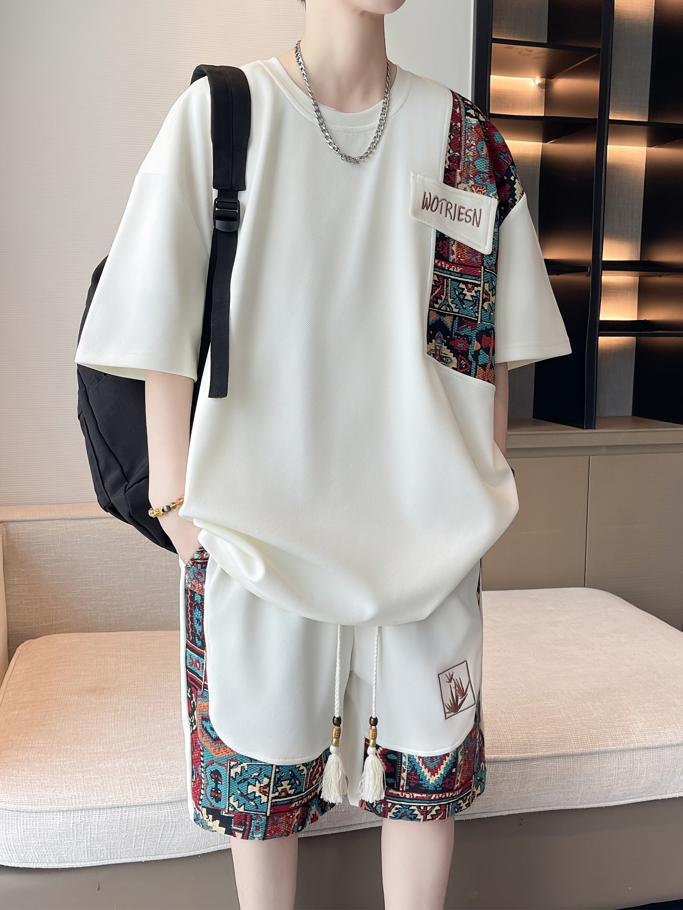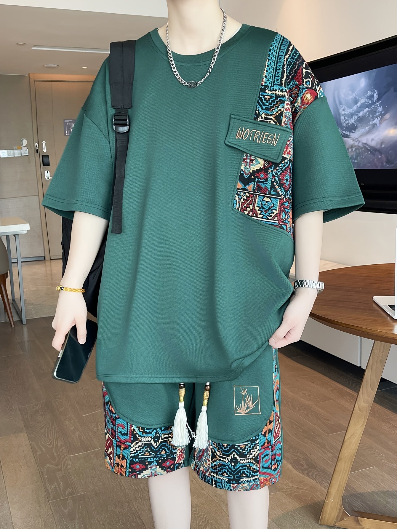 2pcs Men's Summer Casual Outdoor Set, Fashion Ethnic Style Round Neck Short Sleeve T-Shirt and Shorts Suit with Embroidery Design Loose Fit, Short Sleeve + Drawstring Shorts Combo, Suitable for Summer Outdoor Activities