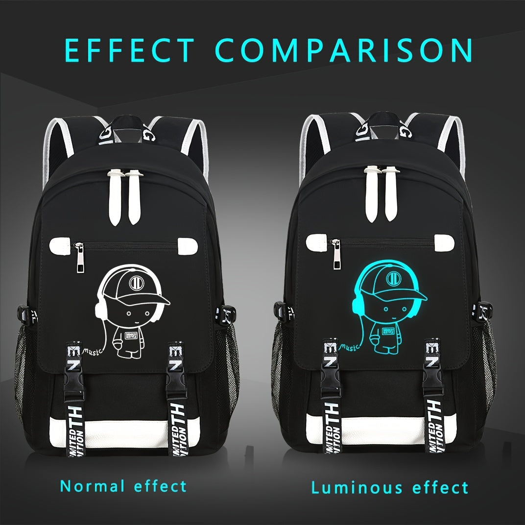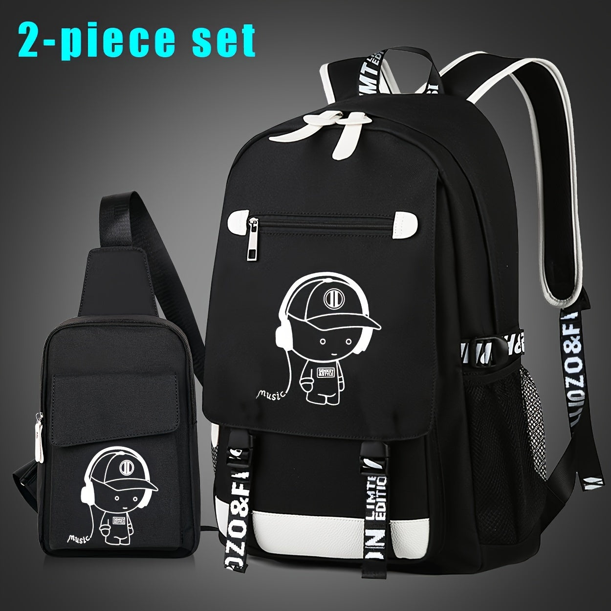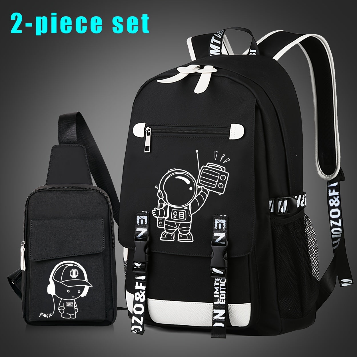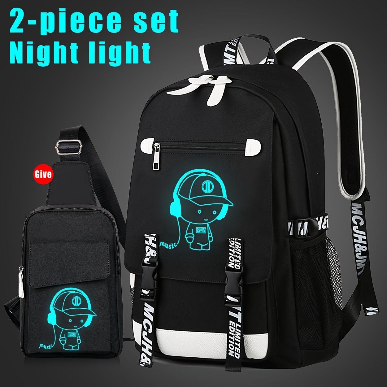 2pcs/set Luminous Men's Backpacks, Casual College Backpacks, Simple Cool Large Capacity Backpacks, Travel Computer Bag