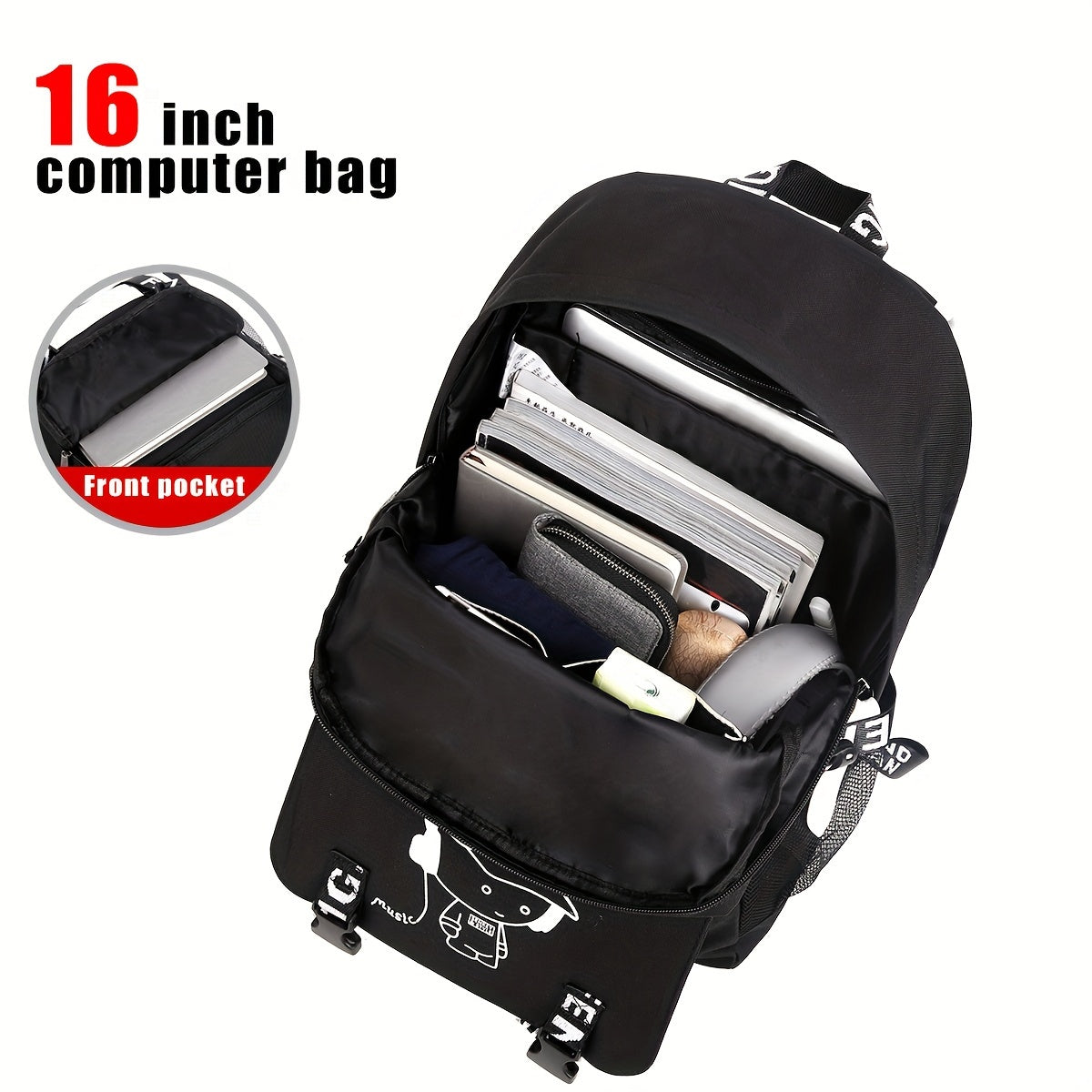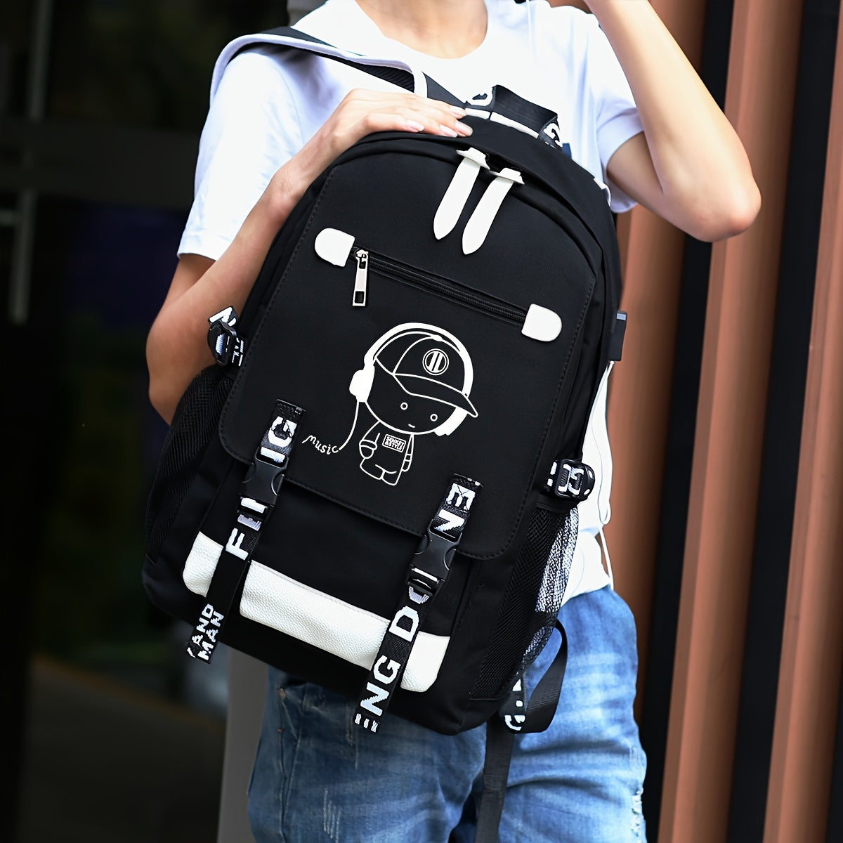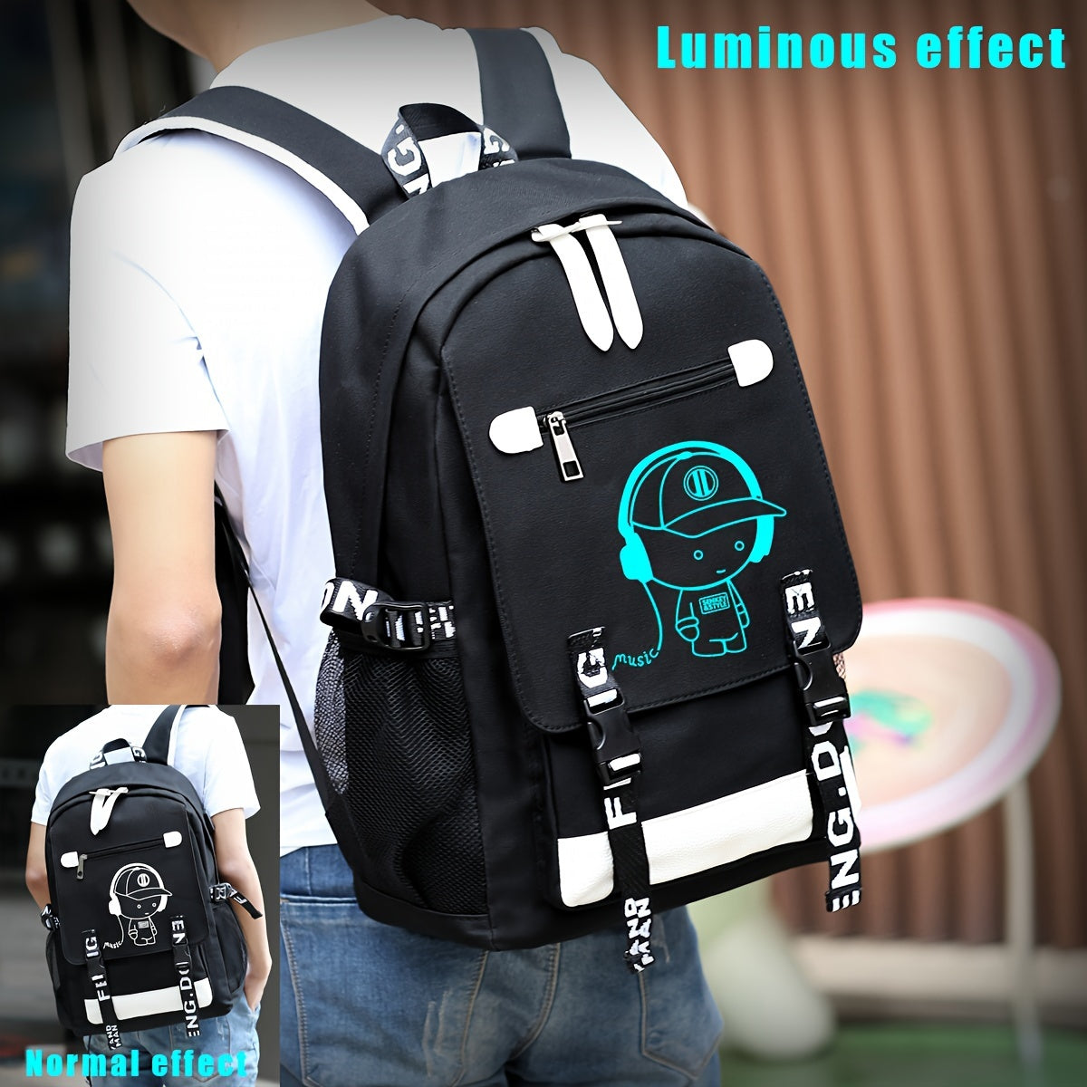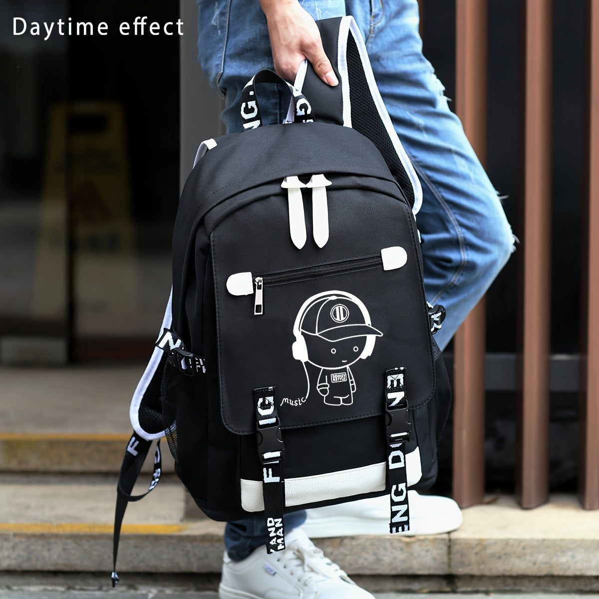 2pcs/set Luminous Men's Backpacks, Casual College Backpacks, Simple Cool Large Capacity Backpacks, Travel Computer Bag