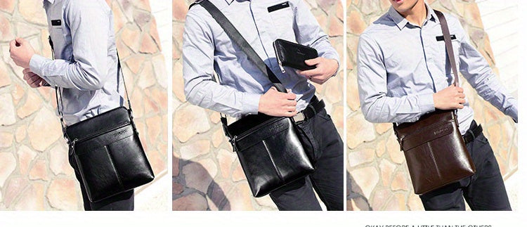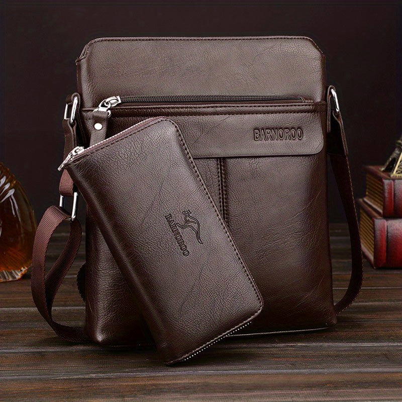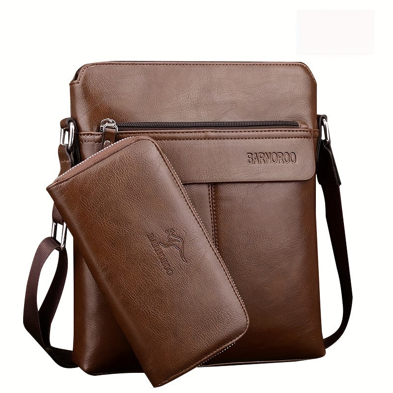 2pcs/set Men's Simple Business Shoulder Bag Crossbody Bag Portable Zipper Clutch Bag Gift For Men Father's Day Gift
